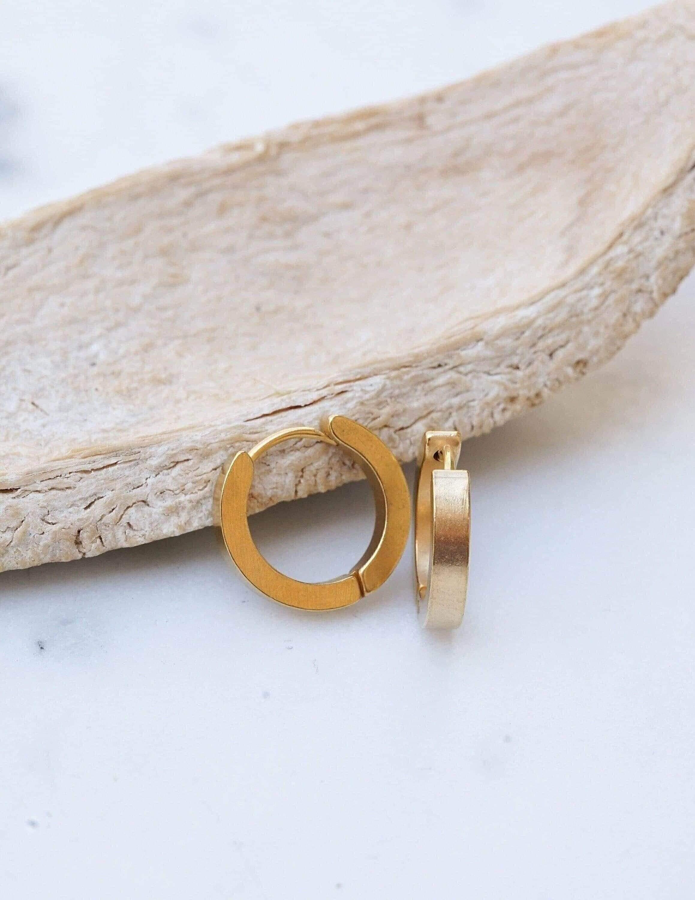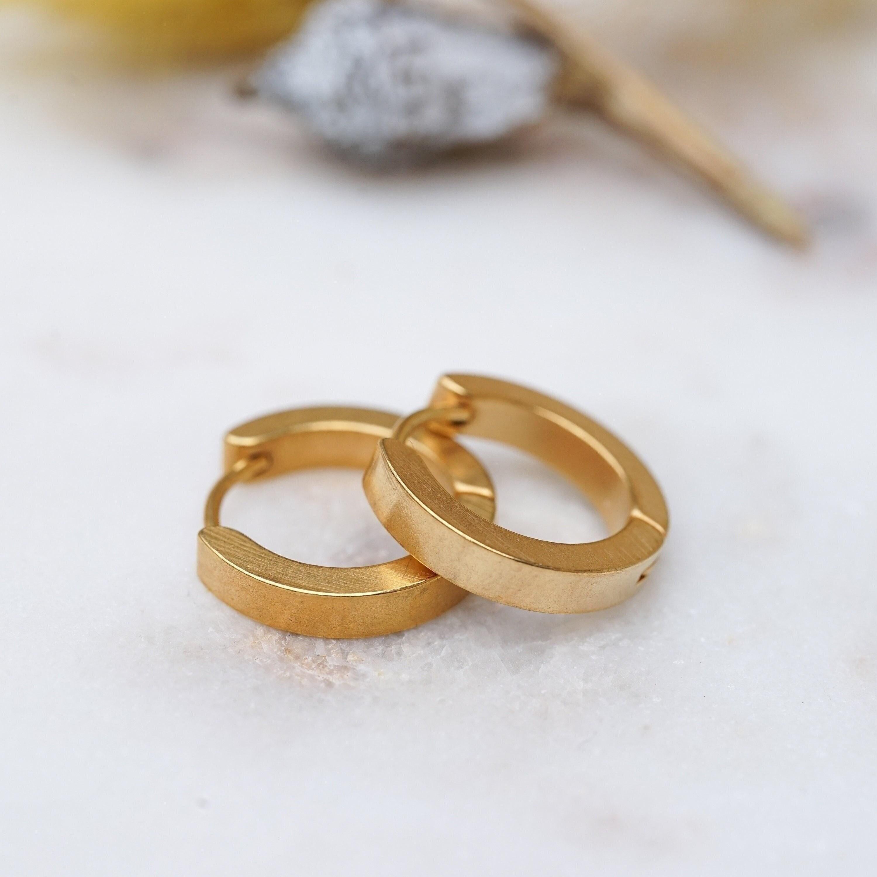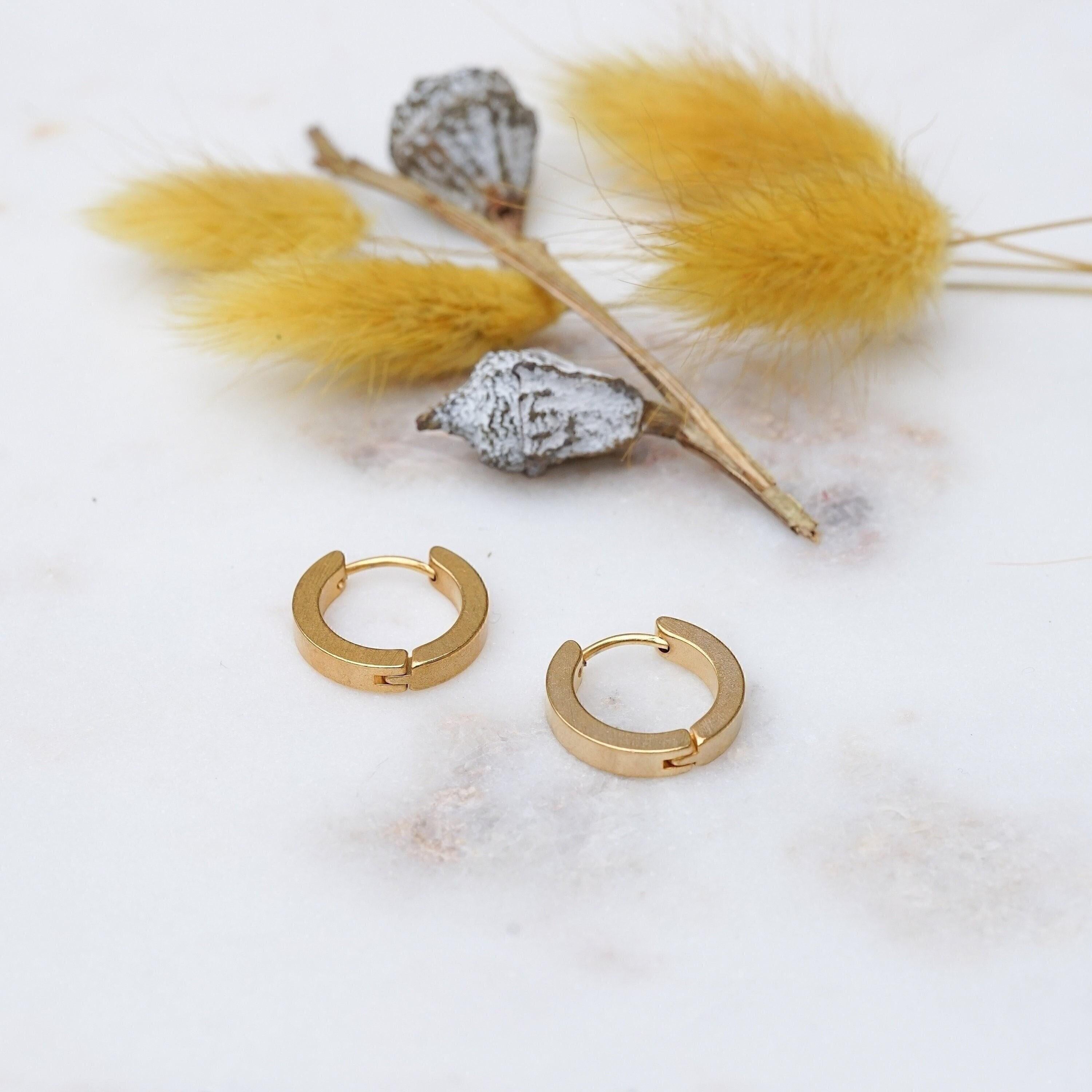 Χρυσοί κρίκοι σε διαχρονικό σχέδιο. Κατασκευασμένοι από ανοξείδωτο ατσάλι με επιχρύσωση, είναι κατάλληλοι για καθημερινή χρήση.