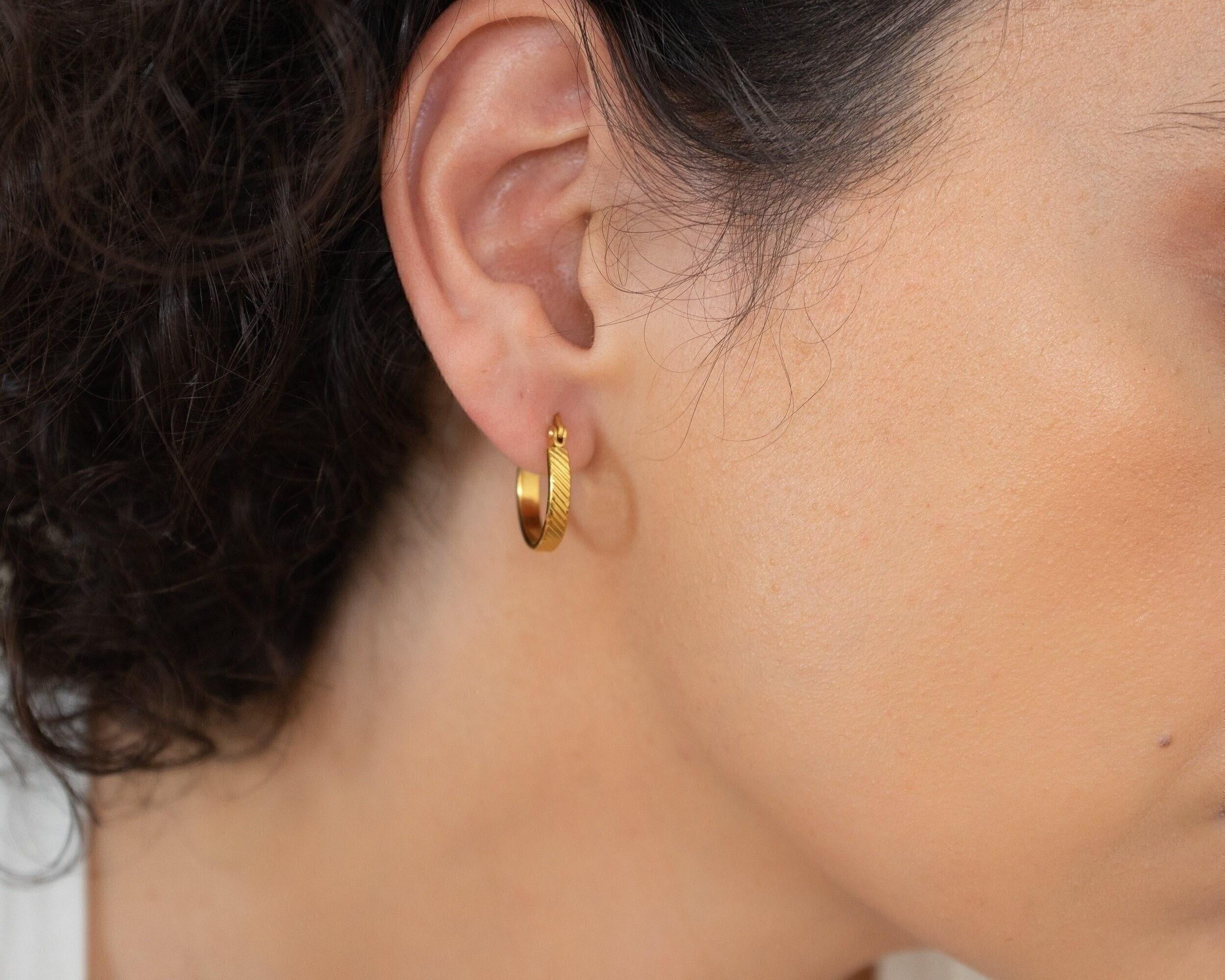 Why limit yourself to stacking just necklaces and rings when you can stack earrings too? These gold hoops are a classic, high-quality addition to any jewelry collection. Wear them solo for a timeless look or stack them for a more modern vibe. From day to night, these earrings will elevate any outfit, adding a subtle touch of elegance. They're lightweight and effortless to wear, making them perfect for any occasion. Understated, yet stylish and adaptable.