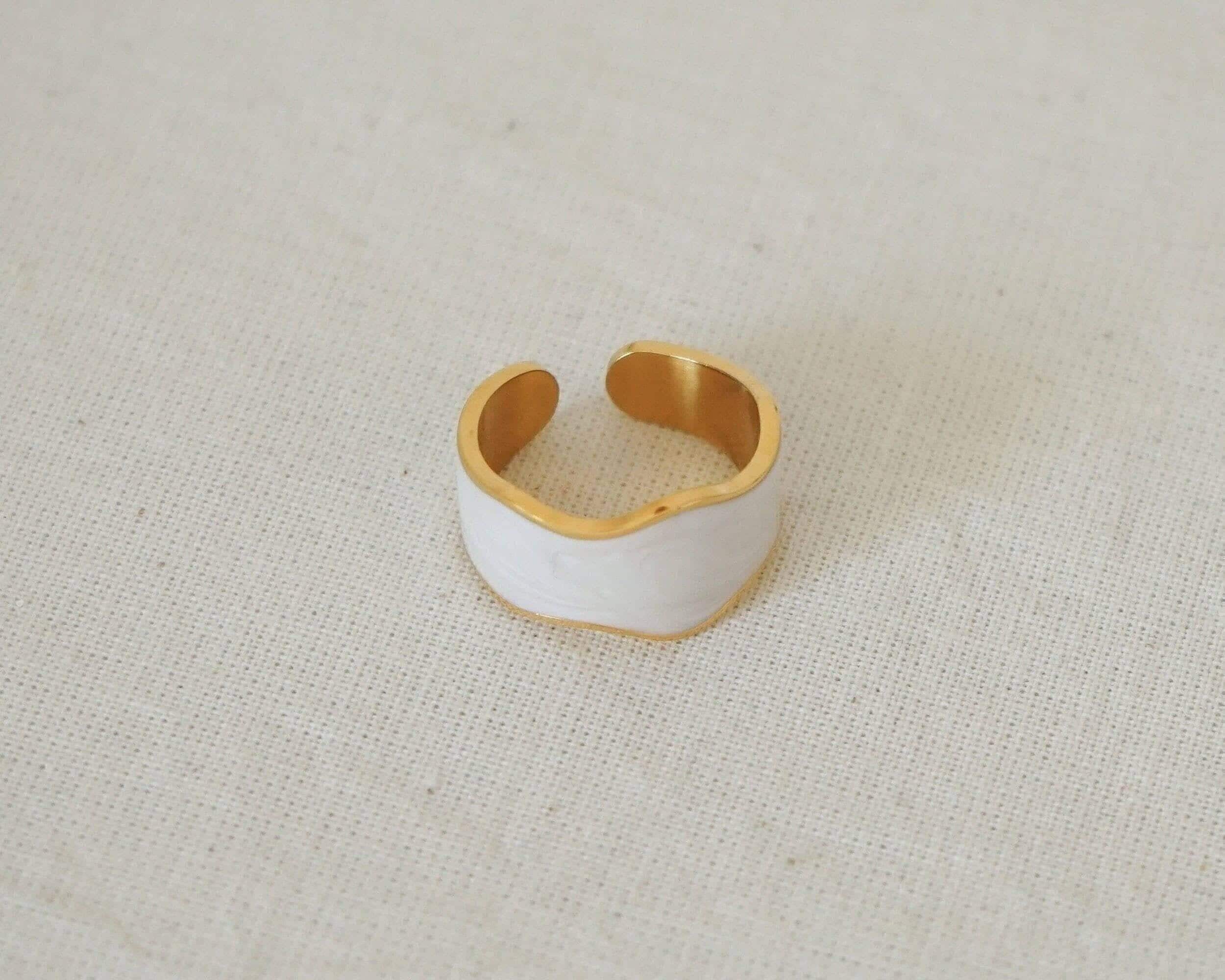 Χρυσό και Λευκό Δαχτυλίδι με Κοχύλι