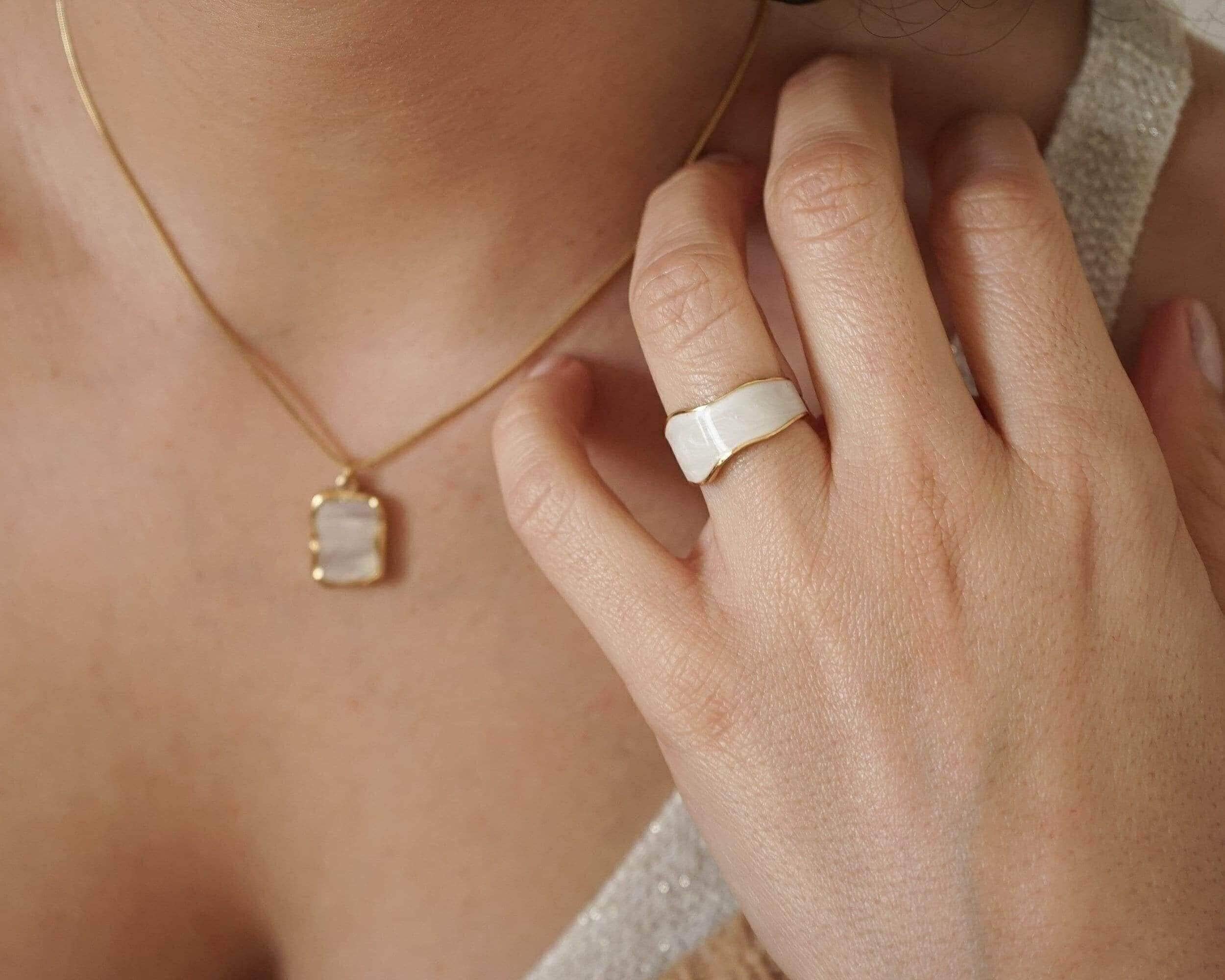 Χρυσό και Λευκό Δαχτυλίδι με Κοχύλι