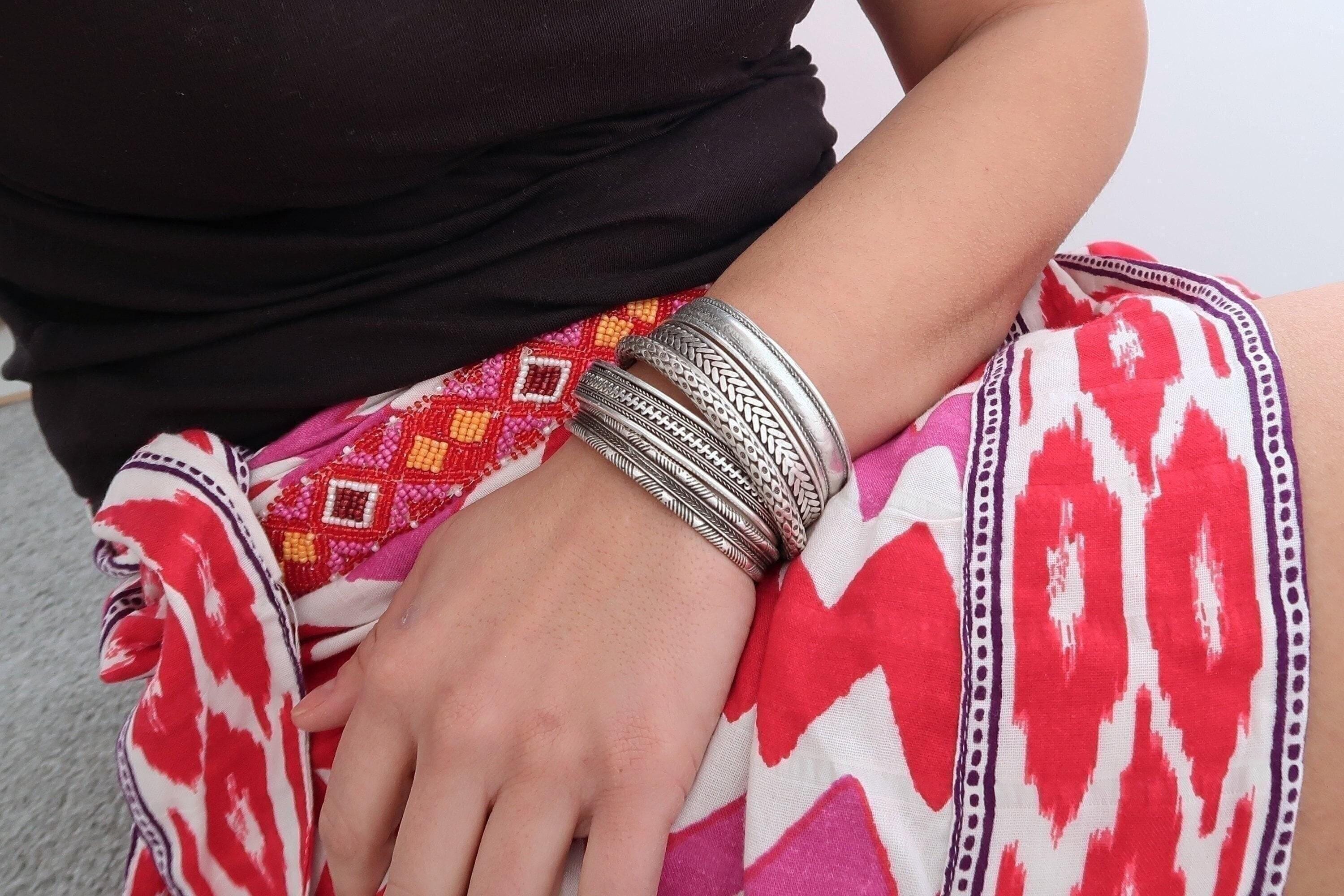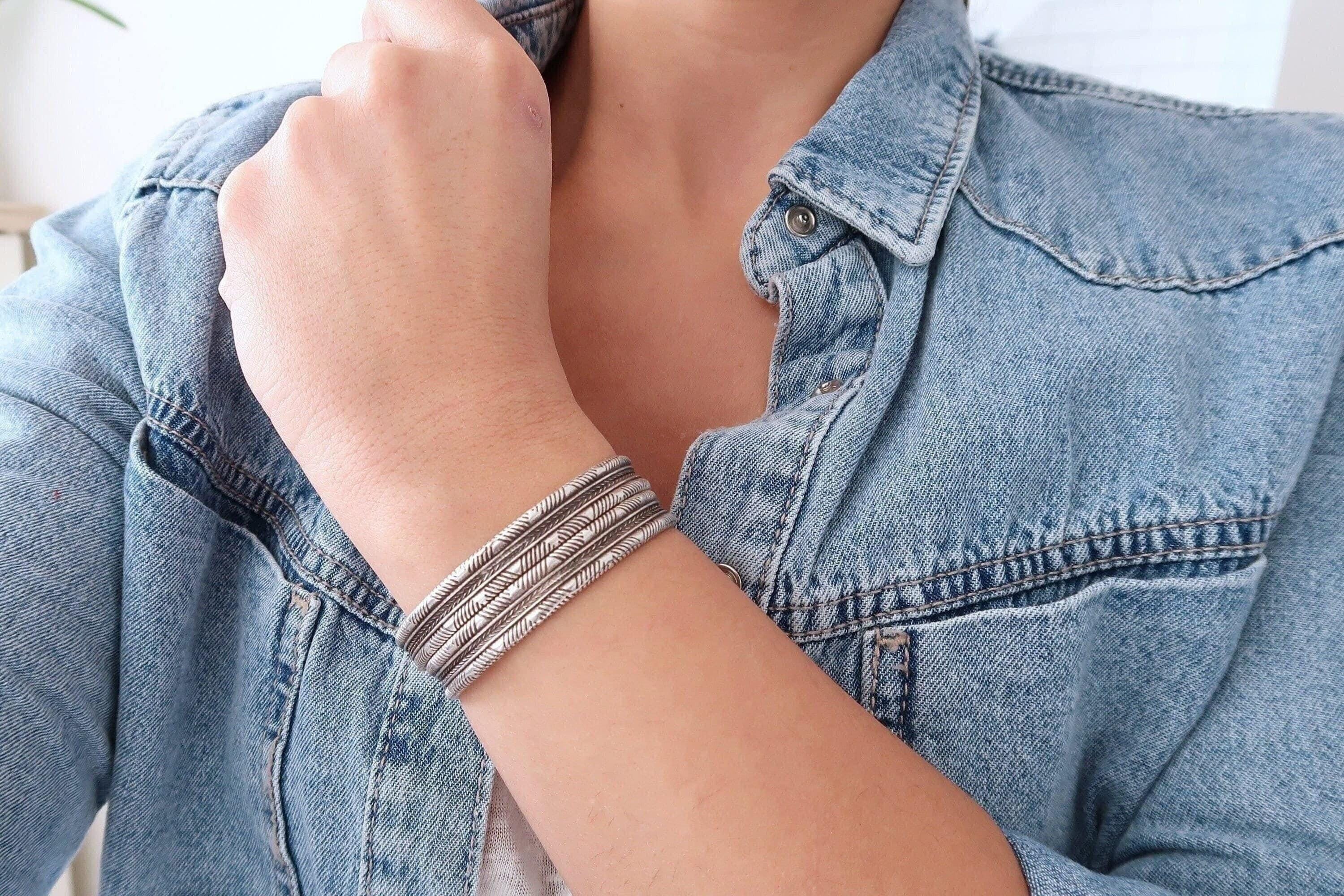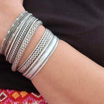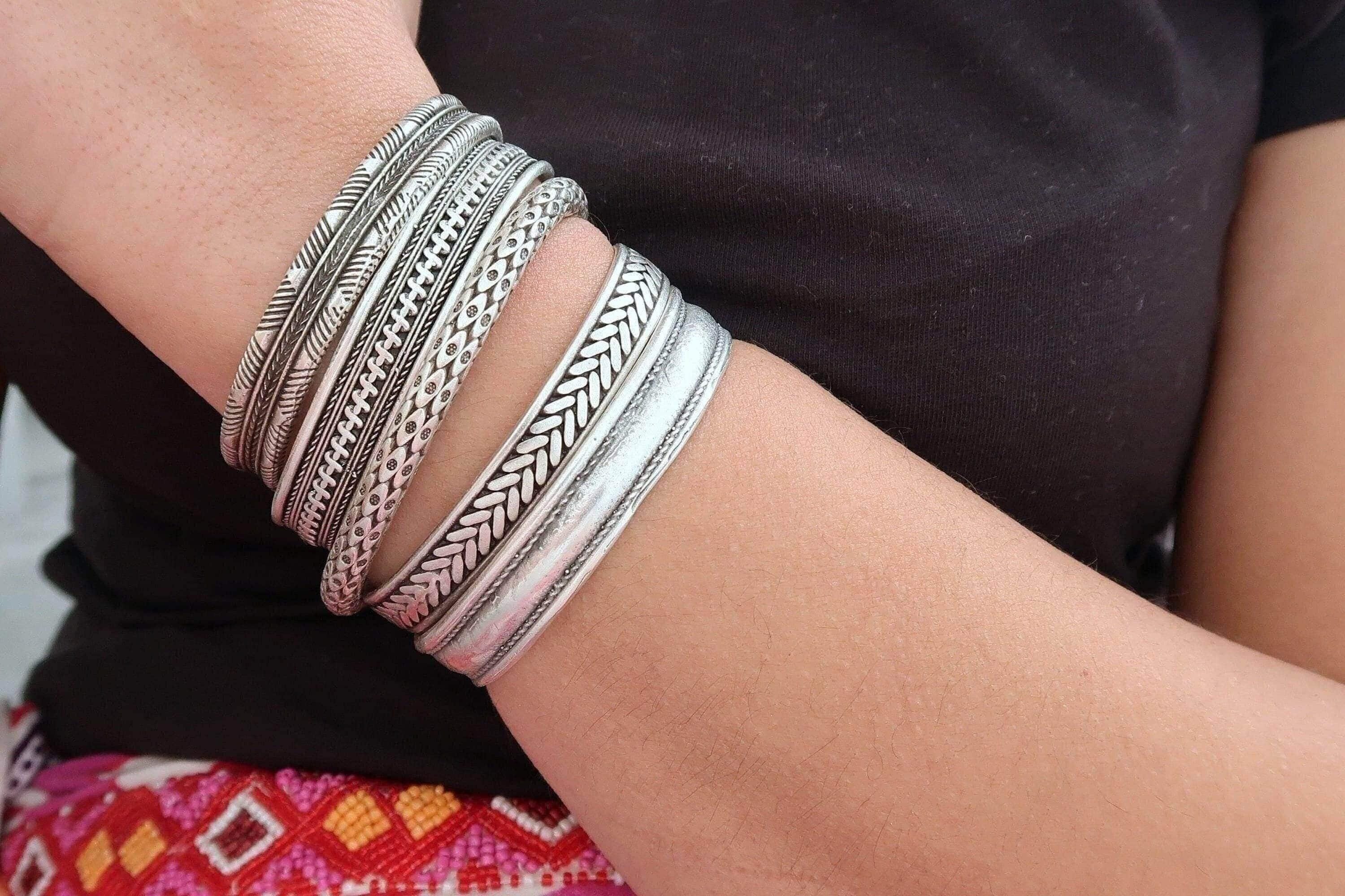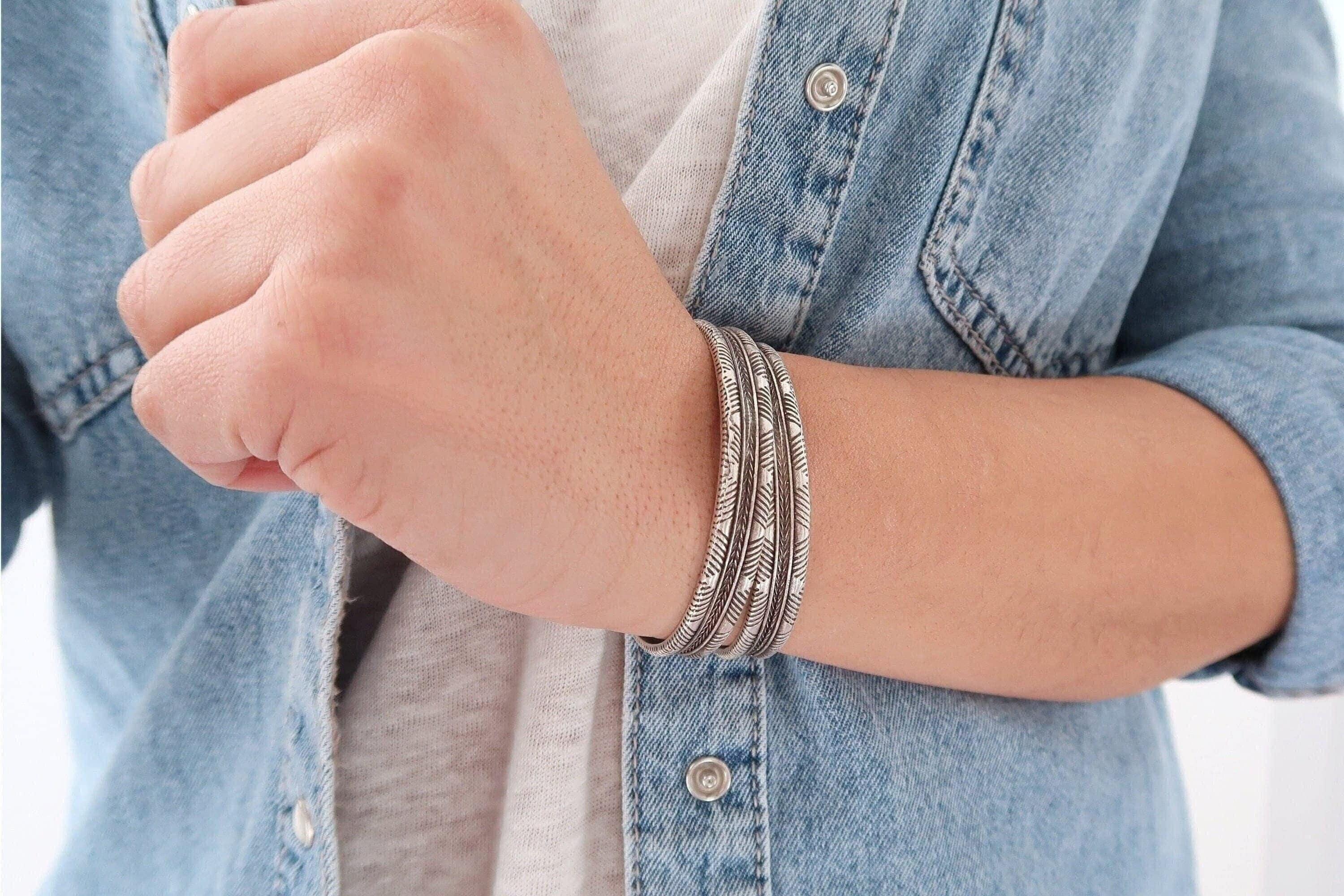 This silver-plated cuff bracelet, crafted with an antique vintage look, features a unique Native American-inspired design that exudes timeless elegance and cultural charm. The intricate detailing, combined with a black patina finish, gives this piece a distinctive character that complements both modern and traditional styles.
