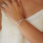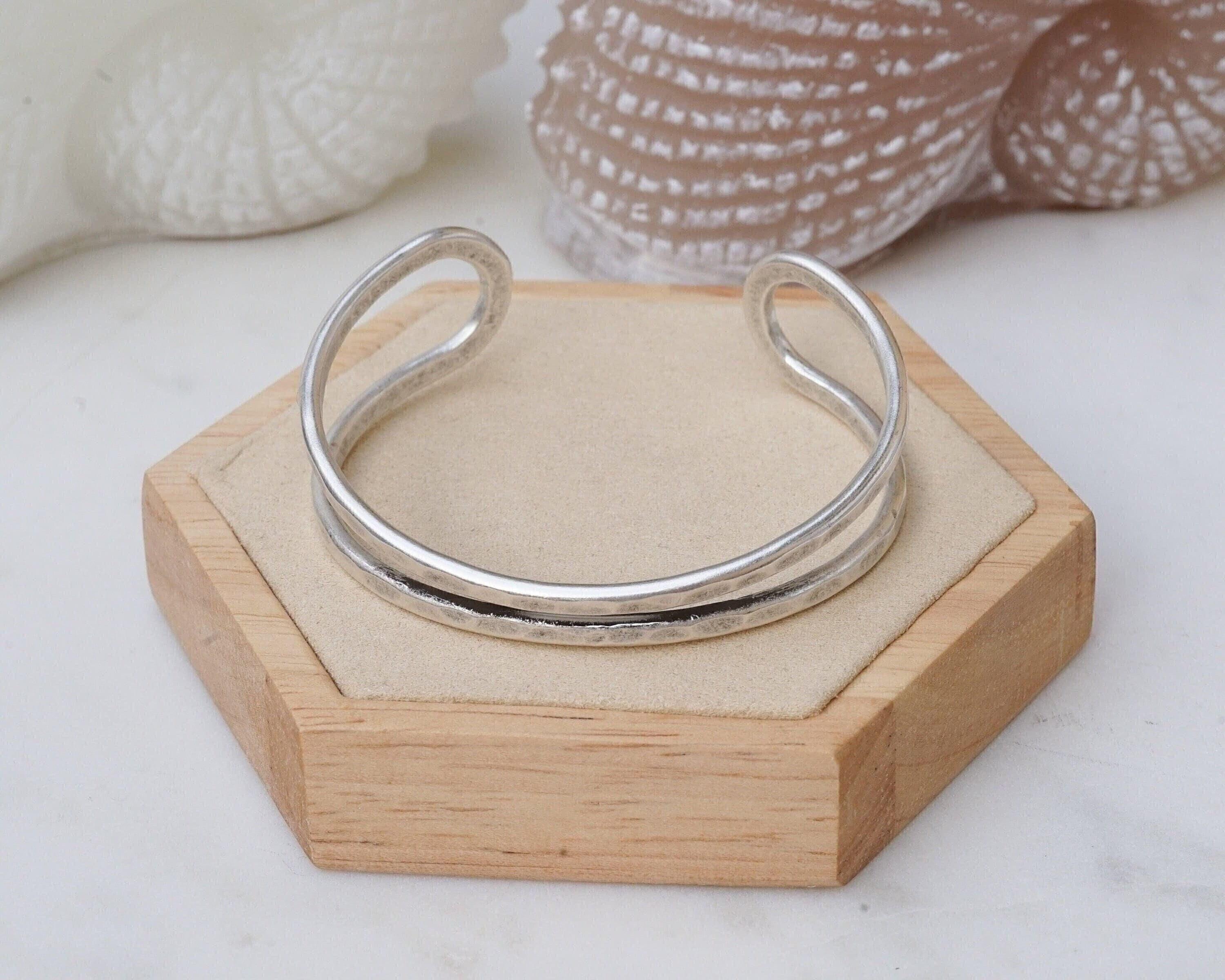 Silver Hammered Cuff Two Lines or X Design Stacking Bracelet