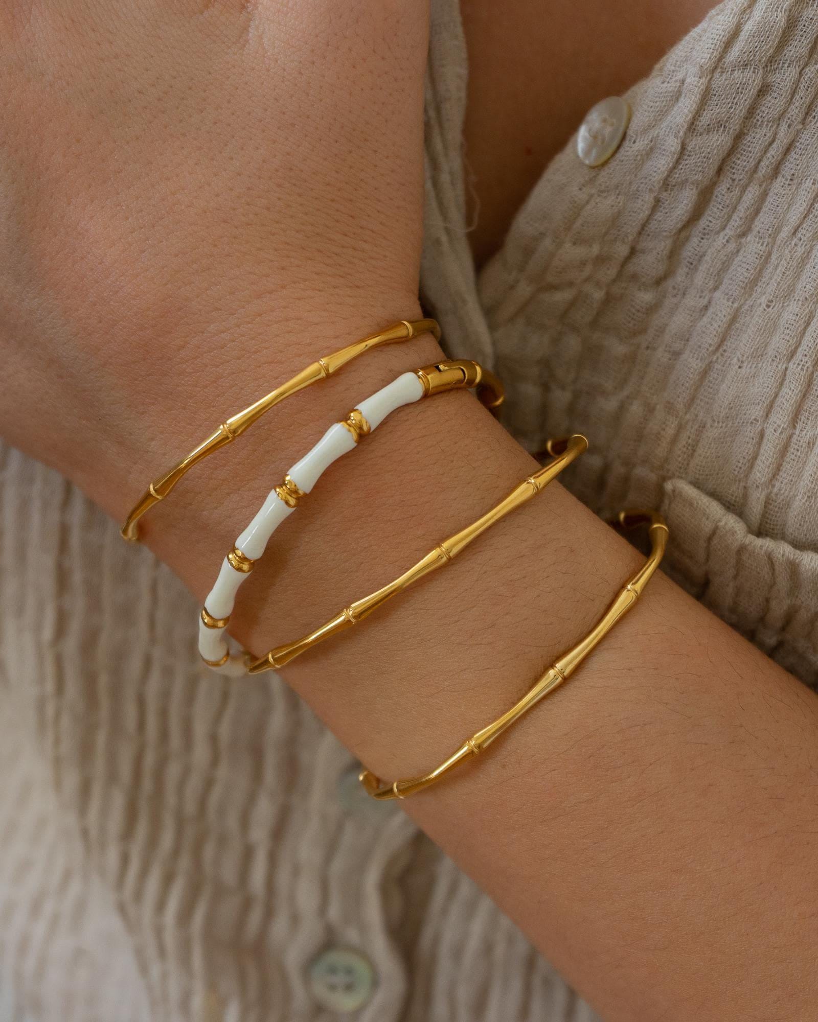 Gold Bamboo Bracelet with Color Enamel