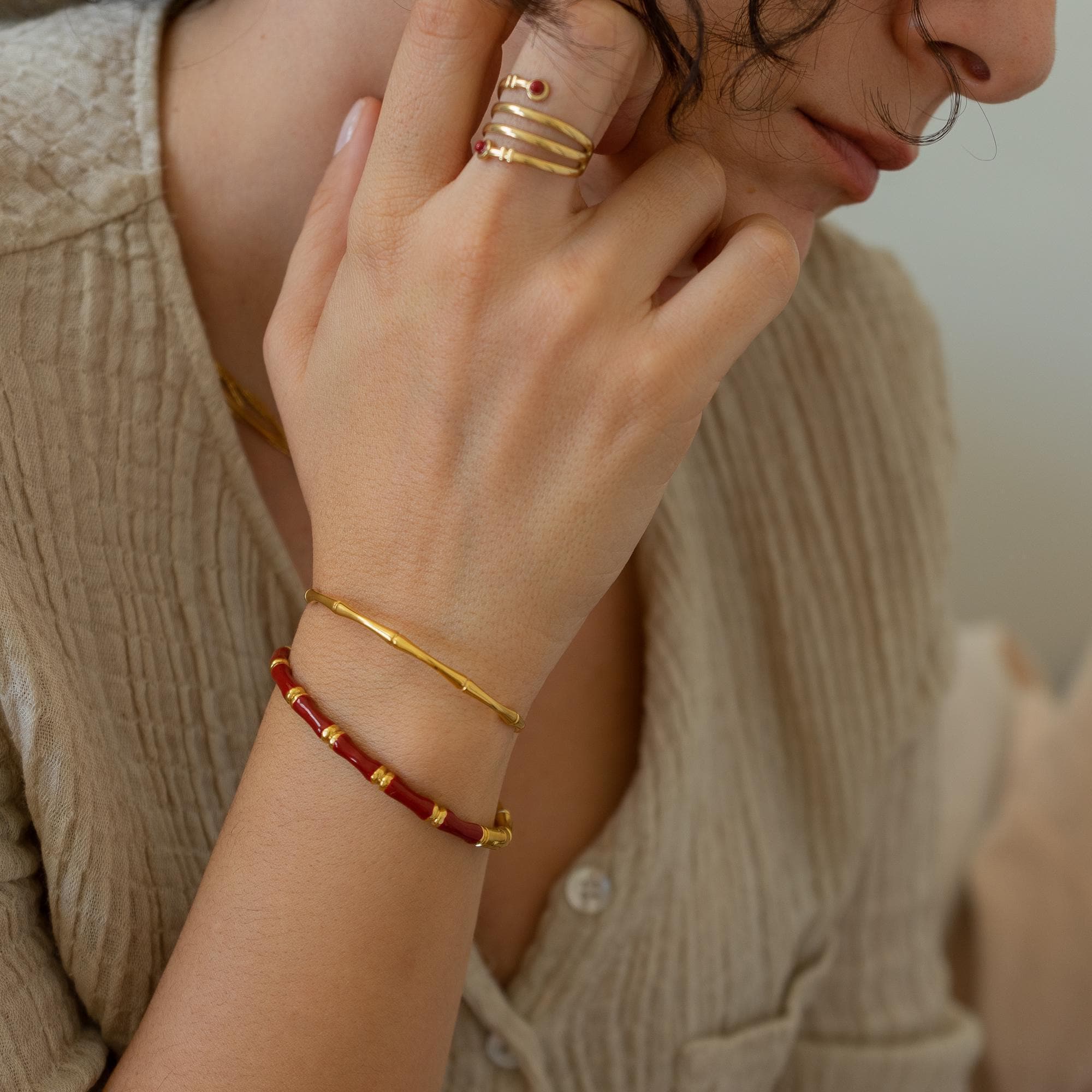Bamboo carries rich symbolism in various cultures. In Chinese tradition, it represents harmony, consistency, and integrity with its upright growth and evergreen nature. In Japan, bamboo is a symbol of prosperity, purity, and innocence. This bracelet captures these qualities, making it the perfect complement to your bohemian style.