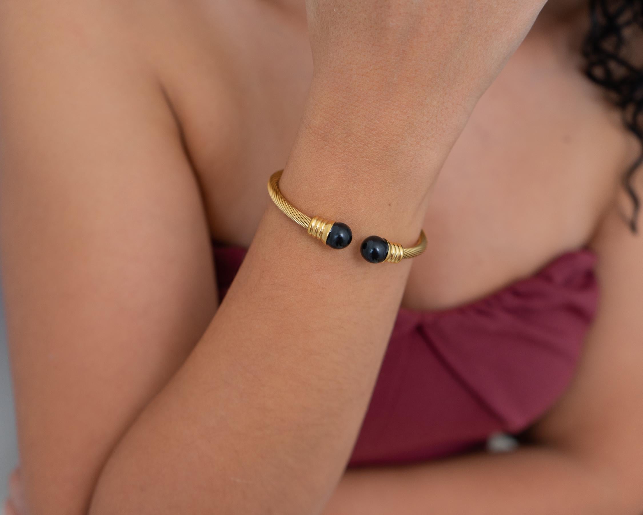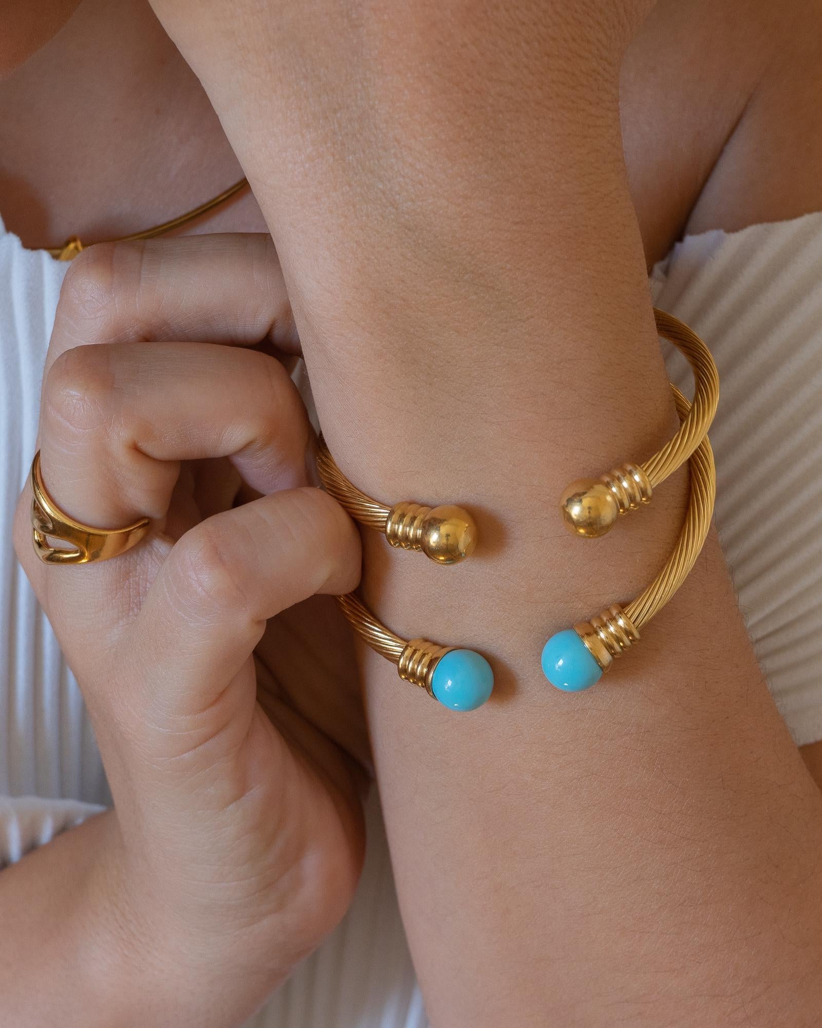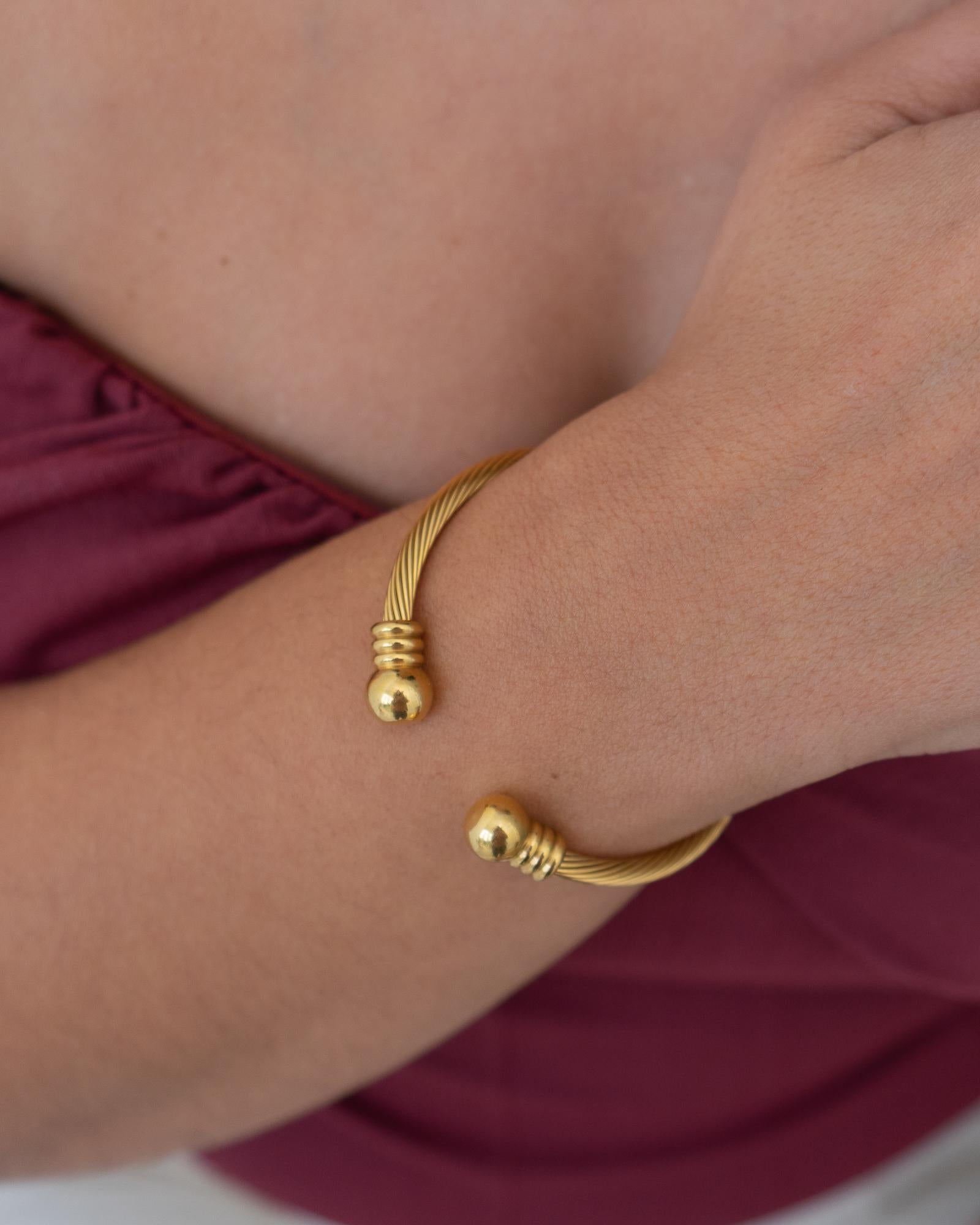 The Gold Classic Cable Cuff is a timeless accessory, available in two charming colors. With its elegant twisted rope design, this bracelet effortlessly combines sophistication and practicality, making it a standout piece in any jewelry collection.