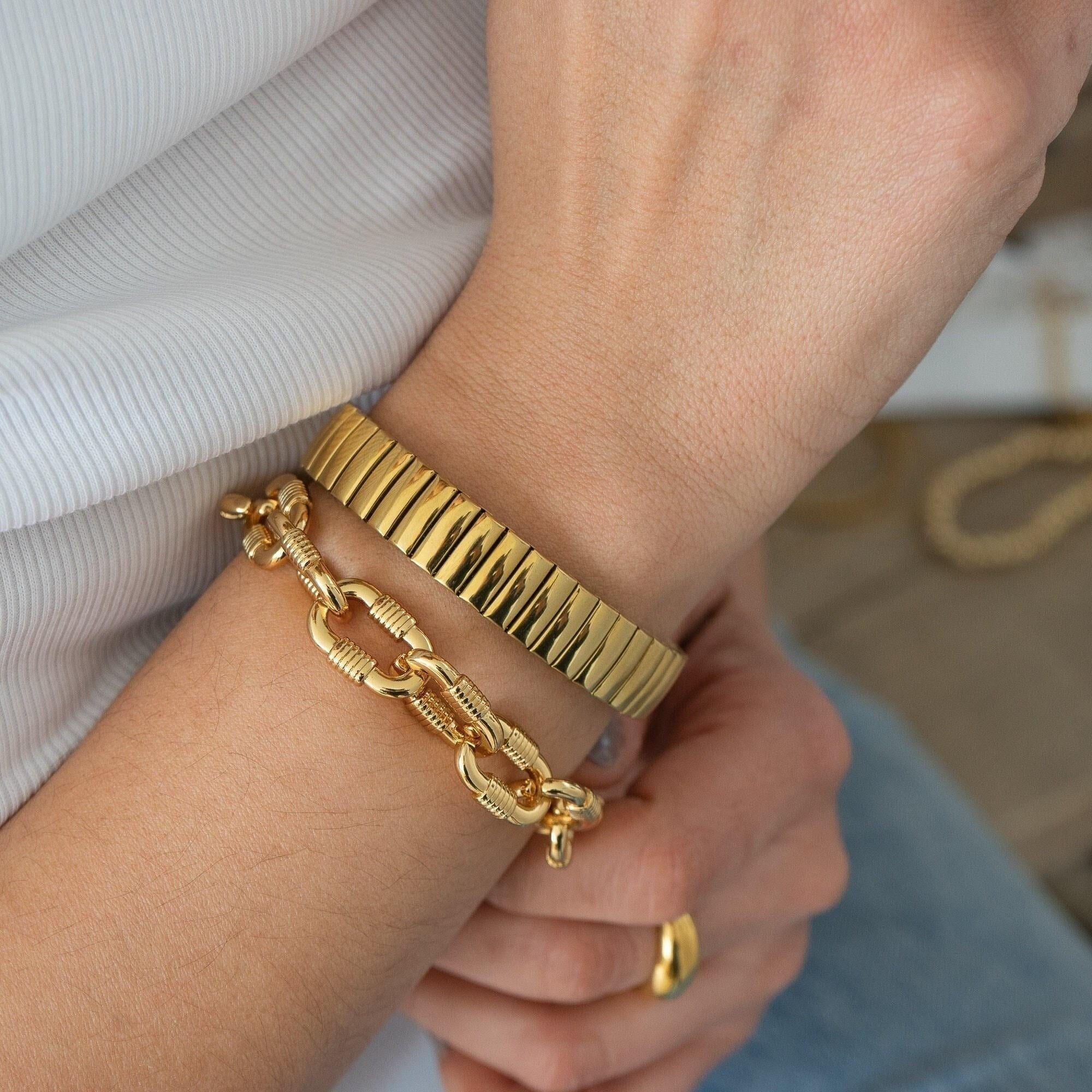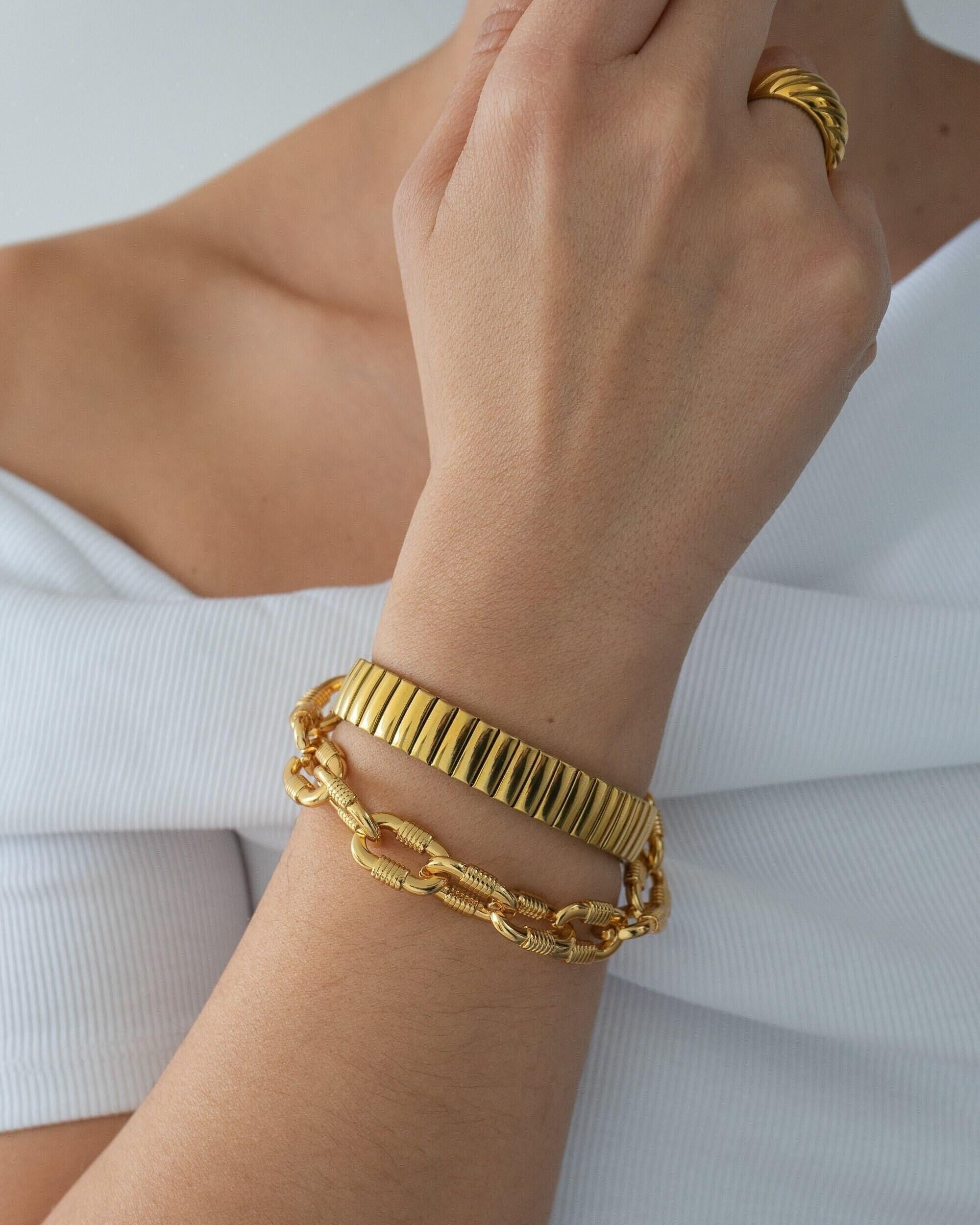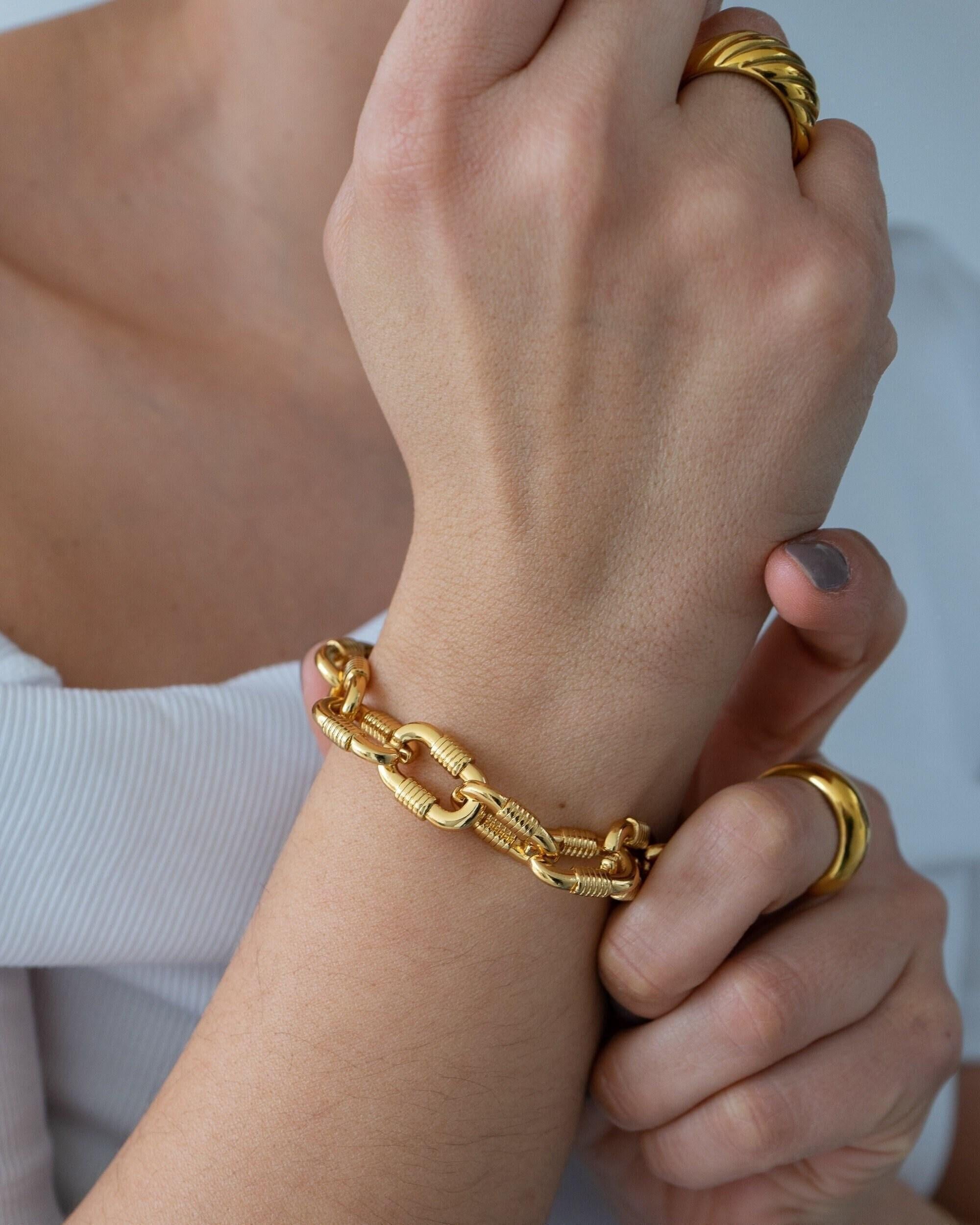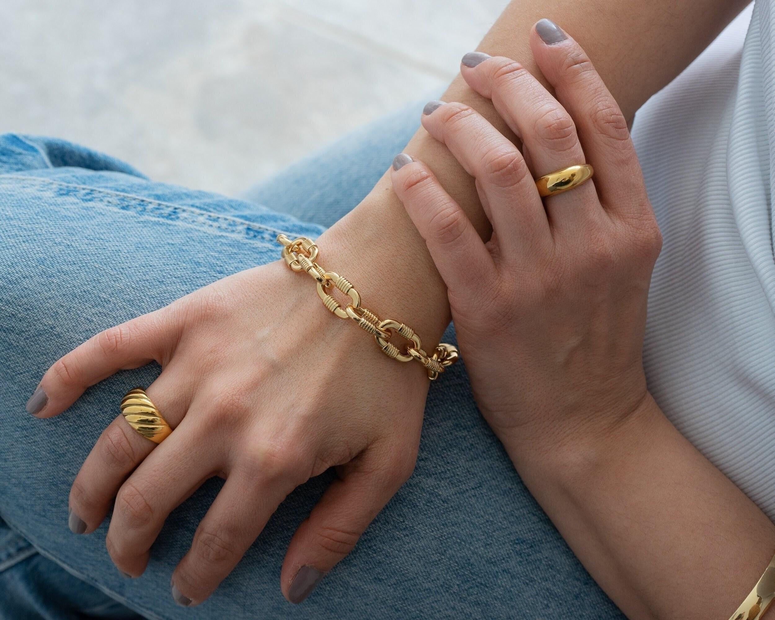 Make a bold statement with the Chunky Oval Links Bracelet, a striking piece designed to elevate any outfit, day or night. Featuring oversized oval links, this bracelet adds a touch of modern sophistication and is perfect for creating a standout look.