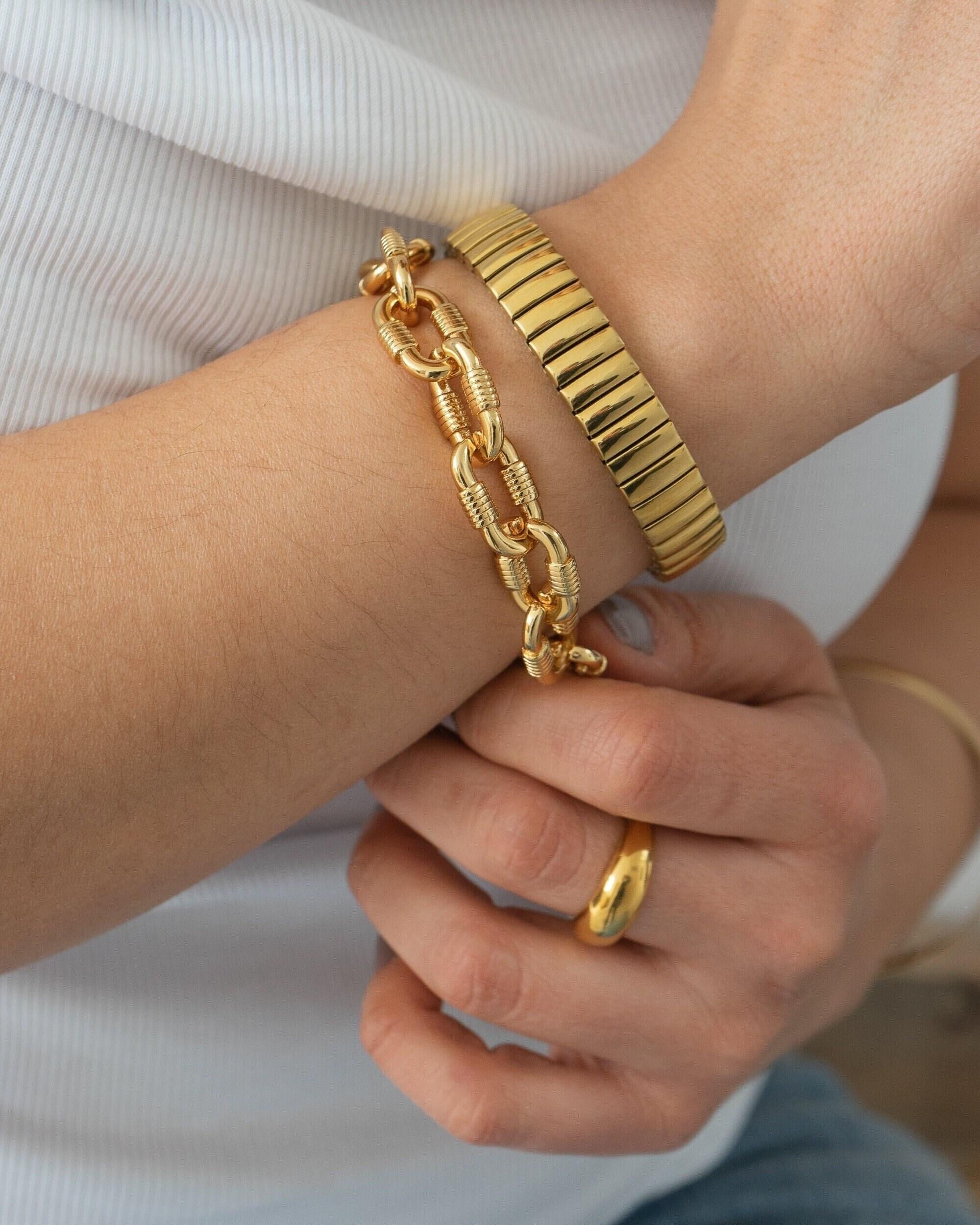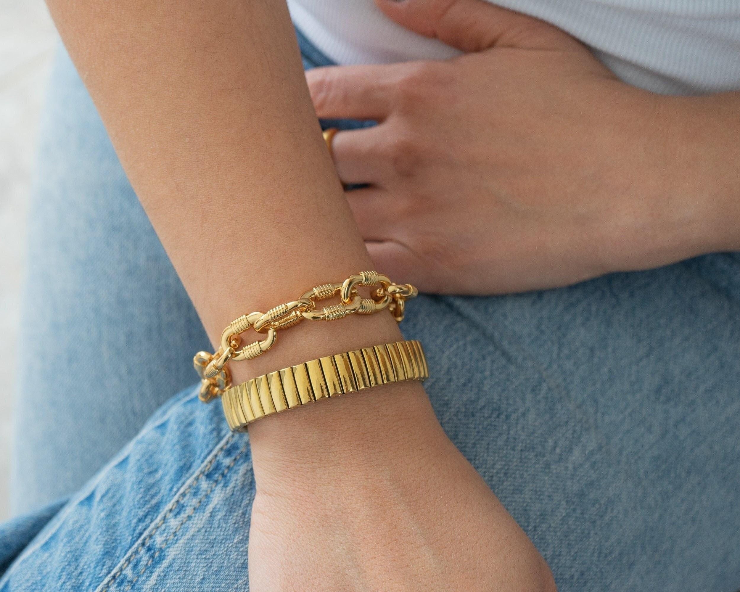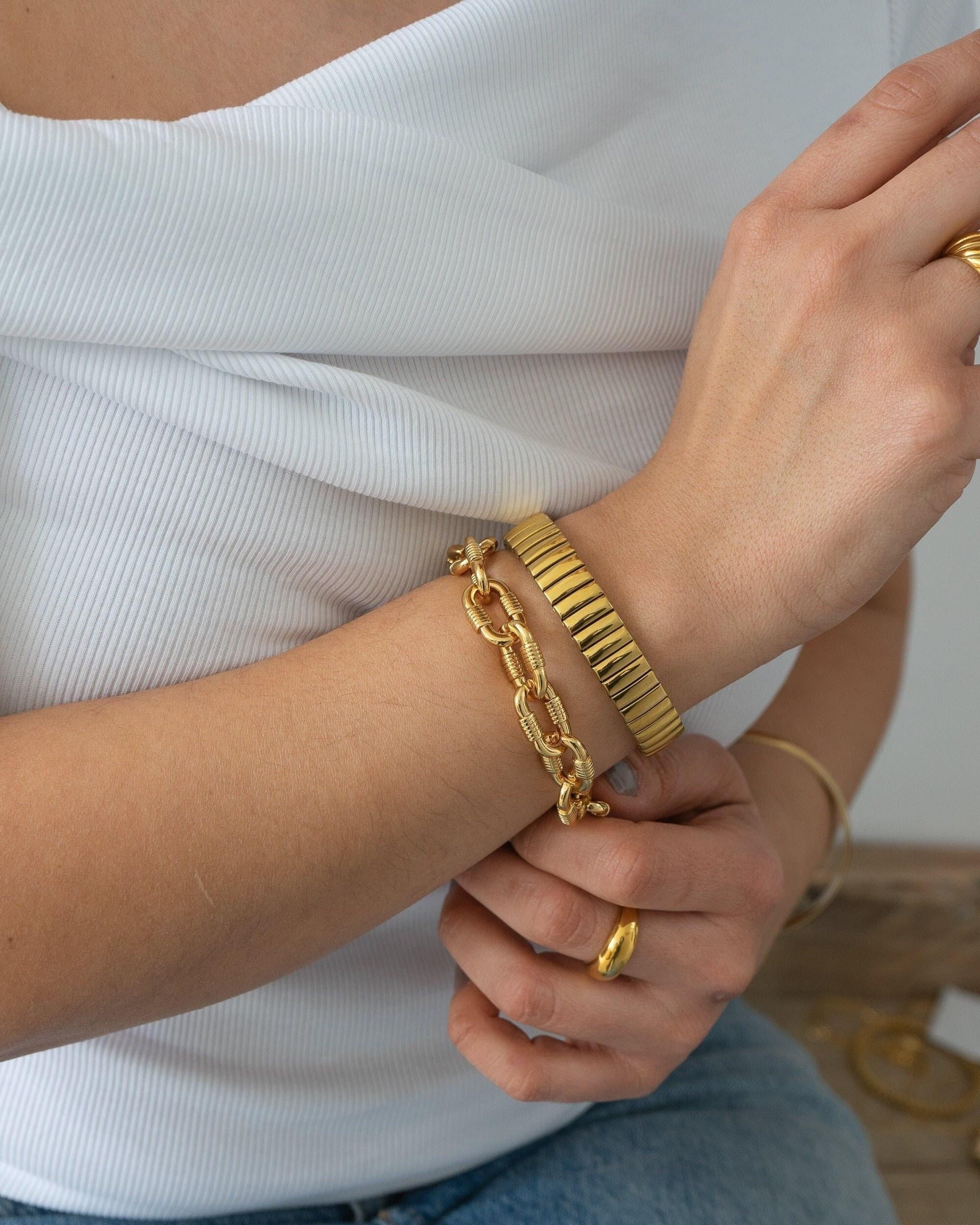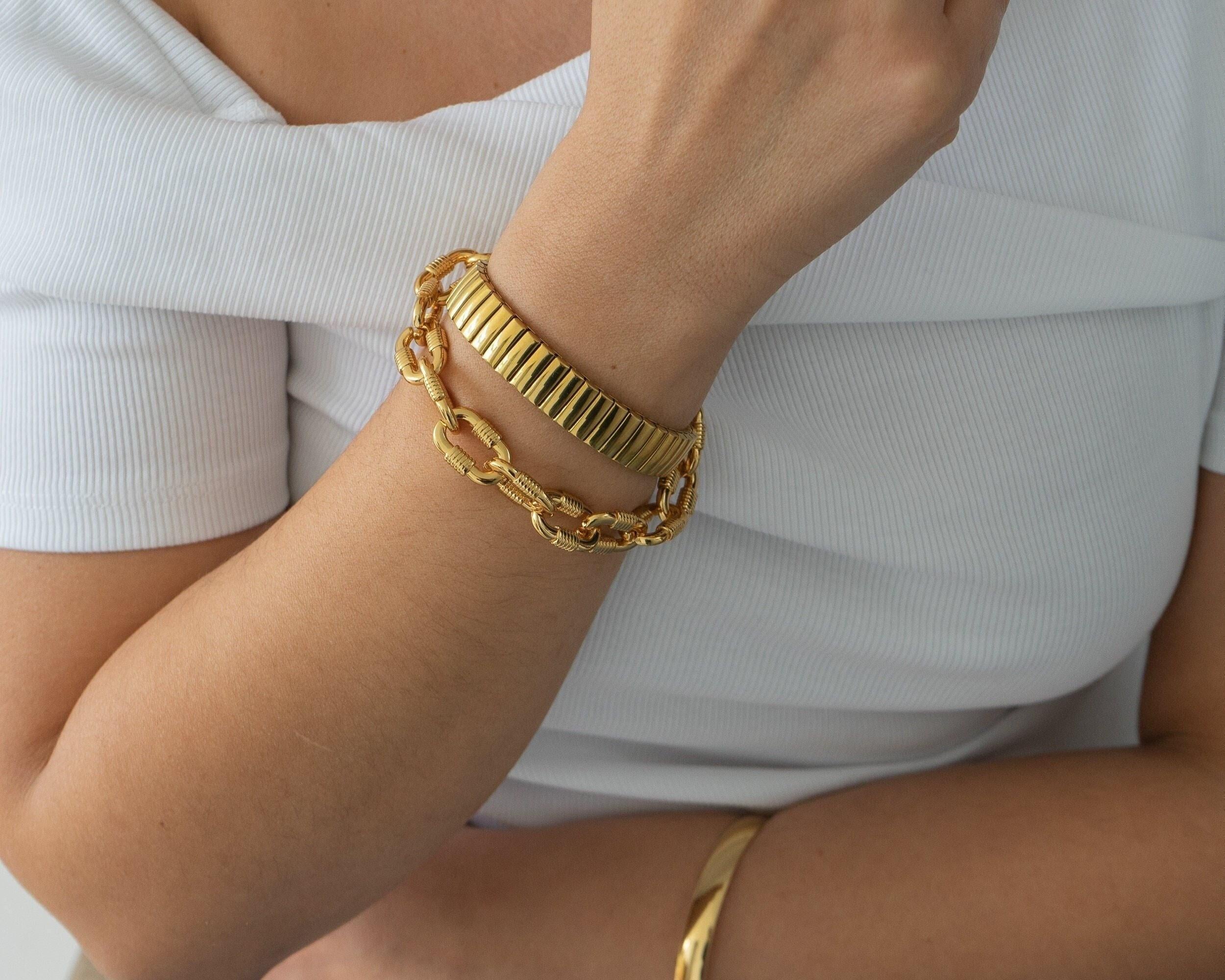 Make a bold statement with the Chunky Oval Links Bracelet, a striking piece designed to elevate any outfit, day or night. Featuring oversized oval links, this bracelet adds a touch of modern sophistication and is perfect for creating a standout look.