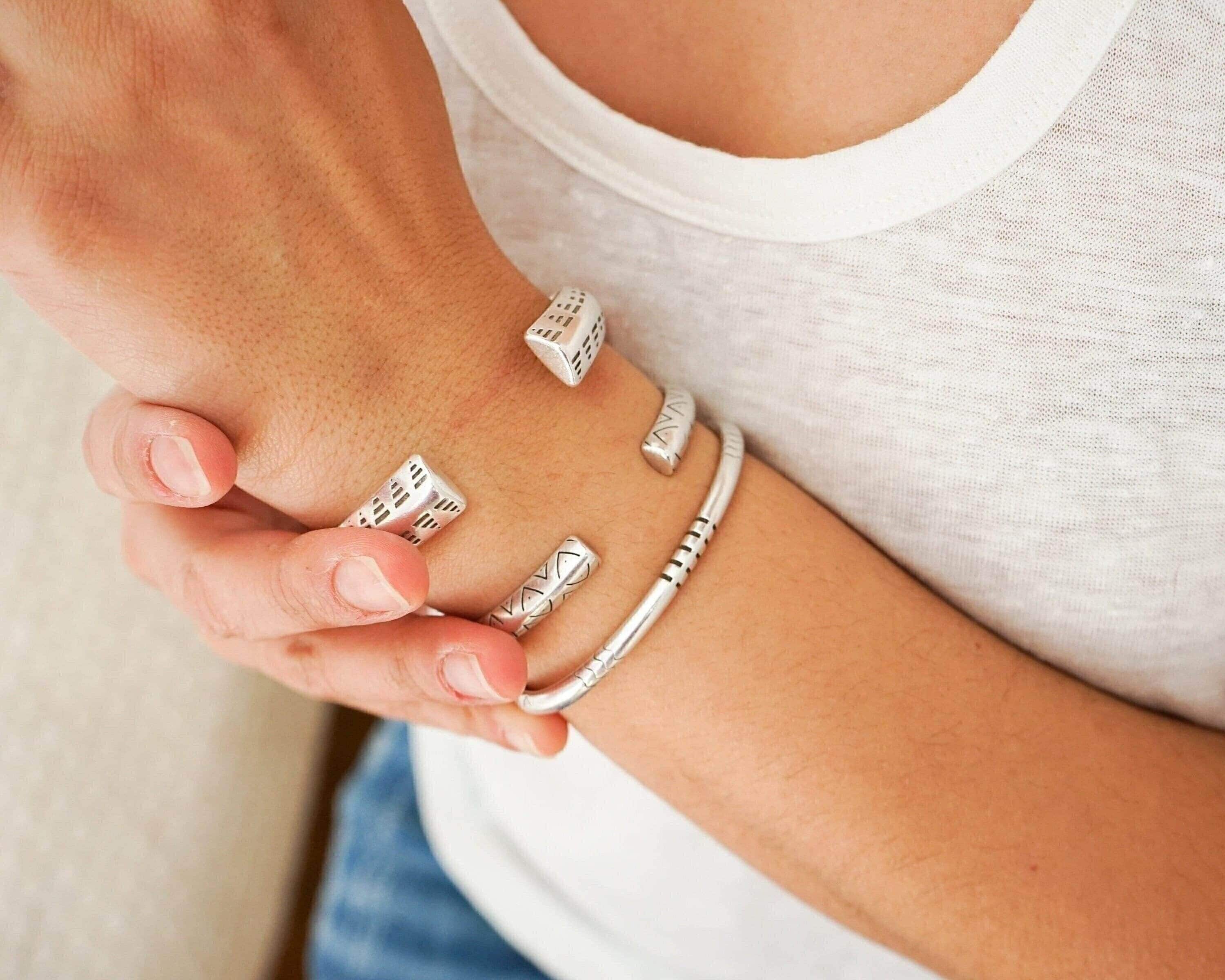 Open Silver Ethnic Tribal Cuff Bracelet