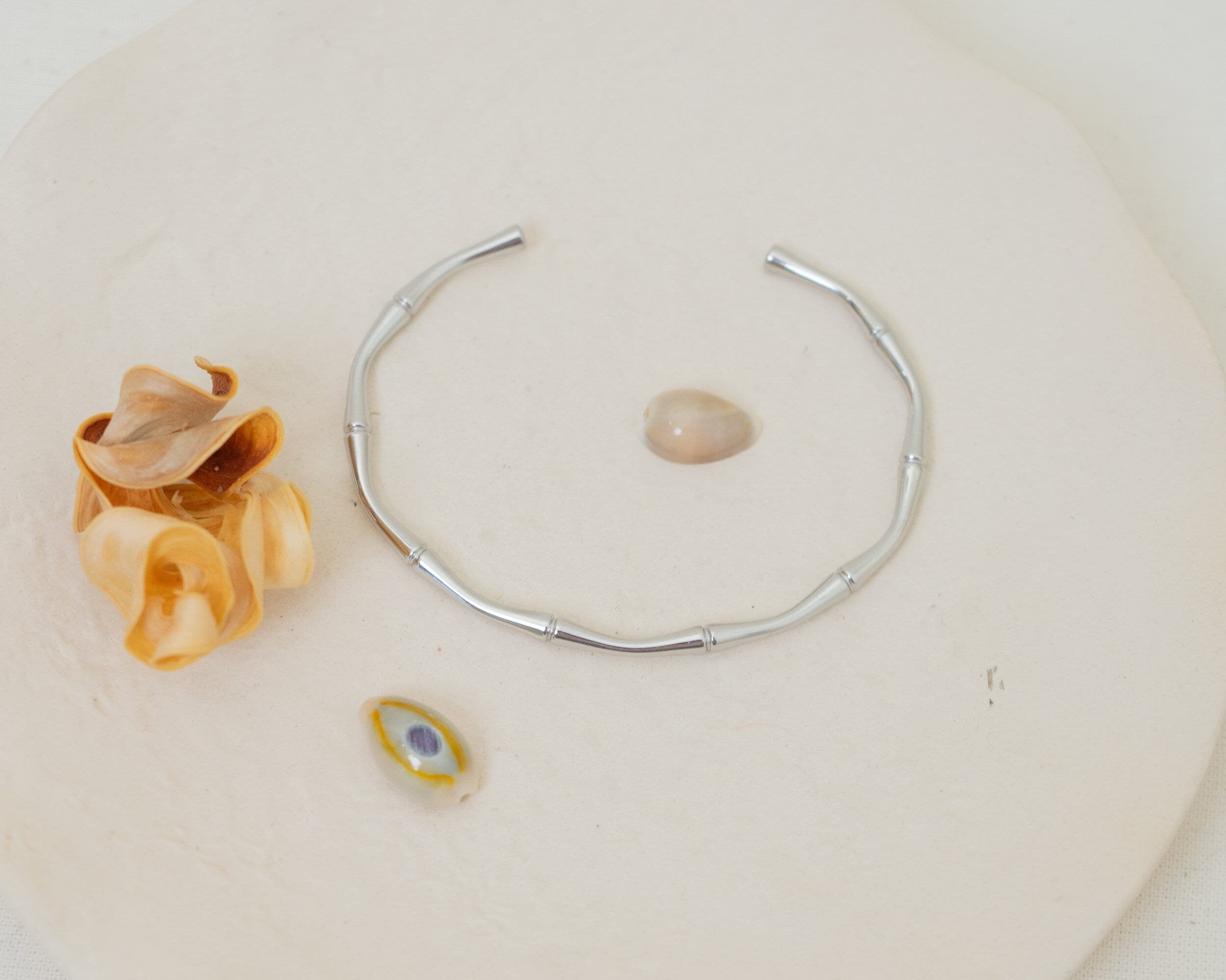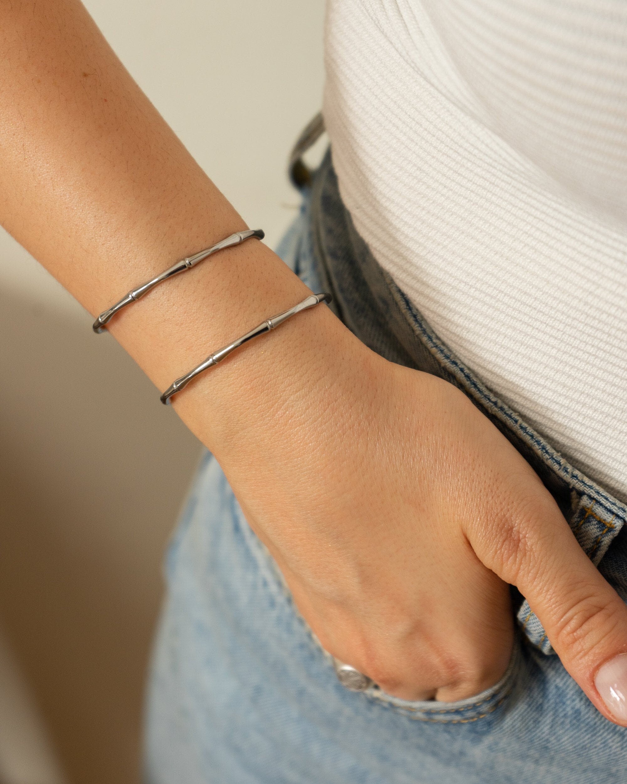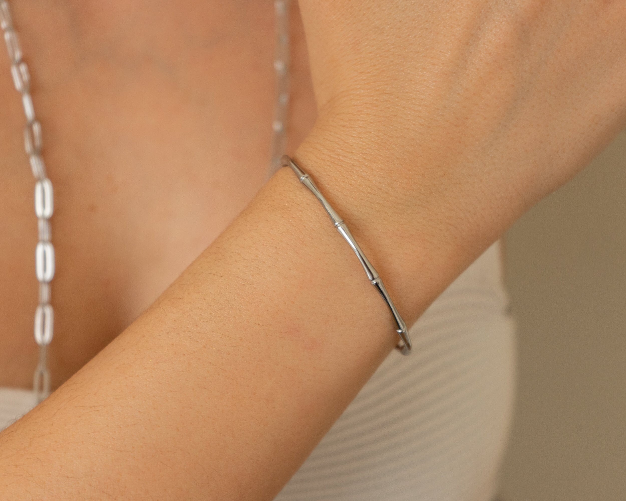This beautifully crafted Bamboo Bracelet draws inspiration from the elegant stem of the bamboo plant, celebrating nature and the minimalist way of life. Made from durable stainless steel, it is water-resistant and perfect for complementing your beach or bohemian style. Its sturdy design ensures durability, making it a timeless addition to your jewelry collection.