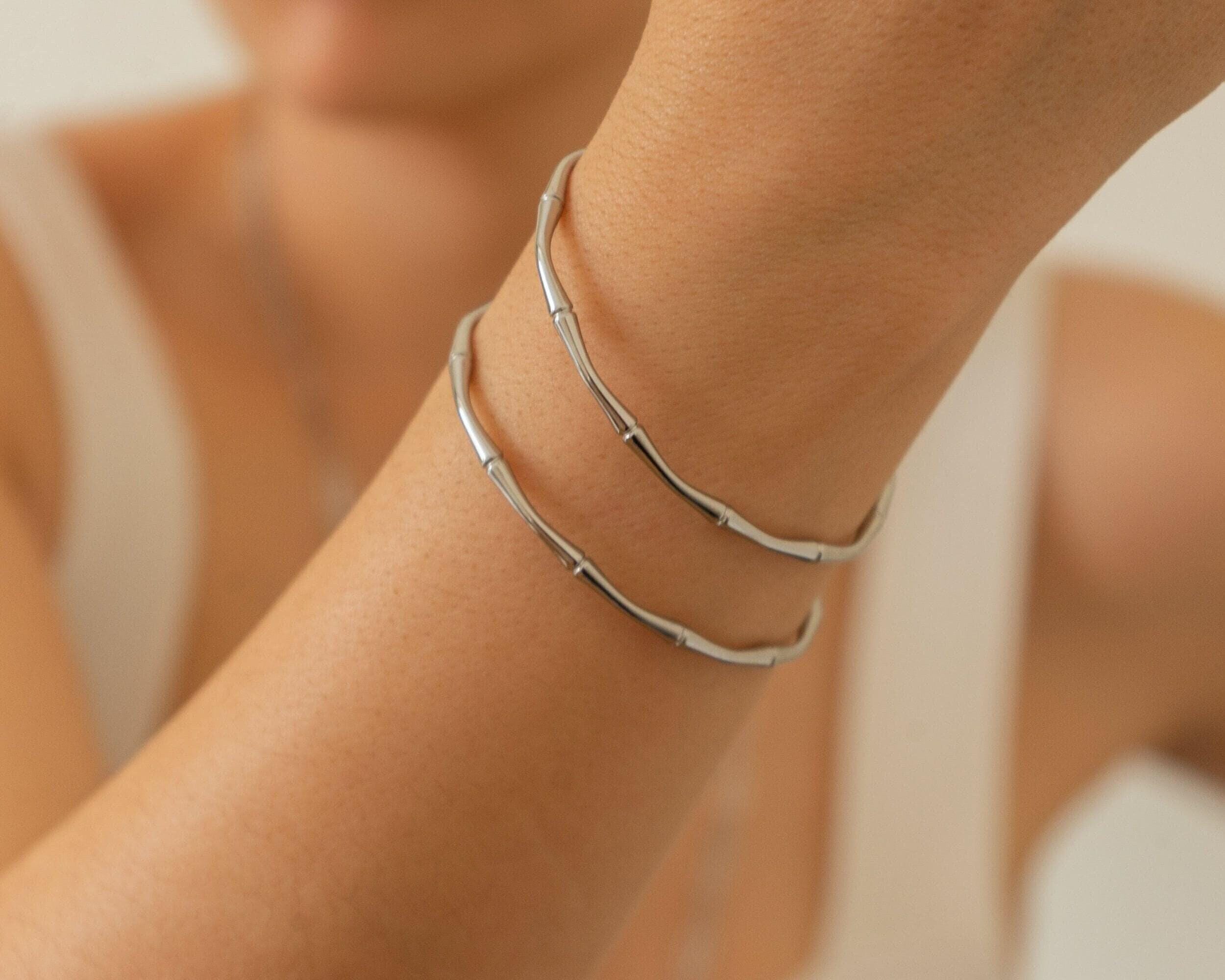 This beautifully crafted Bamboo Bracelet draws inspiration from the elegant stem of the bamboo plant, celebrating nature and the minimalist way of life. Made from durable stainless steel, it is water-resistant and perfect for complementing your beach or bohemian style. Its sturdy design ensures durability, making it a timeless addition to your jewelry collection.