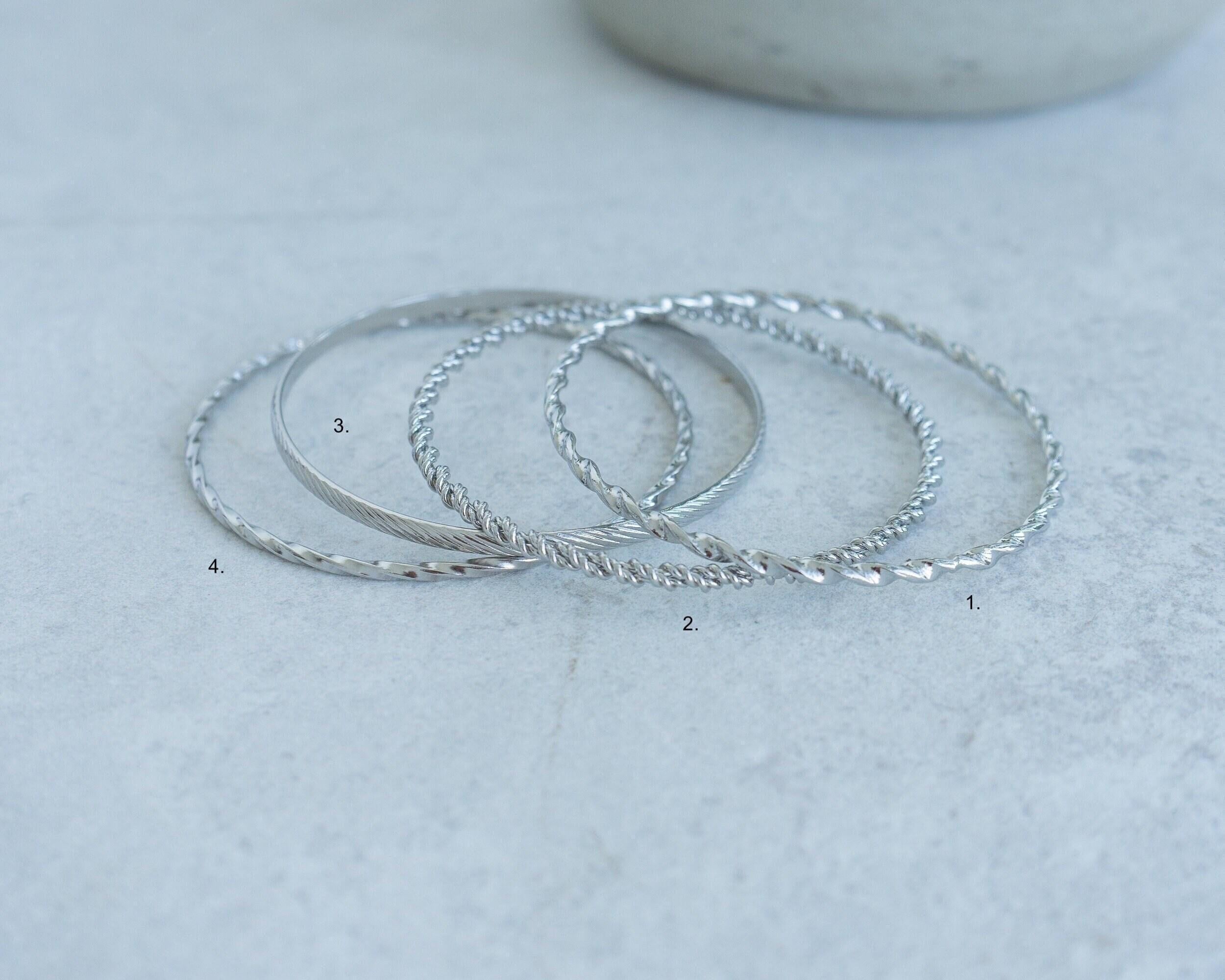 Available in four elegant designs, each bangle offers a slightly different look to suit your preferences. Collect one or more to layer and elevate your accessory game effortlessly.
