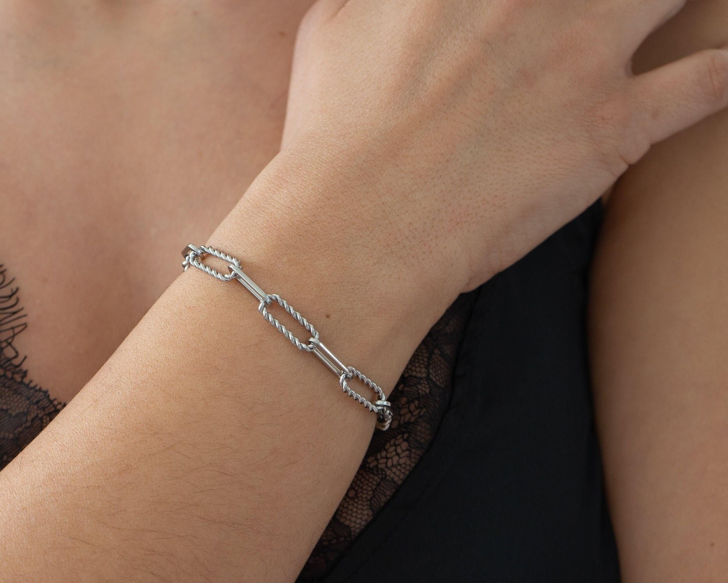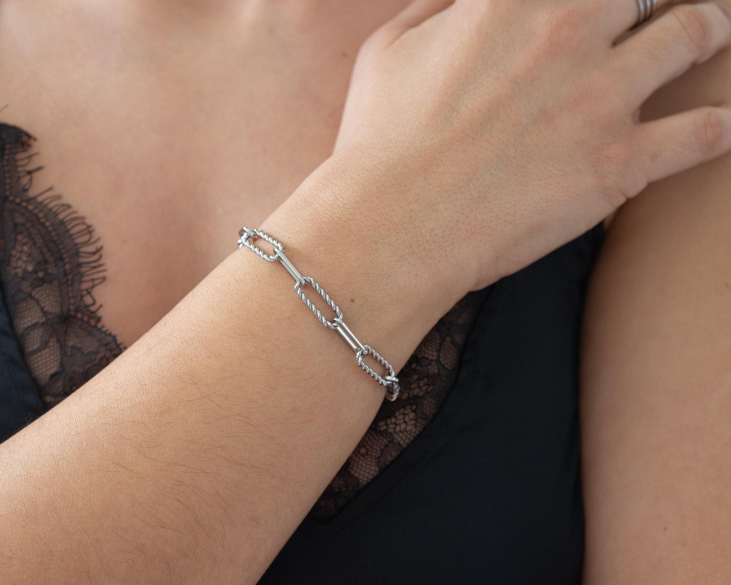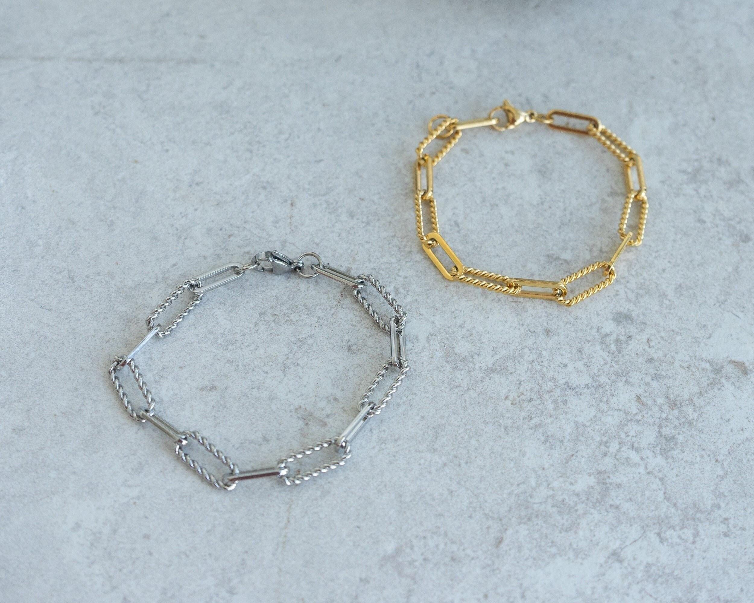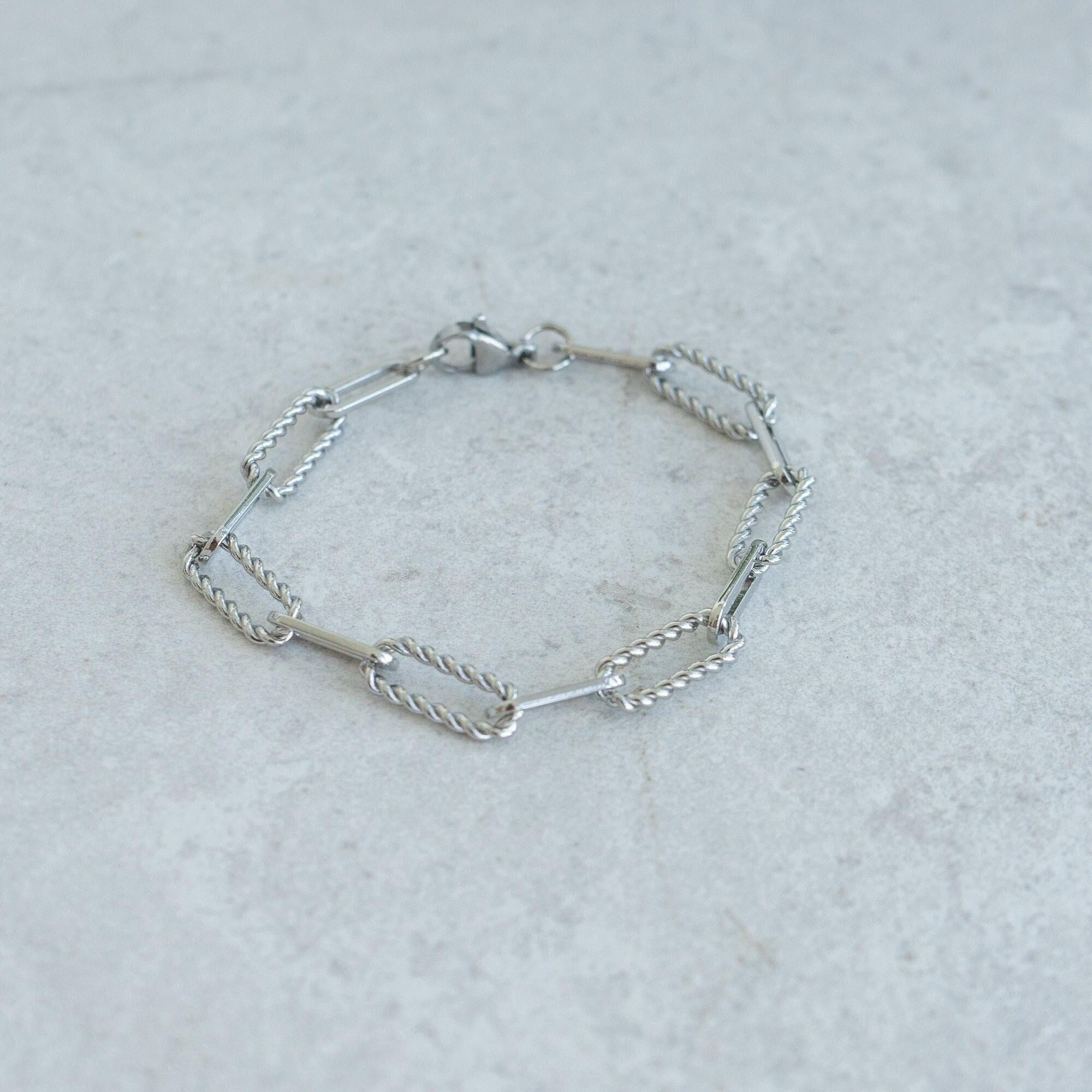 This elegant and timeless bracelet combines oval flat and twisted links to create a sophisticated and versatile design. Crafted from durable stainless steel, it is both waterproof and tarnish-free, ensuring long-lasting brilliance and functionality for everyday wear.