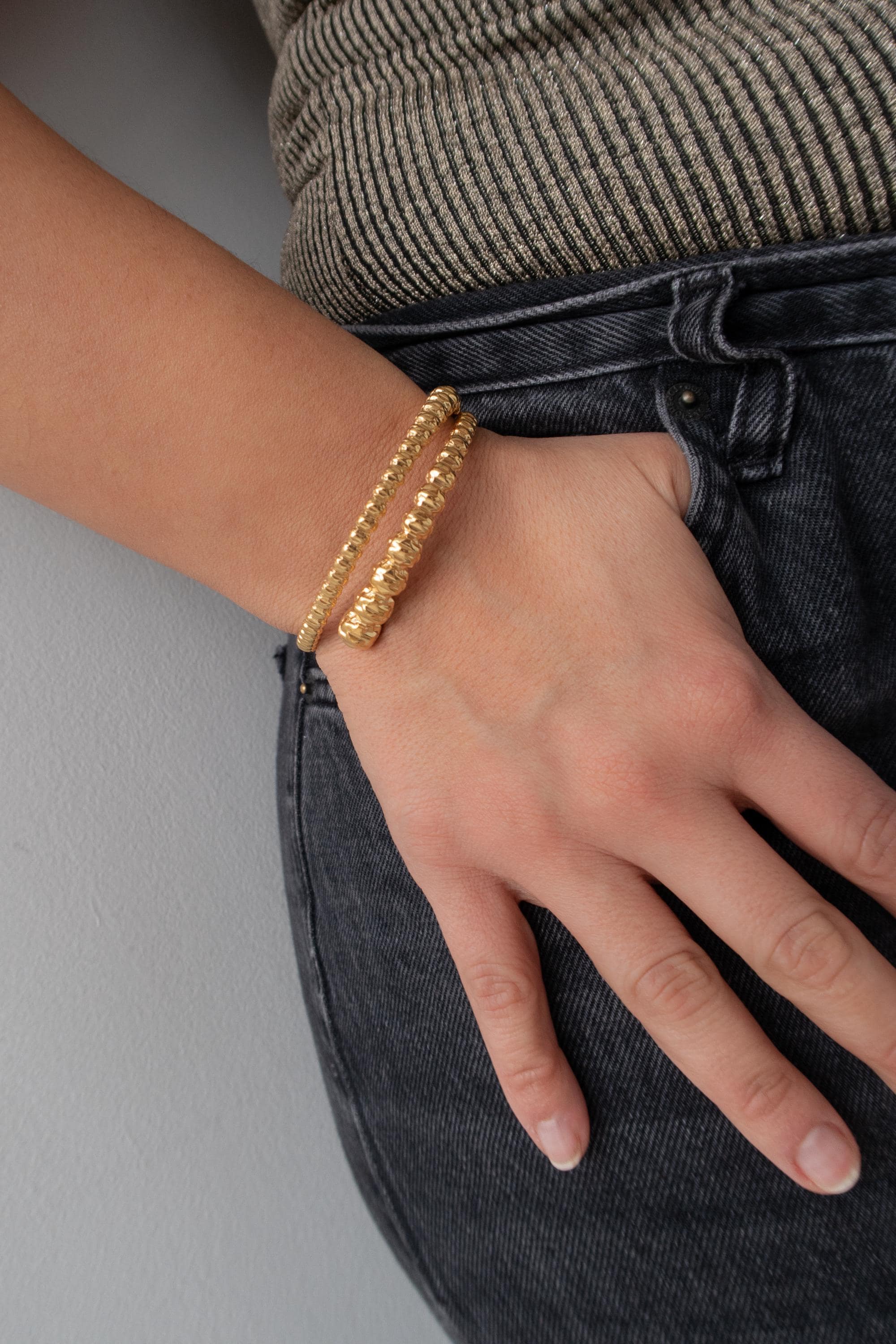 Φοριέται μόνο του για καθαρό, minimal look ή συνδυάζεται εύκολα με άλλα βραχιόλια για layering. Ανθεκτικό και άνετο για καθημερινή χρήση.