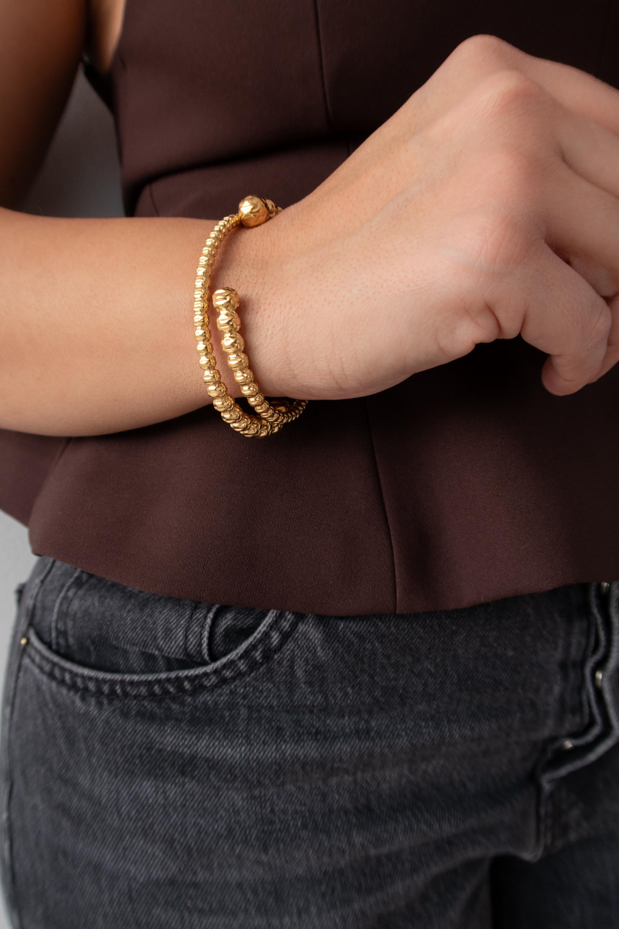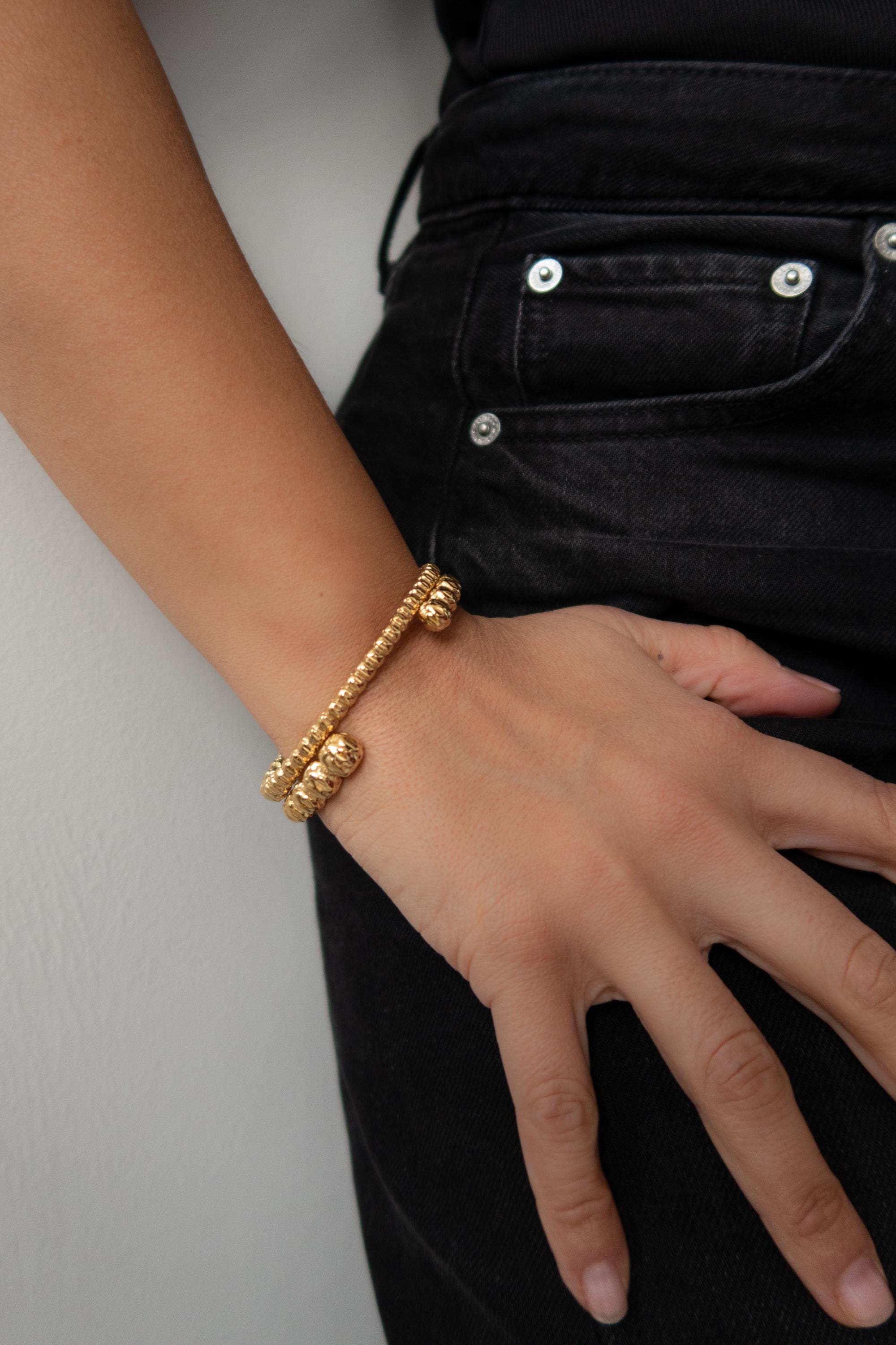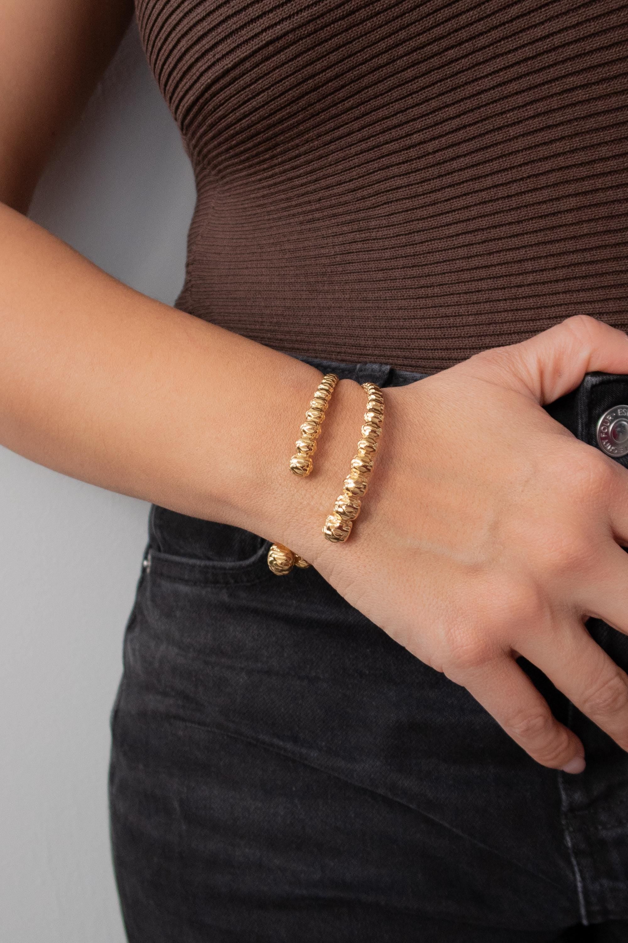 Χρυσό Βραχιόλι με Σφυρήλατες Μπίλιες