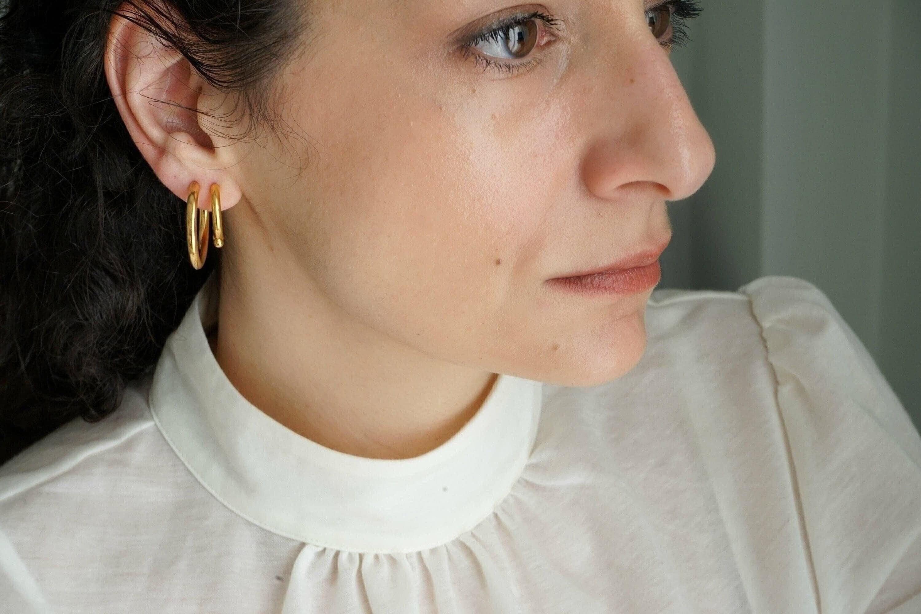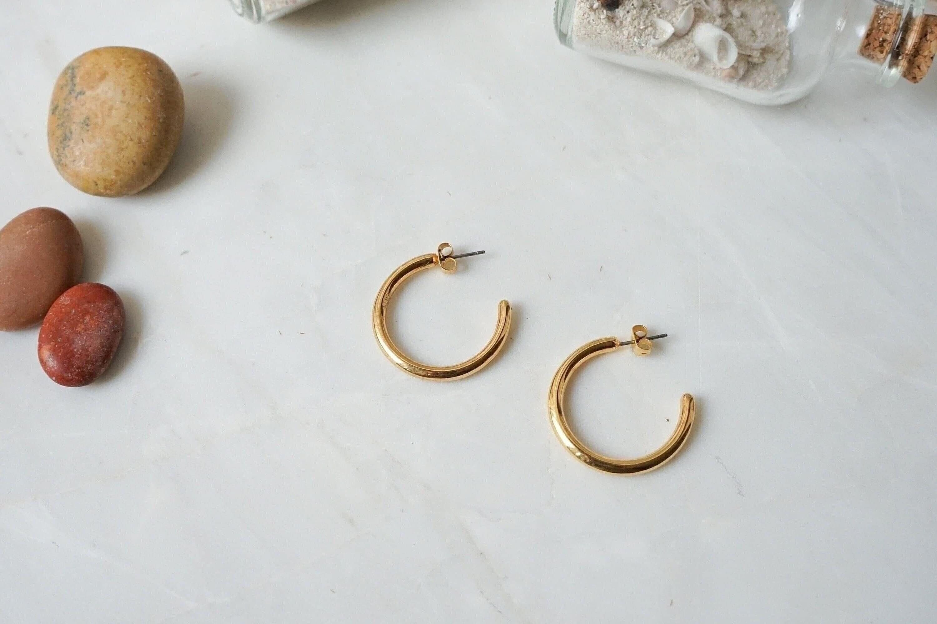 Elevate your accessory game with these stunning gold open hoop earrings. Ideal for those who appreciate versatility, these hoops can be worn alone to achieve a timeless and elegant look, or layered with other earrings for a contemporary edge. Designed to complement any outfit, they effortlessly transition from day to night, making them suitable for any occasion.