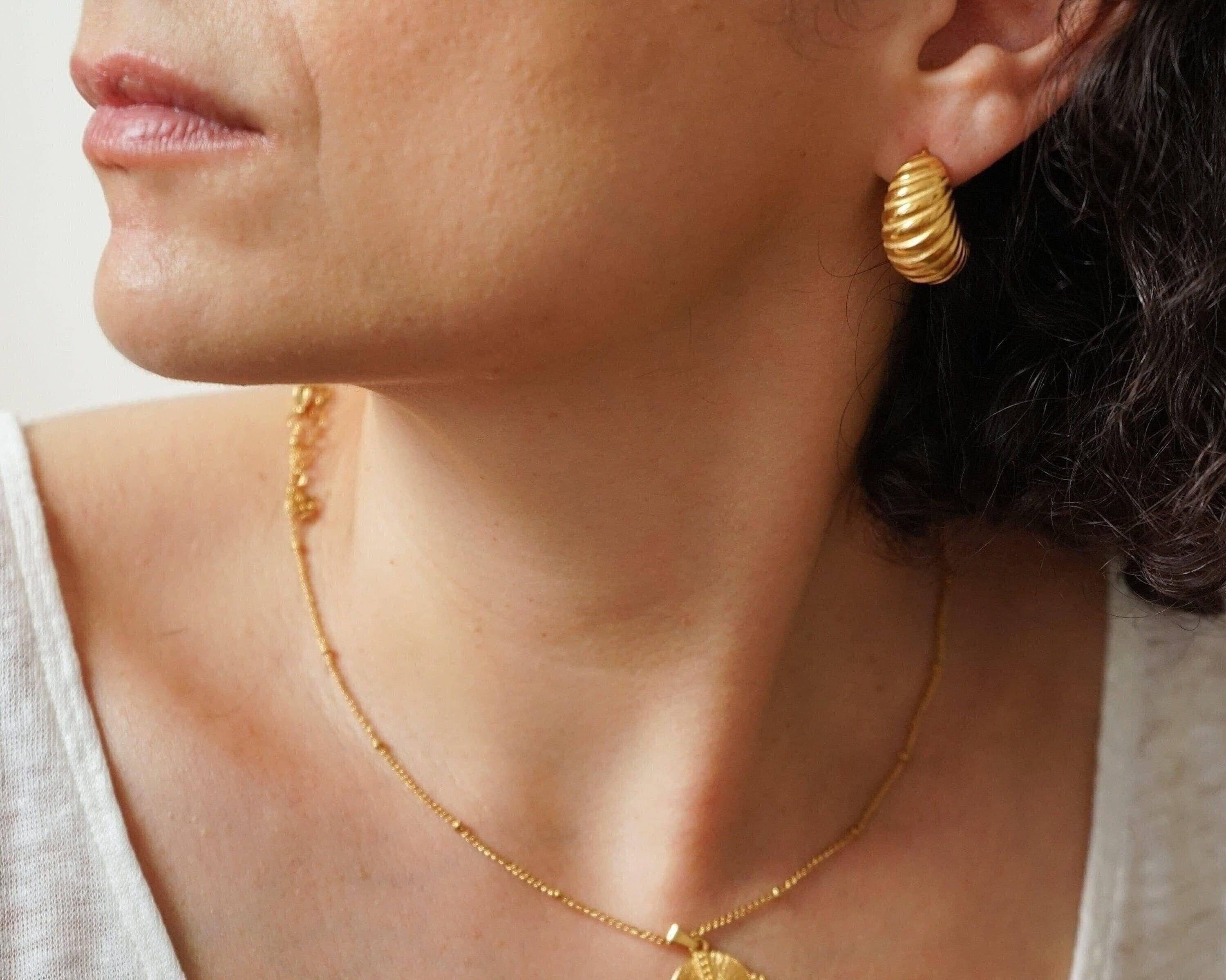 Discover the perfect blend of contemporary style and enduring elegance with our Croissant Dome Hoops. These exquisite earrings are crafted to enhance a wide range of outfits, effortlessly transitioning from daytime casual to evening chic. Made from tarnish-free, waterproof stainless steel, they are designed to withstand the test of time, ensuring you can enjoy them for years to come.