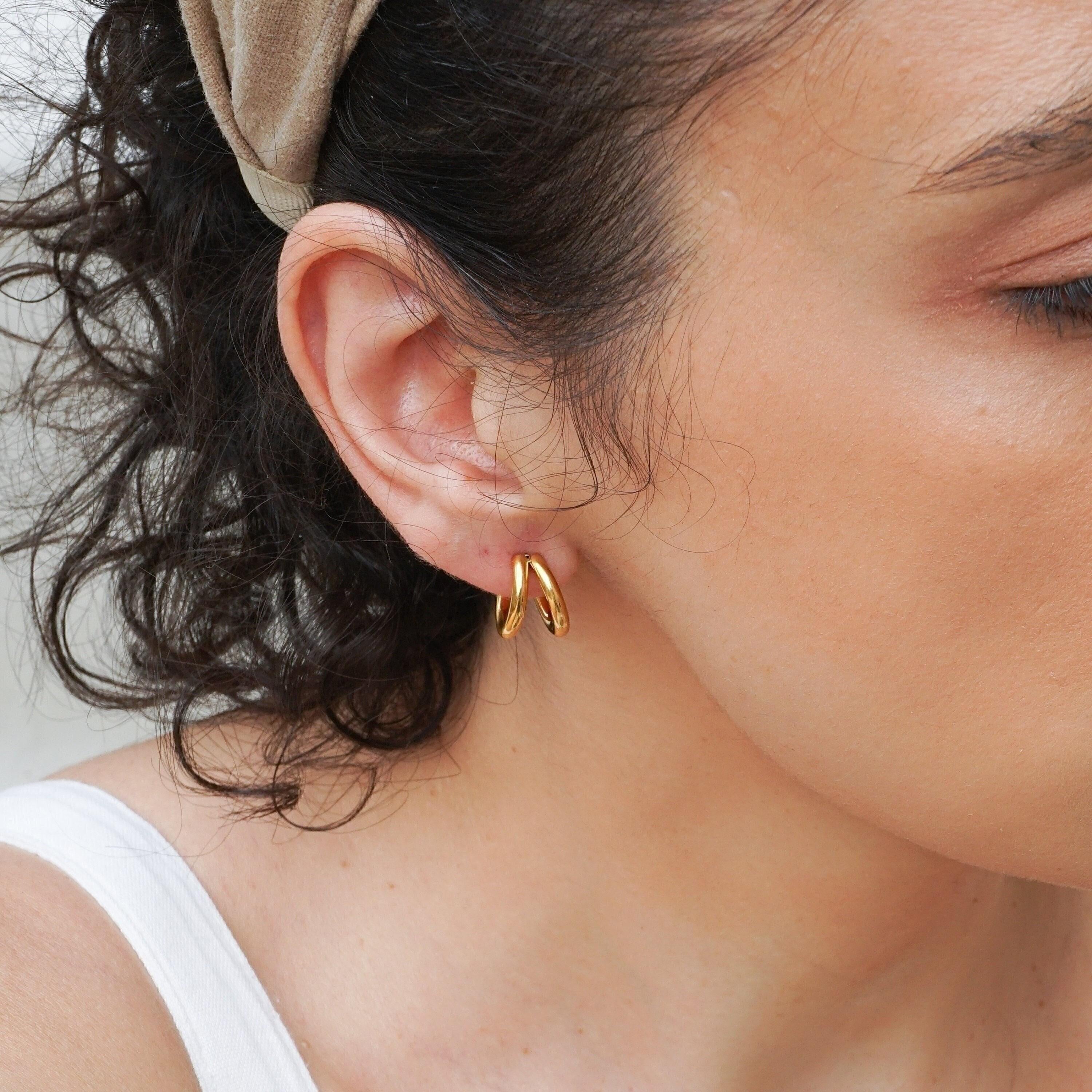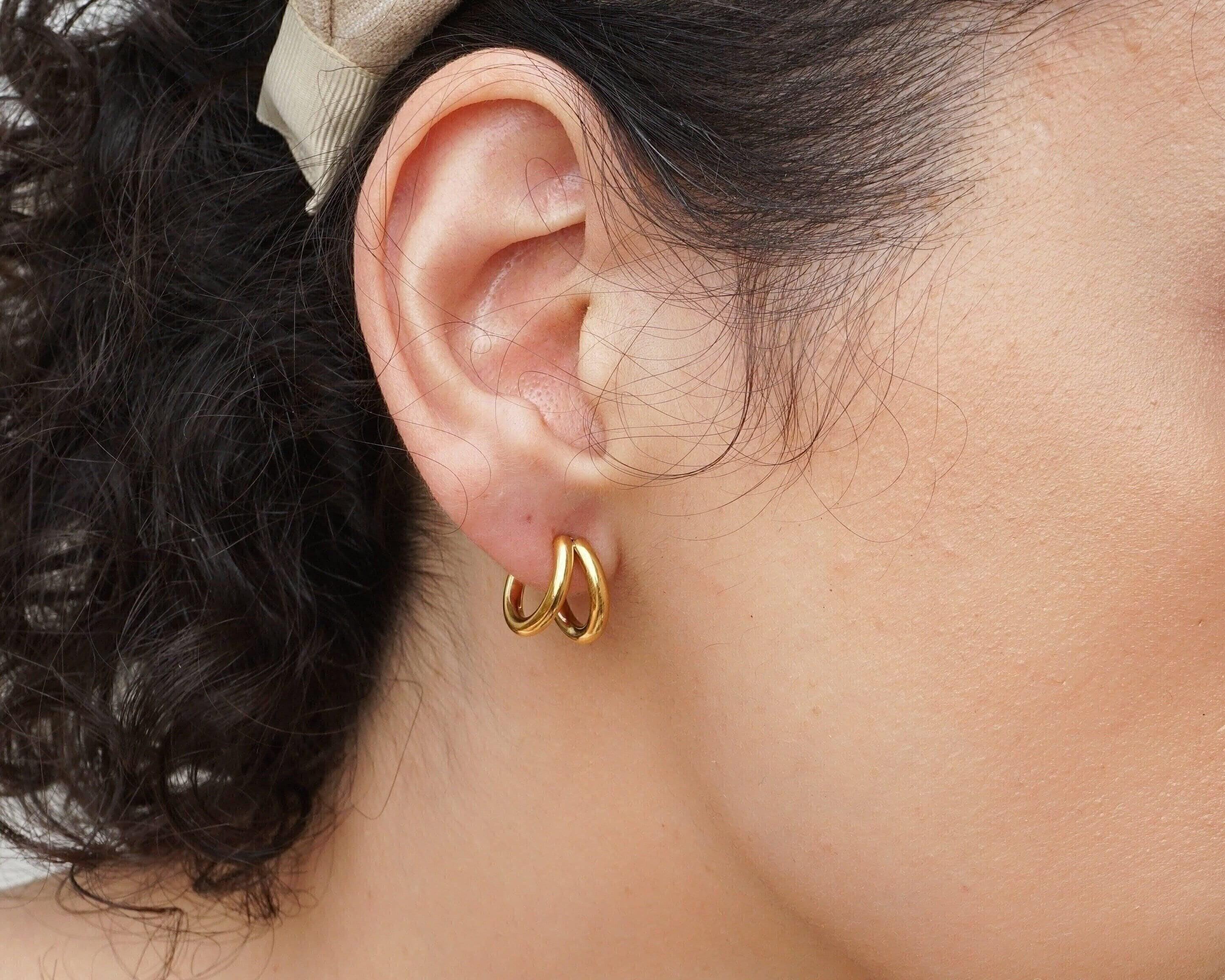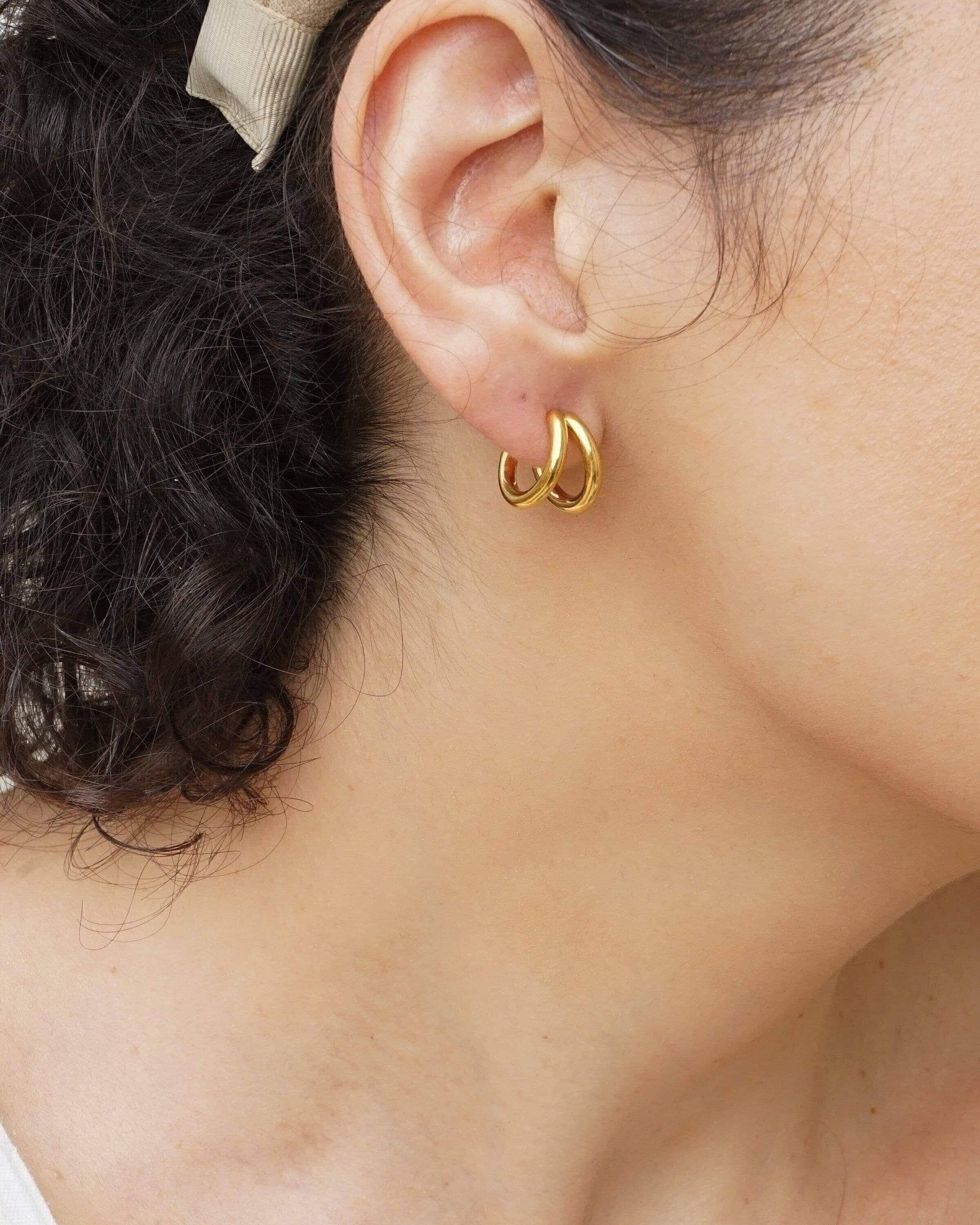 Discover the elegance of our double hoop earrings, crafted from durable stainless steel. These timeless accessories can be worn alone for a sophisticated look or stacked with other earrings for a more modern style, especially if you have multiple piercings. Available in two sizes, they seamlessly transition from day to night, enhancing a wide array of outfits.</p><br><p>Lightweight and effortless, these earrings provide comfort without pulling on your earlobe, making them ideal for all-day wear. Their unique design strikes the perfect balance between versatility and individuality, allowing you to express your personal style.