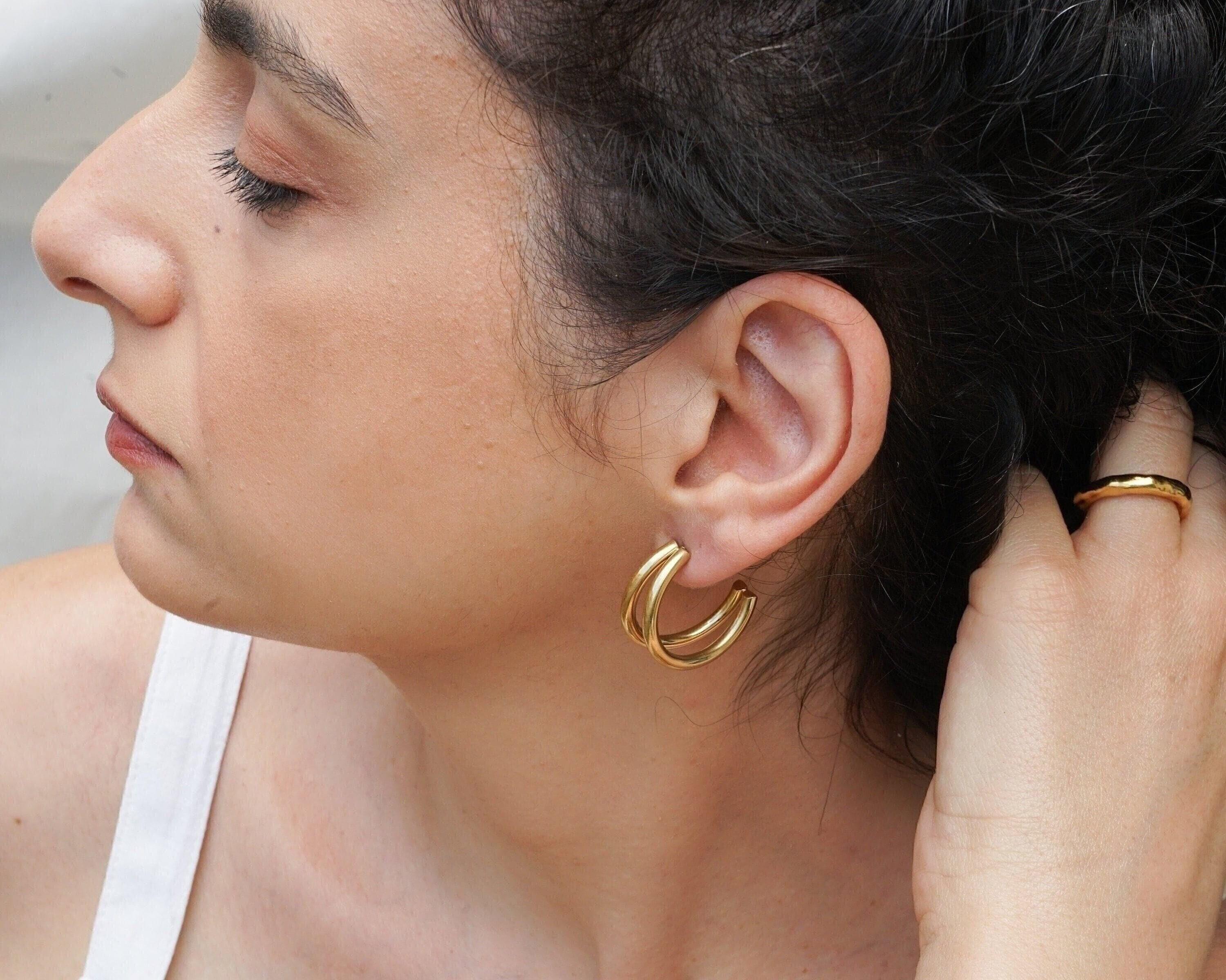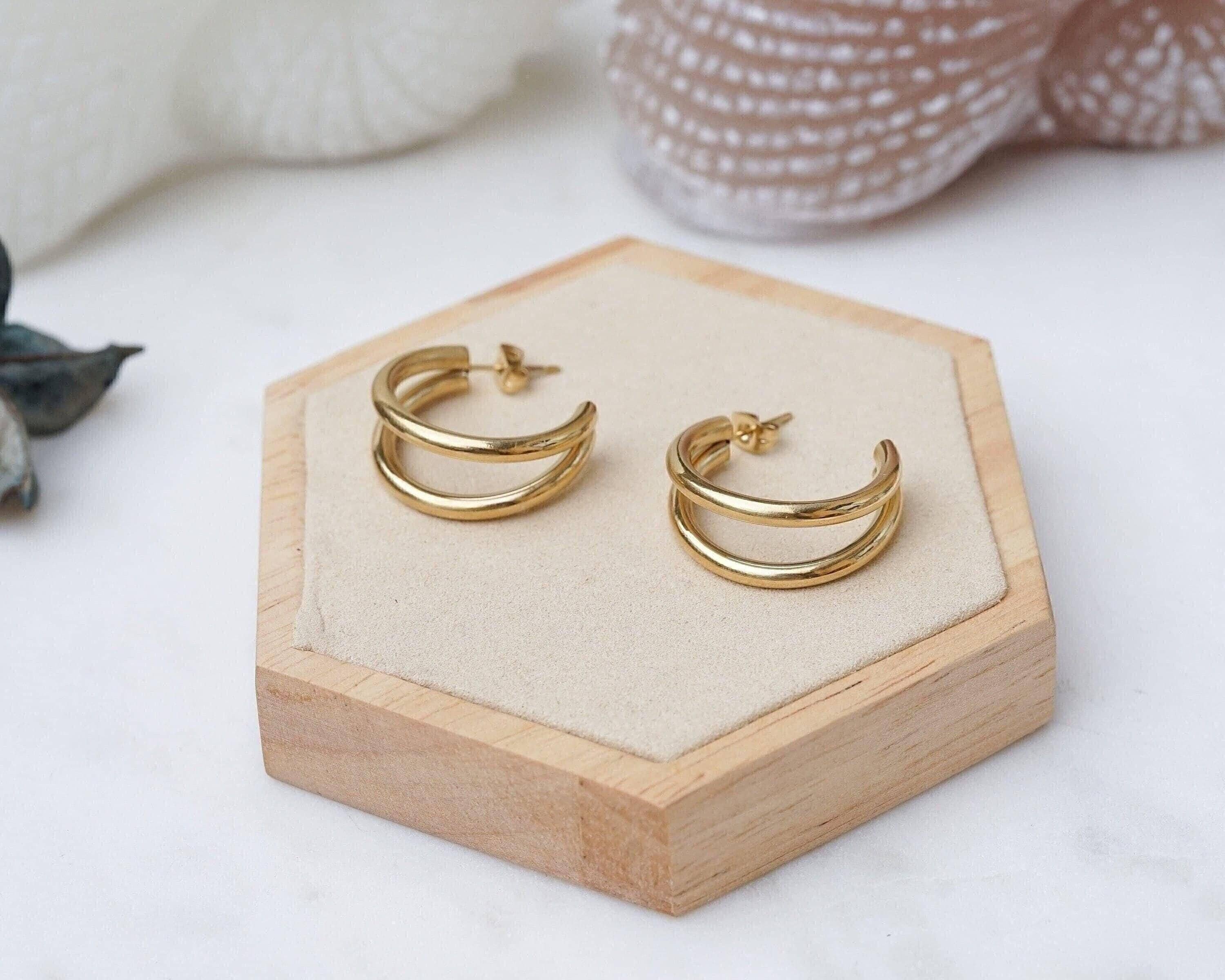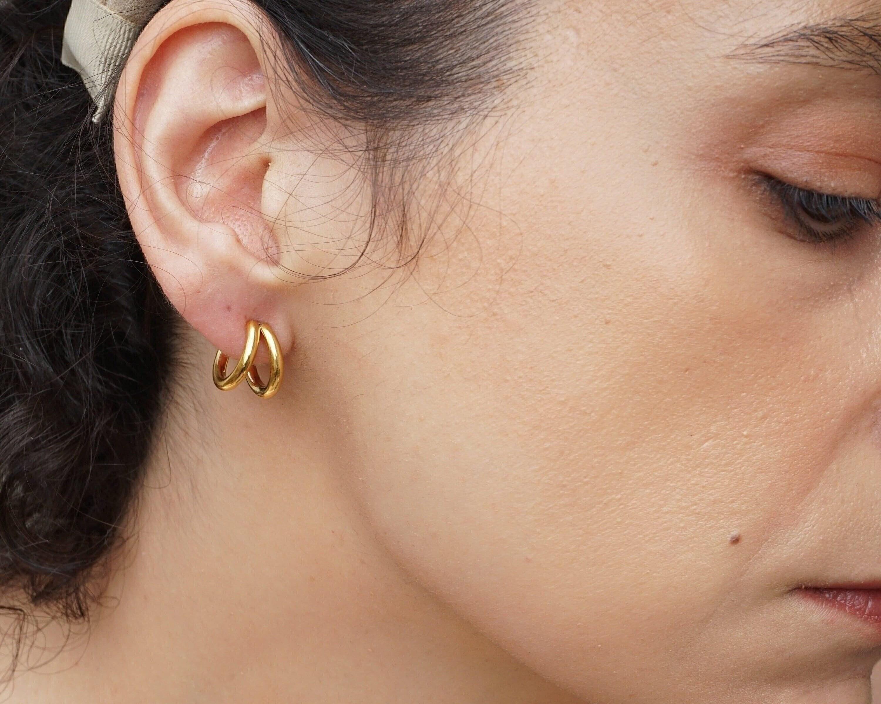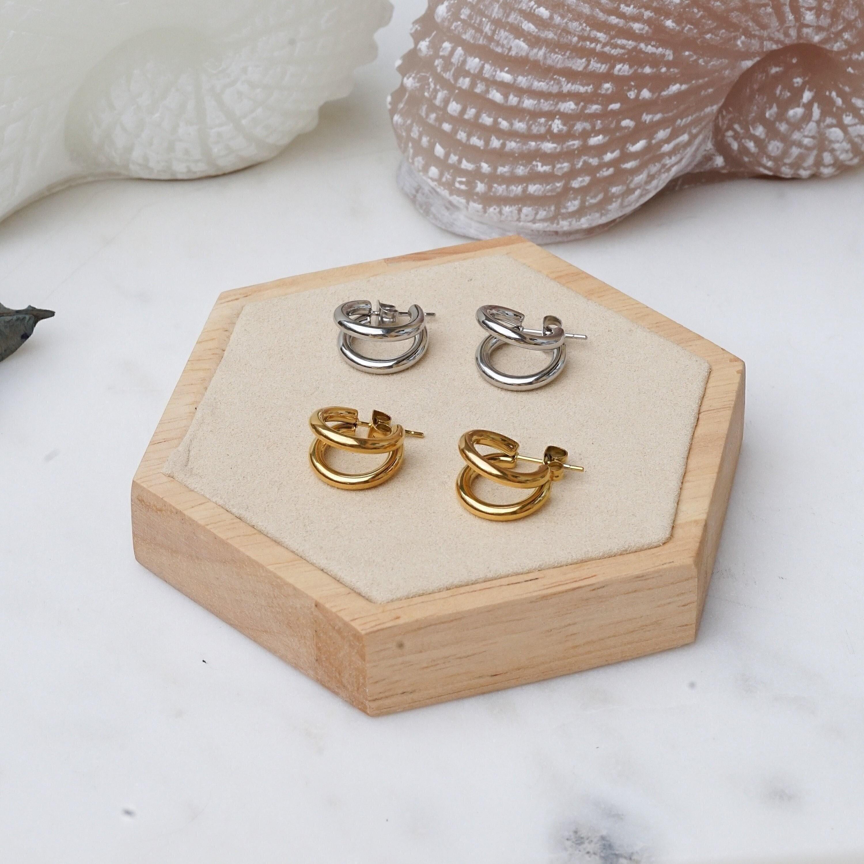 Discover the elegance of our double hoop earrings, crafted from durable stainless steel. These timeless accessories can be worn alone for a sophisticated look or stacked with other earrings for a more modern style, especially if you have multiple piercings. Available in two sizes, they seamlessly transition from day to night, enhancing a wide array of outfits.</p><br><p>Lightweight and effortless, these earrings provide comfort without pulling on your earlobe, making them ideal for all-day wear. Their unique design strikes the perfect balance between versatility and individuality, allowing you to express your personal style.