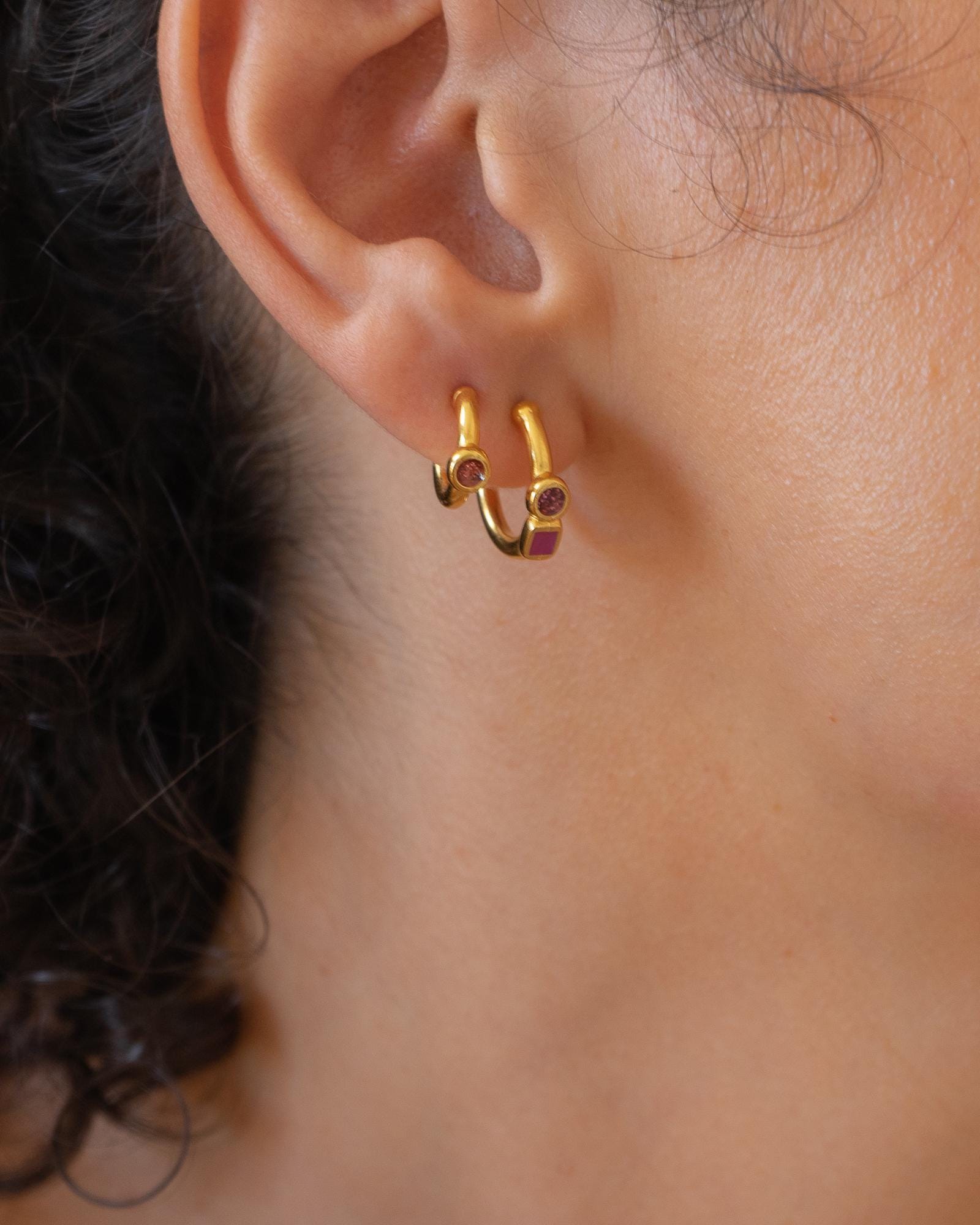These exquisite gold enamel huggie hoops are designed to elevate any outfit with a touch of elegance. Available in three captivating color options—Red Glitter, Silver Glitter, and Black—these earrings are perfect for those seeking a unique yet versatile accessory. Their lightweight design ensures effortless wear without pulling on your earlobes, making them an ideal choice for both casual and formal occasions.
