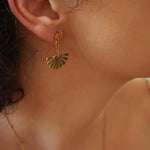 p>Introducing the exquisite Gold Flower Dangling Earrings and Studs, a stunning addition to your jewelry collection. These earrings feature intricately designed gold-plated stainless steel push-back pins that ensure both durability and comfort, allowing you to wear them with confidence throughout the day. The focal point of these earrings is the beautiful gold dangling flower, which gracefully sways with your movements, adding a touch of elegance to any outfit.</p><br><p>With measurements of 3 cm by 2.1 cm (1.18 x 0.82 in), these earrings strike the perfect balance between bold and subtle, making them suitable for both everyday wear and special occasions. The modern design embodies sophistication, effortlessly enhancing your style from a casual look to a more polished ensemble. </p><br><p>Perfect for a night out or a chic day at the office, these earrings are versatile enough to complement various outfits, from a simple blouse to an elegant dress. Treat yourself or gift them to a loved one who appreciates fine jewelry. Elevate your accessory game with the Gold Flower Dangling Earrings and Studs, and let their captivating charm shine.</p>