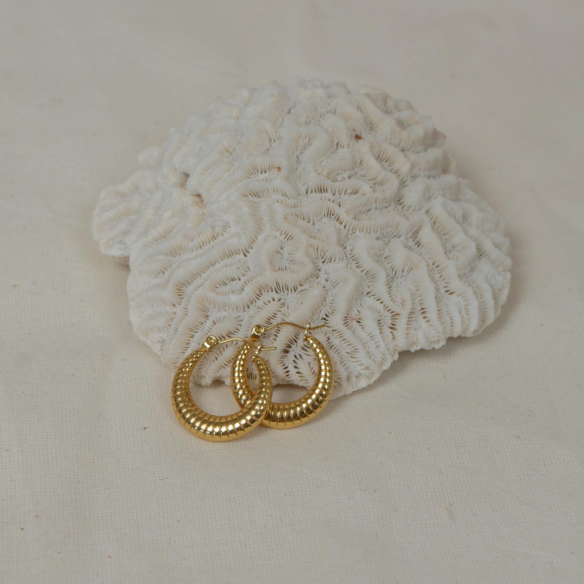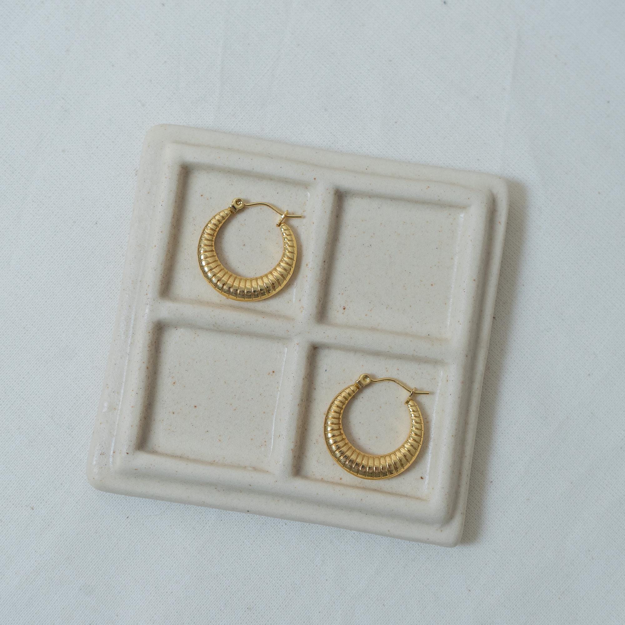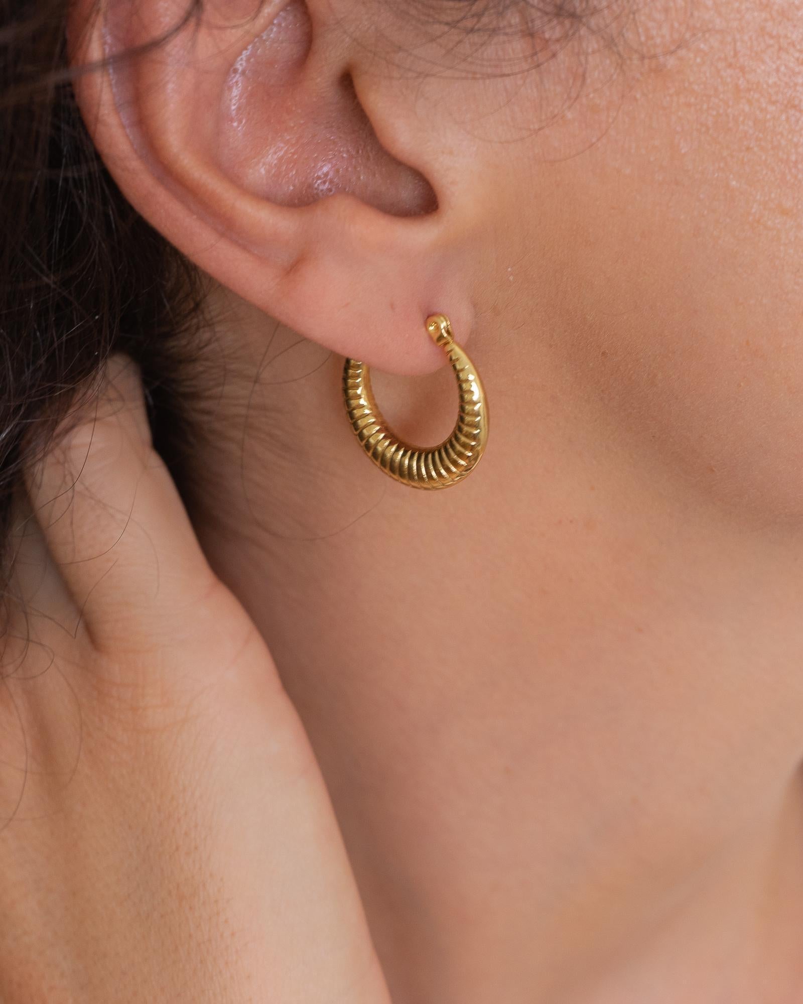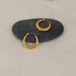 These are lovely gold stainless steel Hoop Earrings with Stripes.