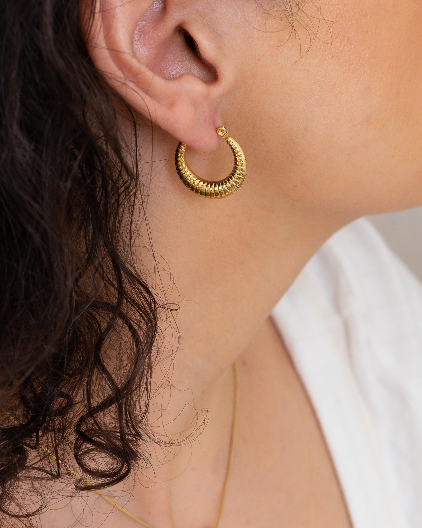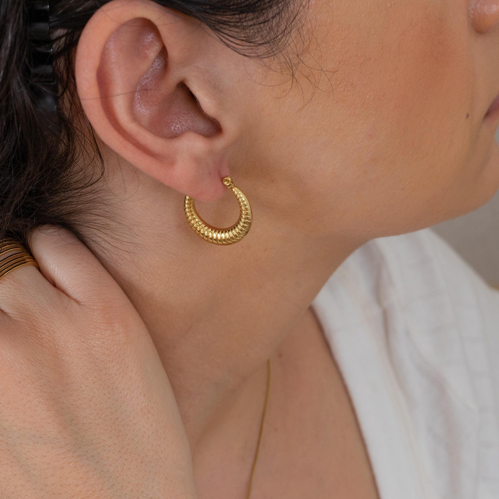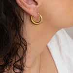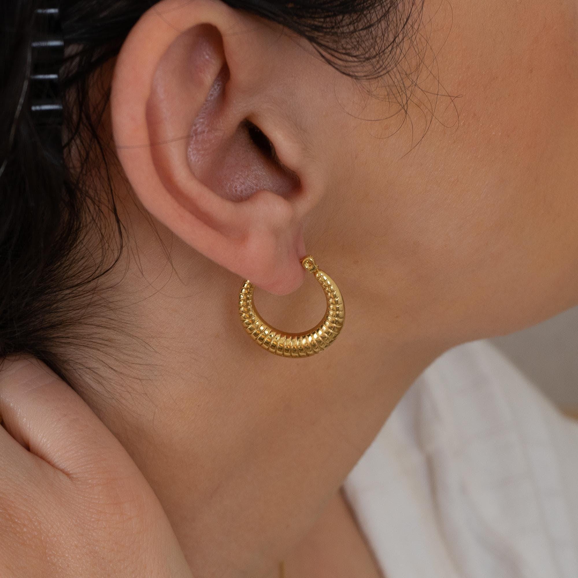 Gold Hoop Earrings with Stripes