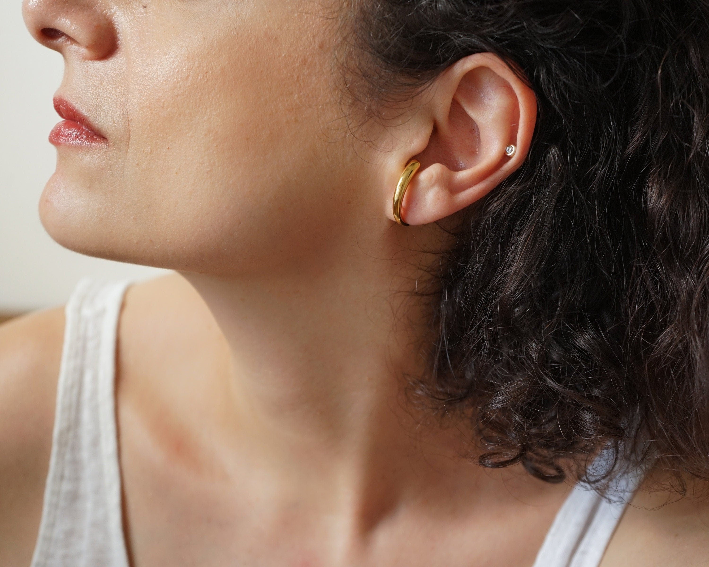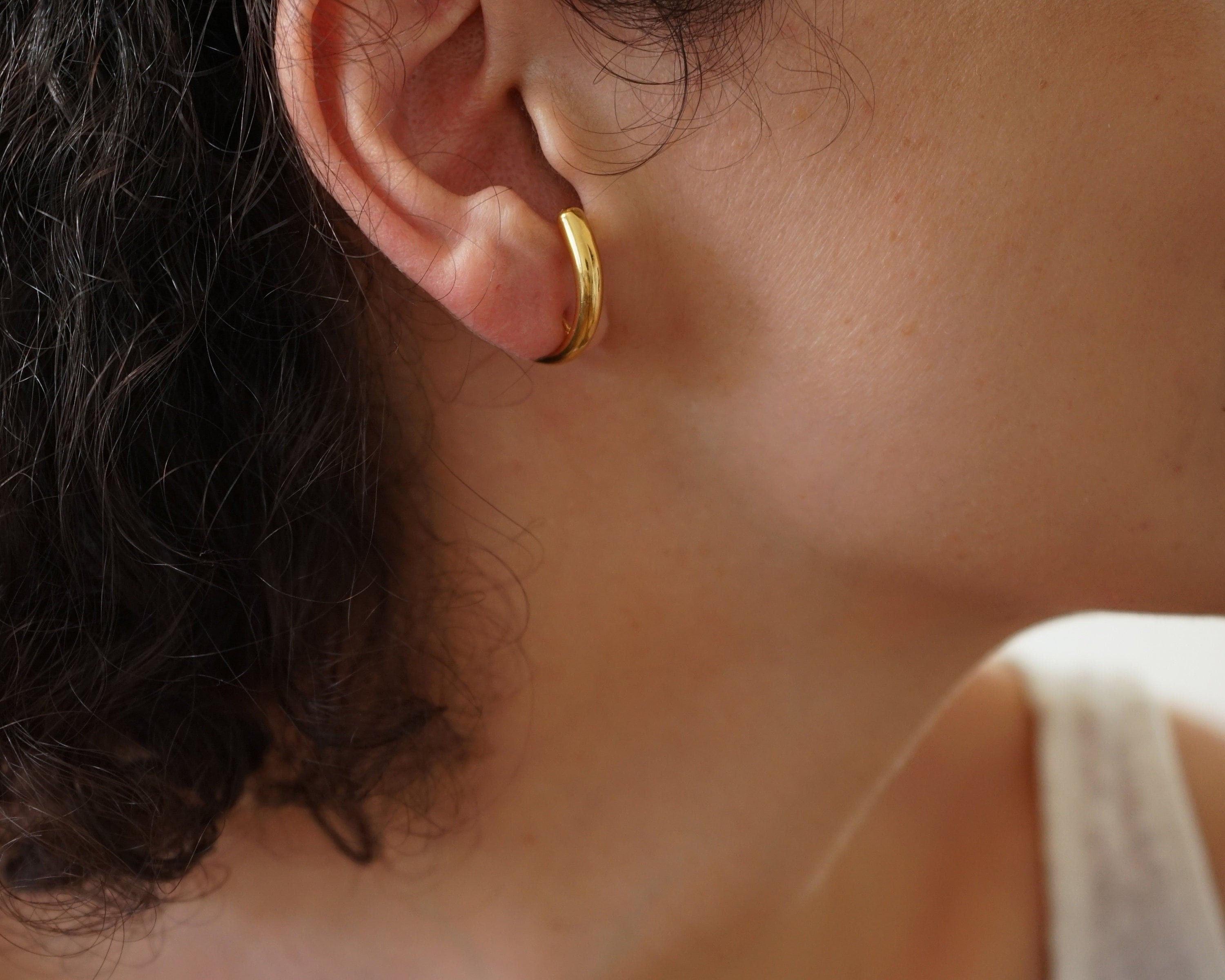 Gold Long Lobe Hugger Earrings
