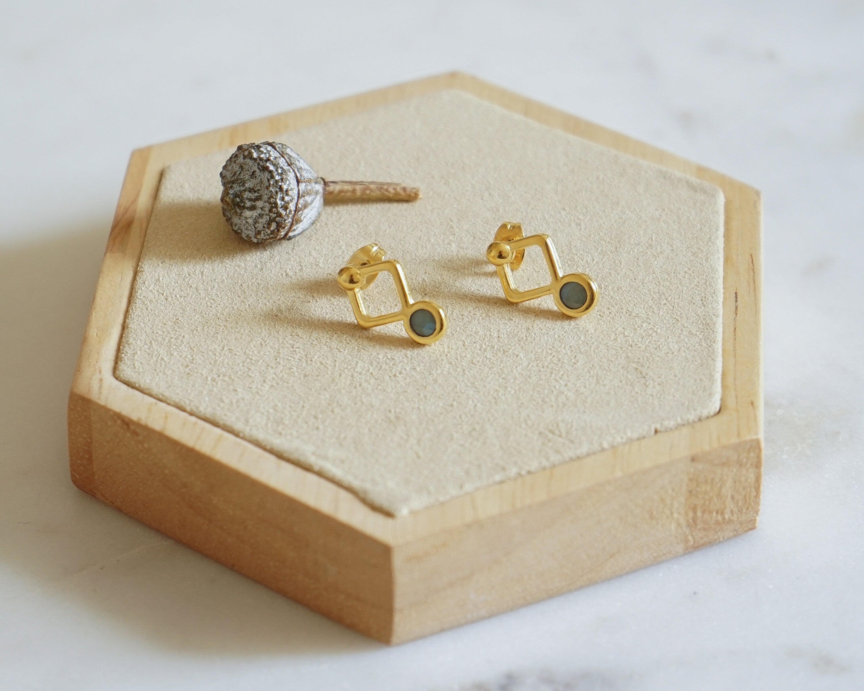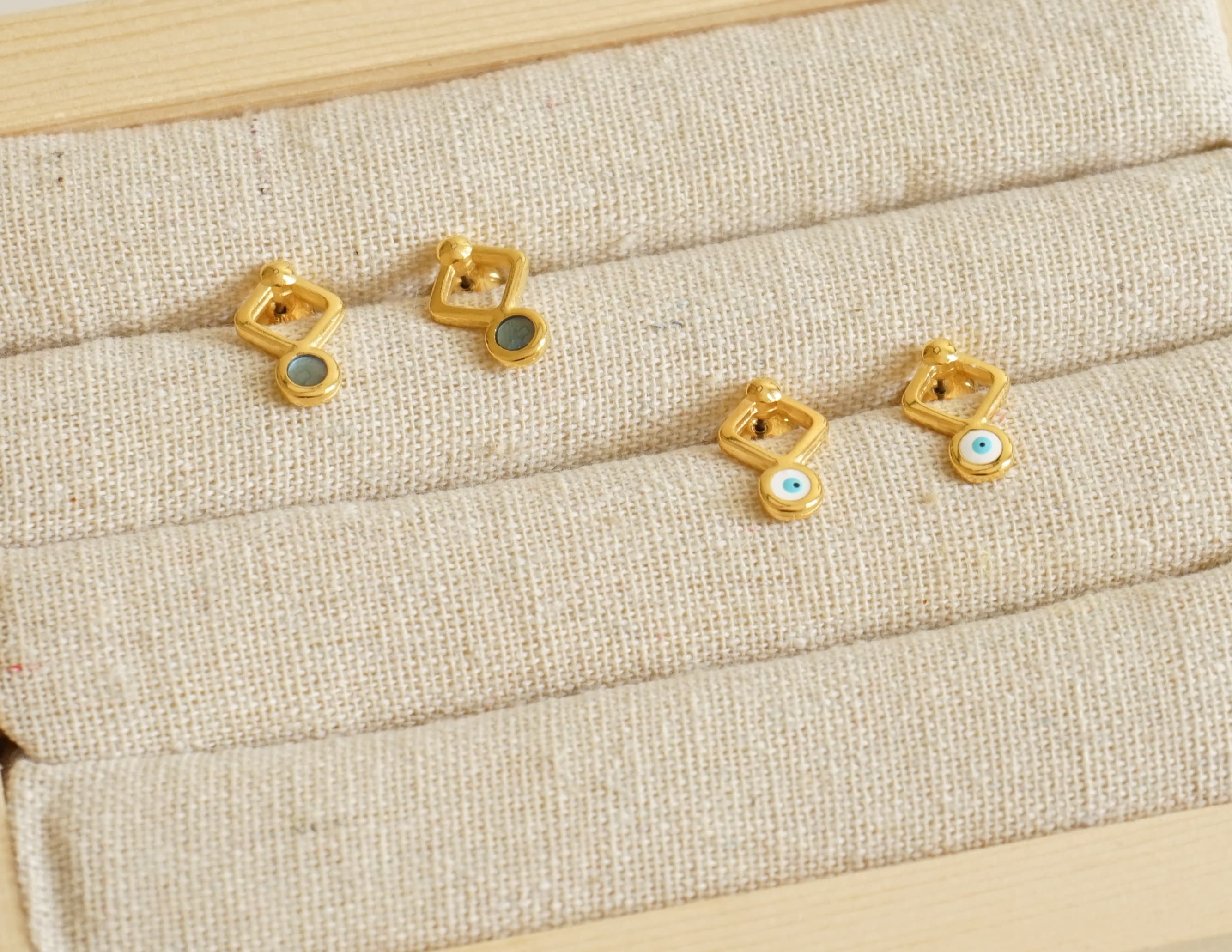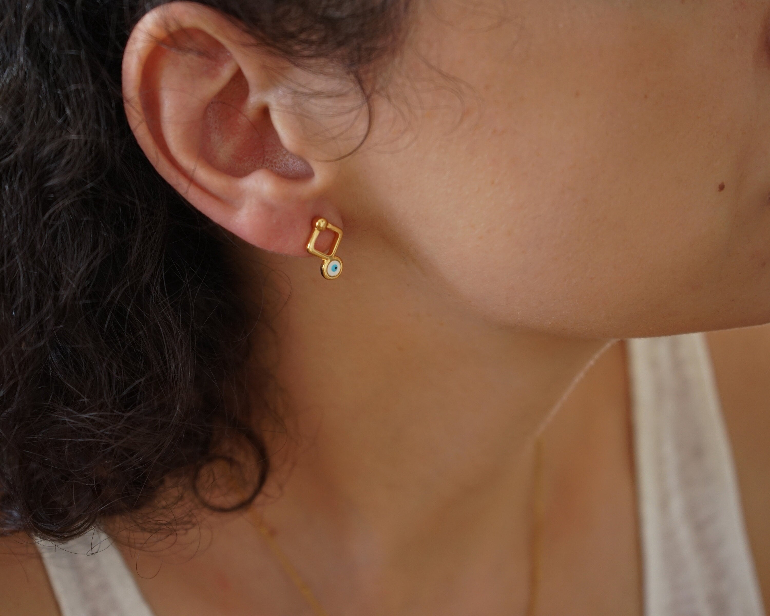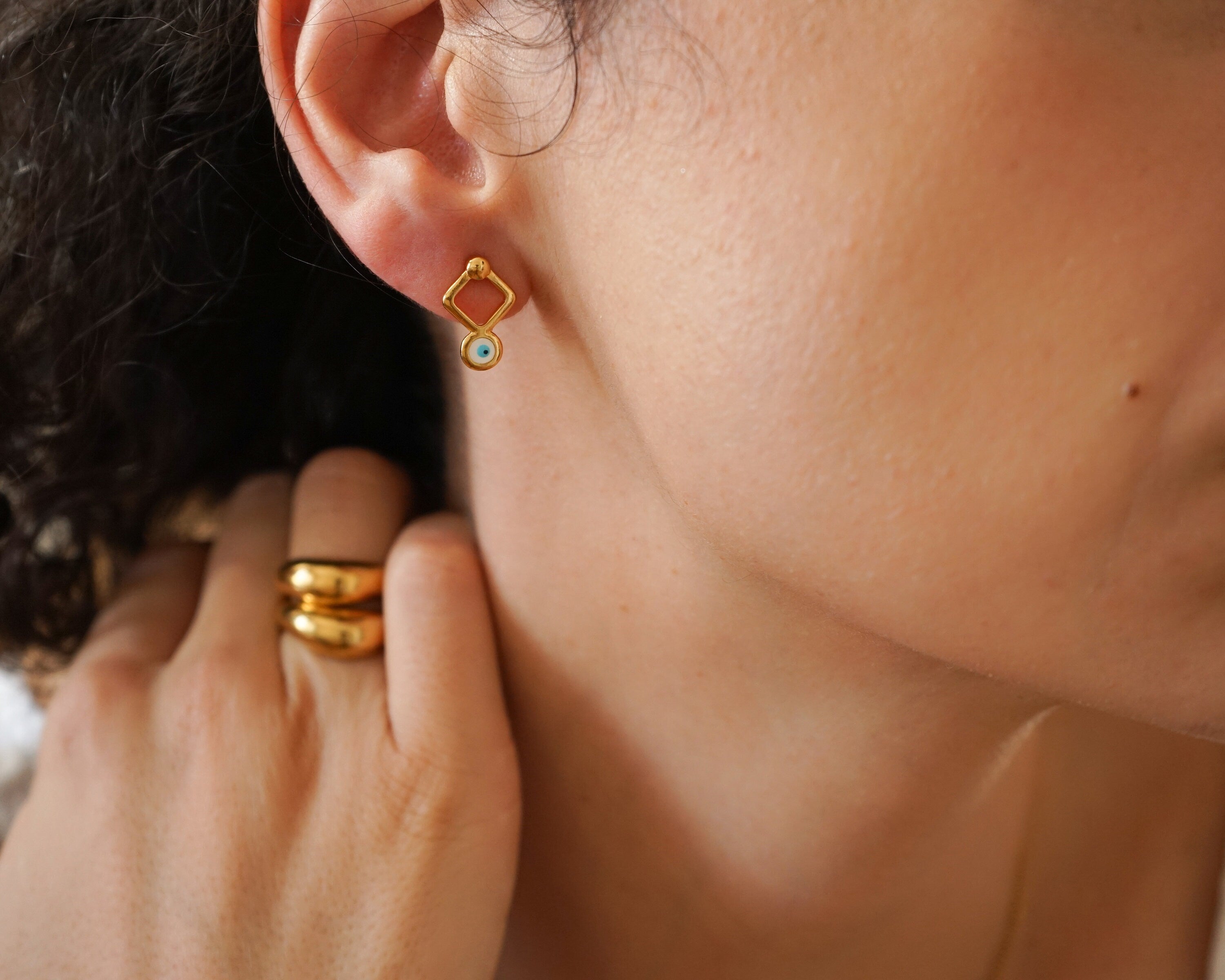 Gold Plated Evil Eye Rhombus Studs - Small Dainty Celestial Earrings