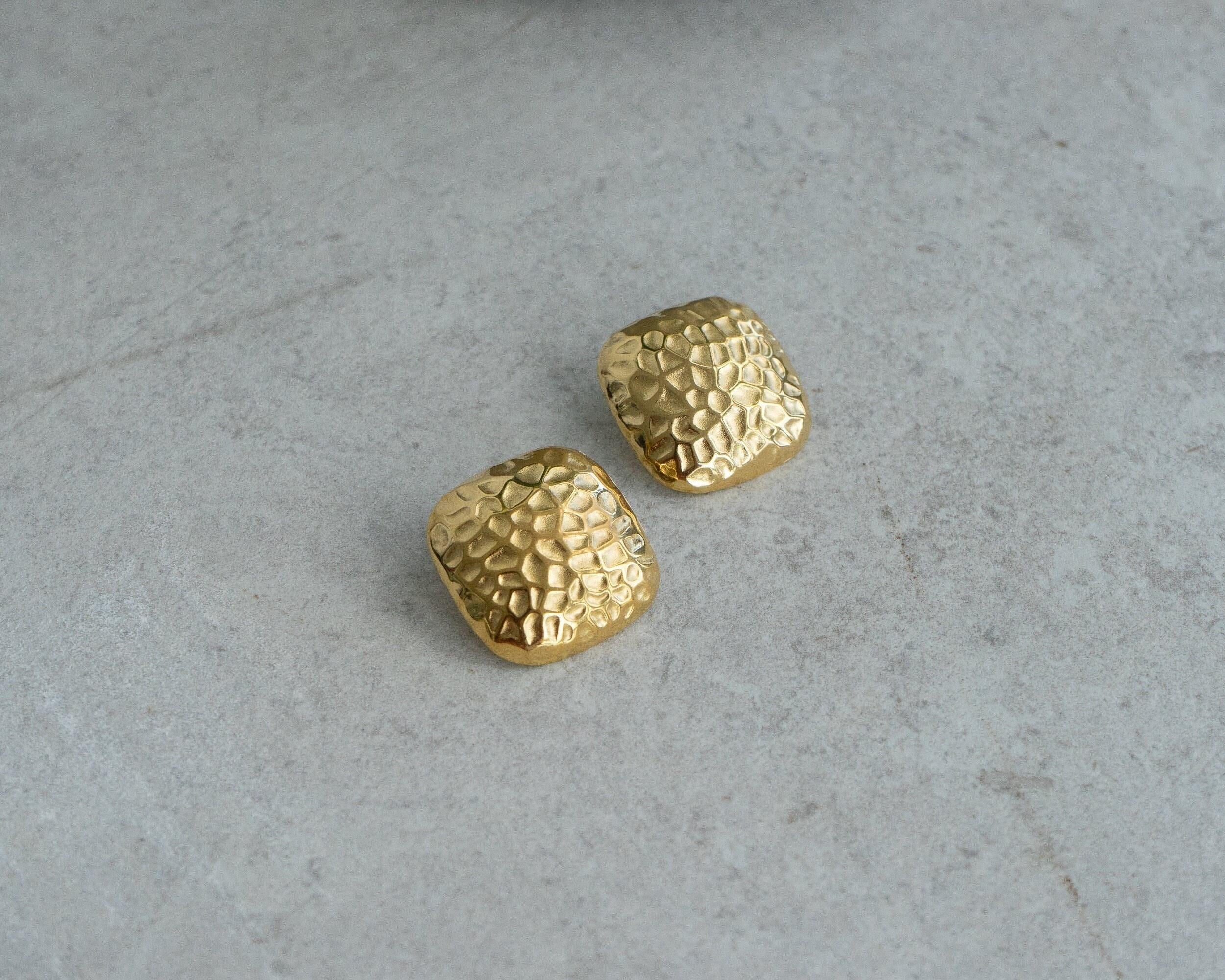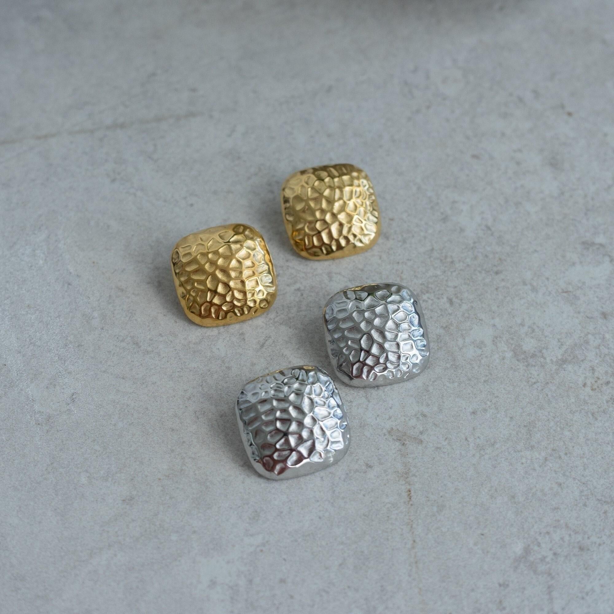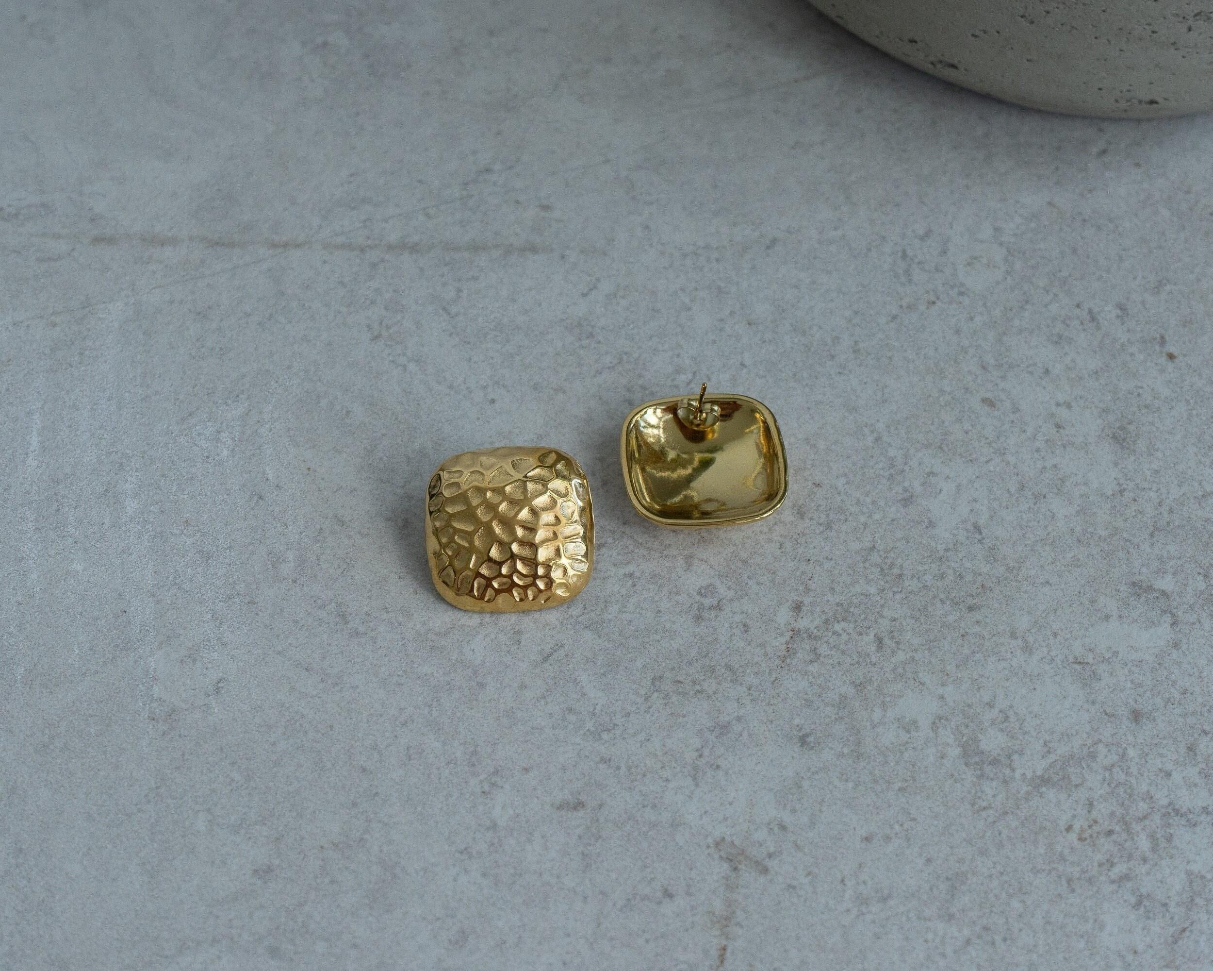 Introducing our large hammered square stud earrings, designed to be a striking accessory for any outfit. These earrings feature a unique hammered texture that adds depth and character, making them perfect for both everyday wear and special occasions. Crafted for durability and waterproof protection, they can withstand daily activities while maintaining their polished look.