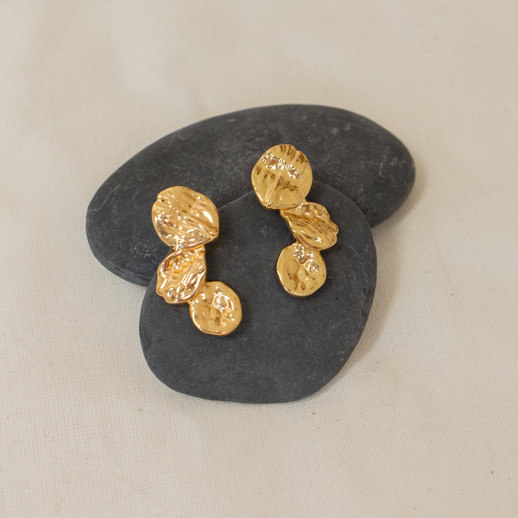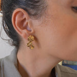 Long Gold Wavy Stud Earrings