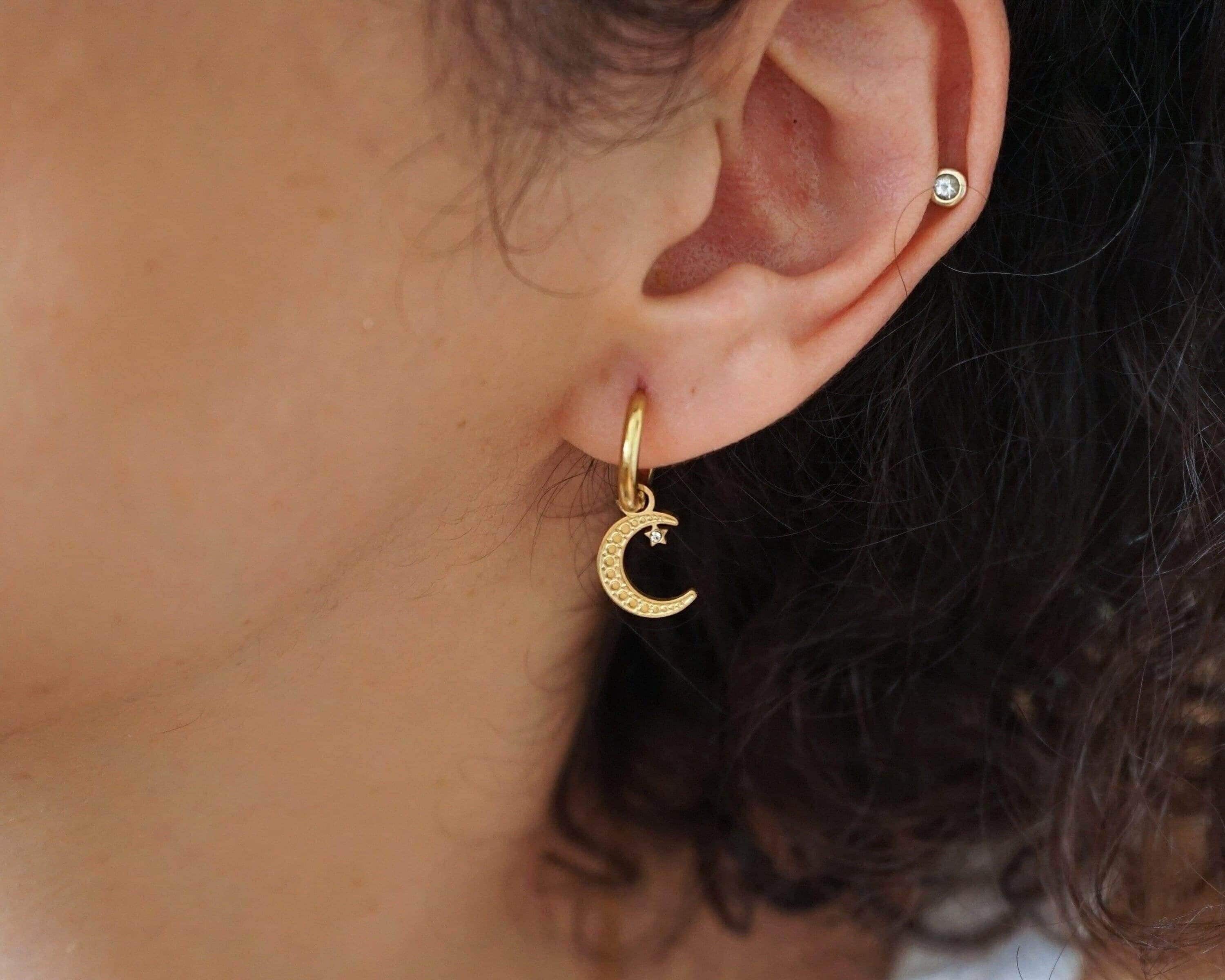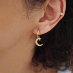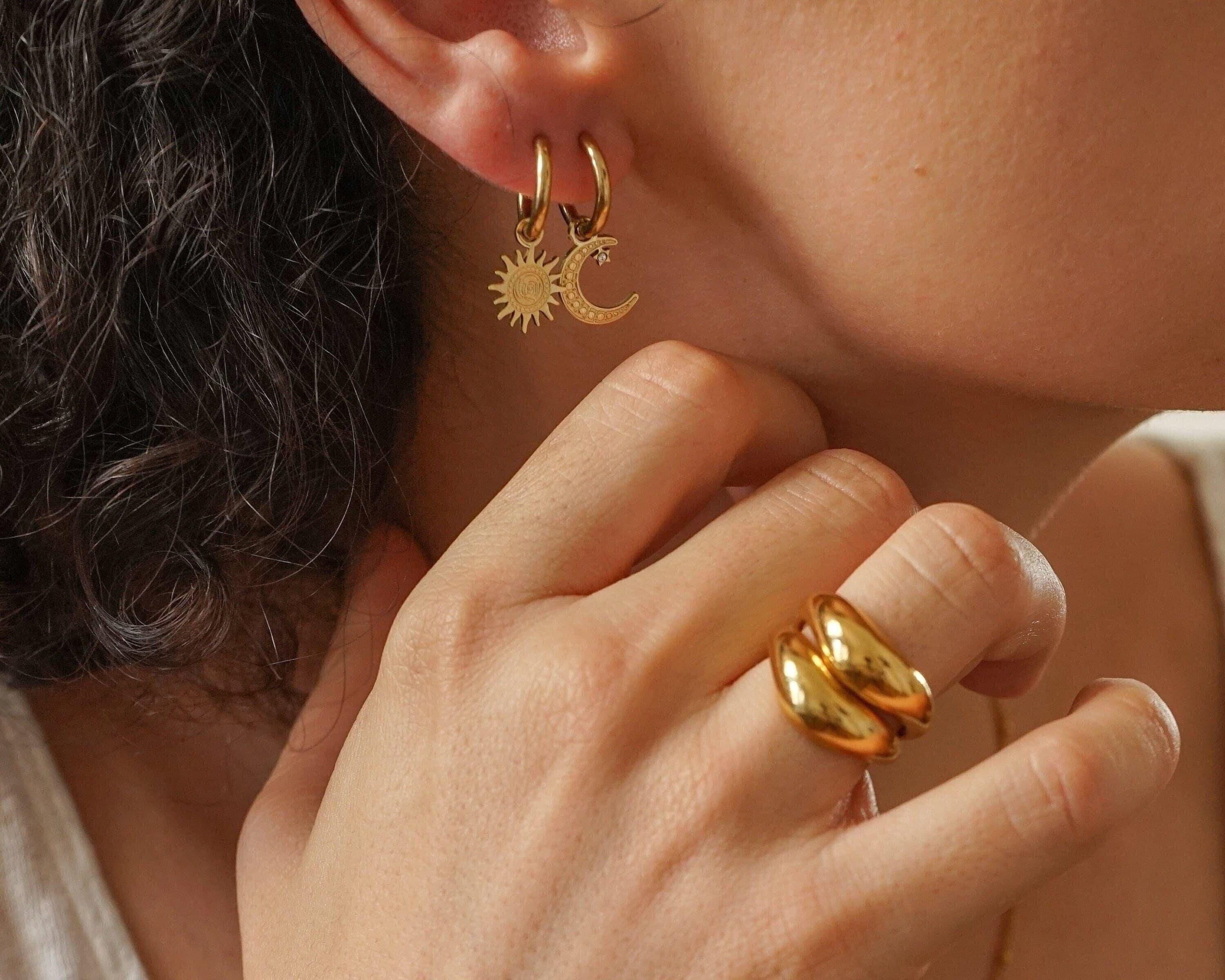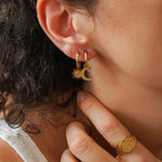Crafted from tarnish-free stainless steel, these mini celestial hoops are perfect for seamlessly transitioning from day to night. Their warm gold finish adds a timeless quality to your ensemble, making them a beautiful blend of classic and modern. Designed with comfort in mind, you can wear these earrings all day without a worry.