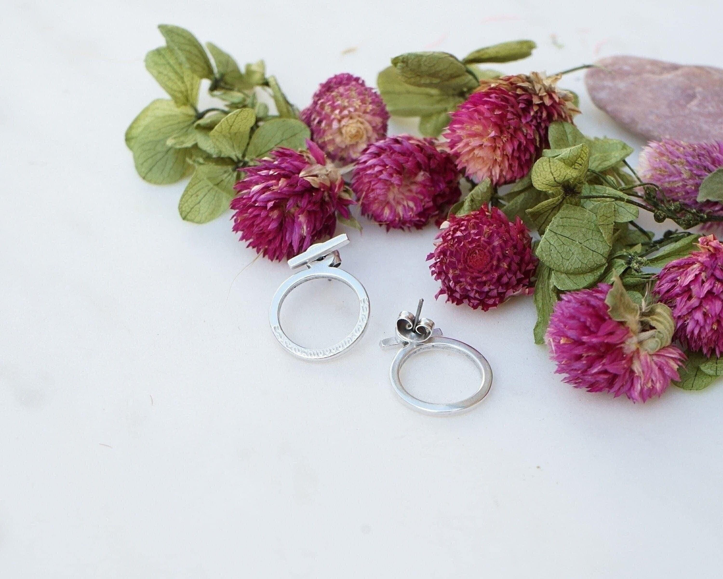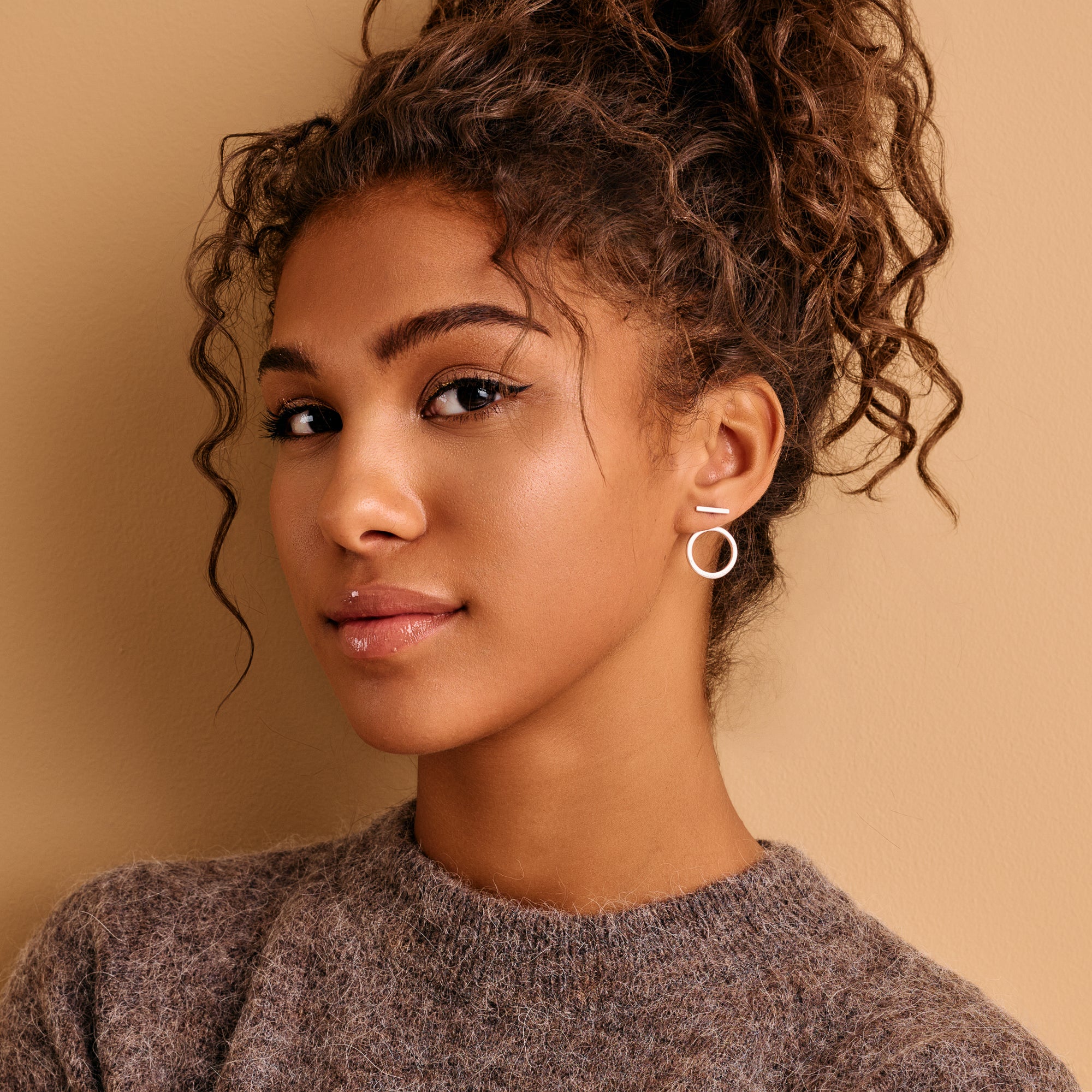 Discover these original and stylish hollow round ear jackets, an essential addition to your jewelry collection. Versatile in design, you can wear them as ear jackets or as unique wavy hammered square stud earrings. These dainty pieces offer a laid-back elegance and are perfect for adding a distinctive touch to your everyday look.