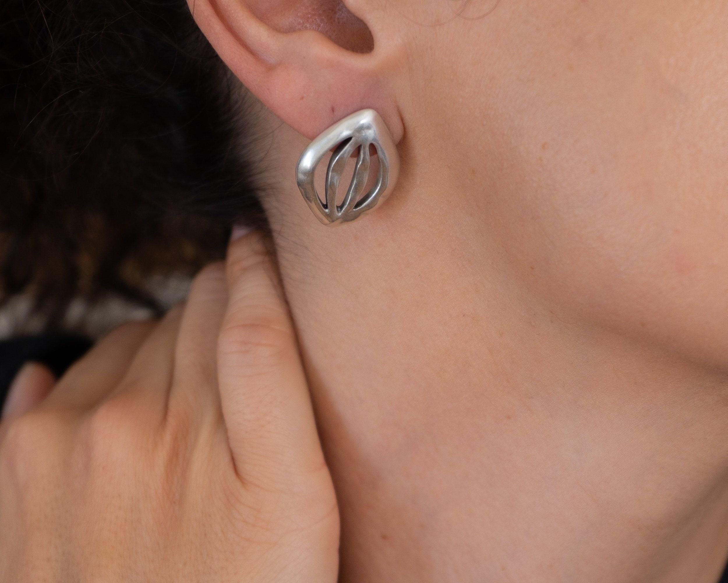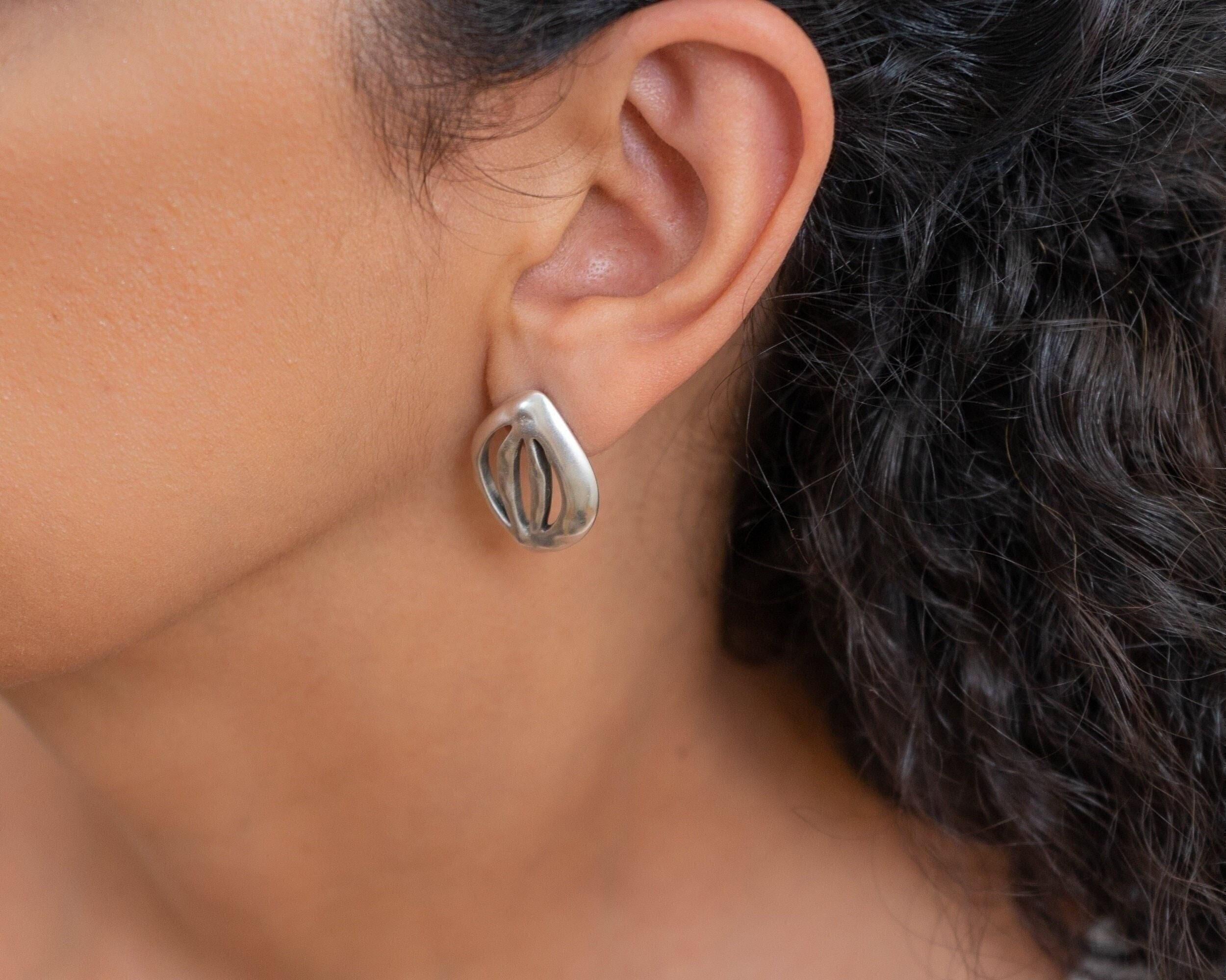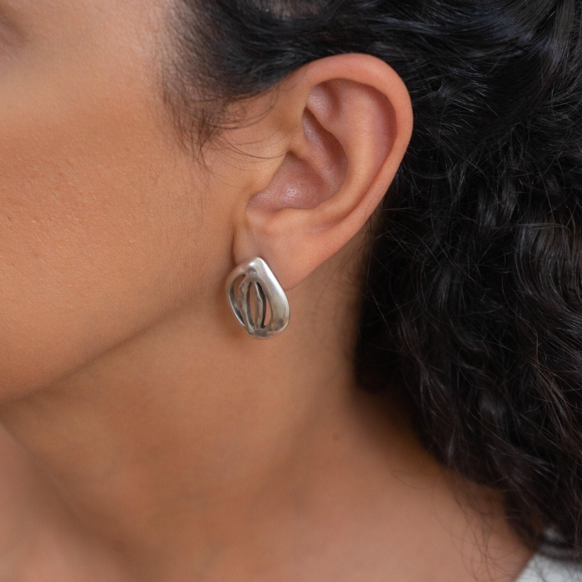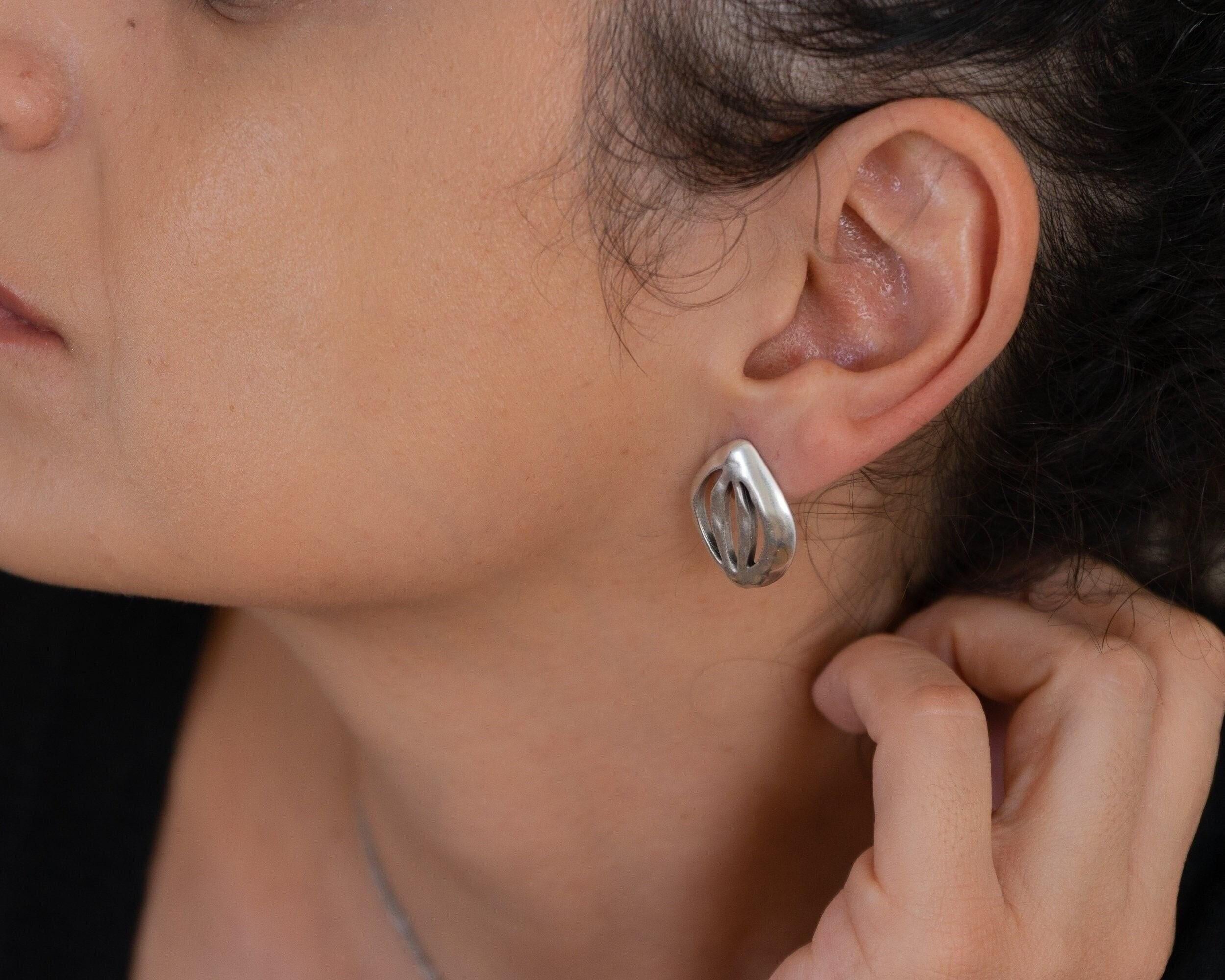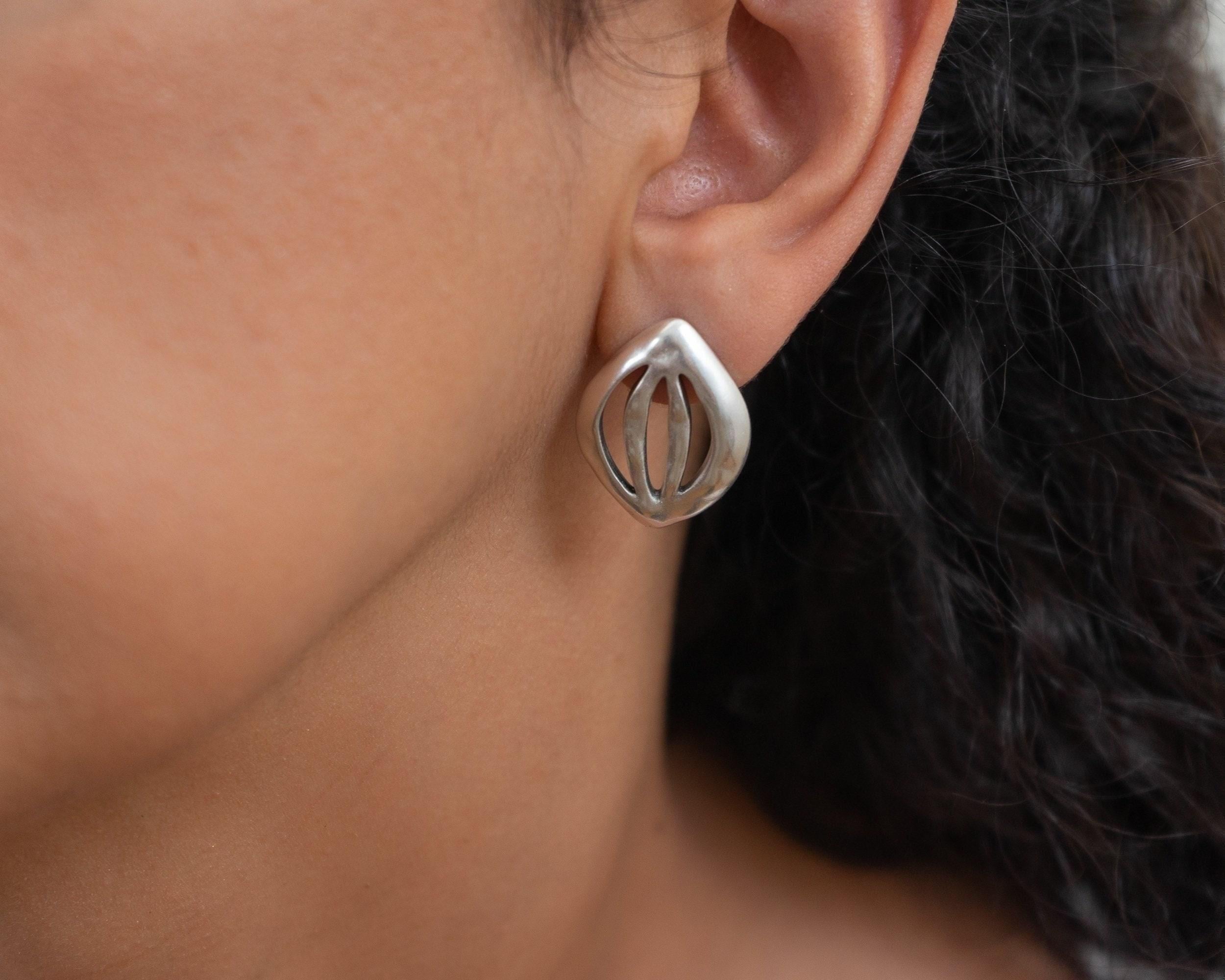 Discover these elegant silver-plated push-back earrings featuring a unique organic leaf design. With their large statement silhouette, these earrings are perfect for enhancing both your everyday and special occasion outfits. Lightweight and effortlessly comfortable, they won’t tug on your earlobes, making them a versatile addition to your jewelry collection.