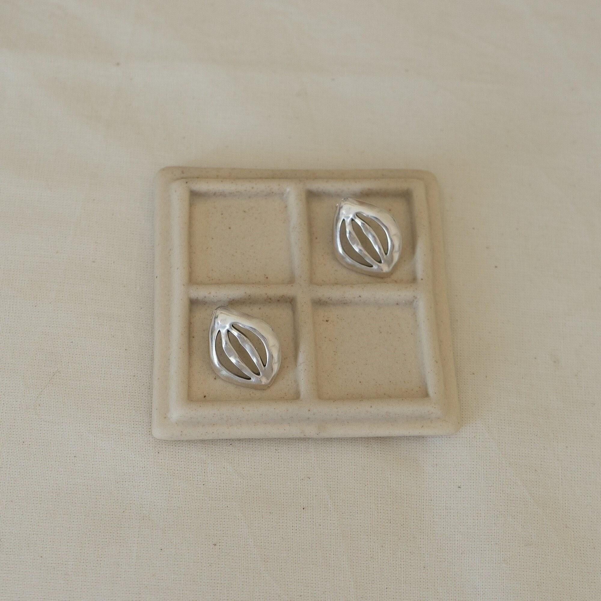 Silver Organic Leaf Stud Earrings