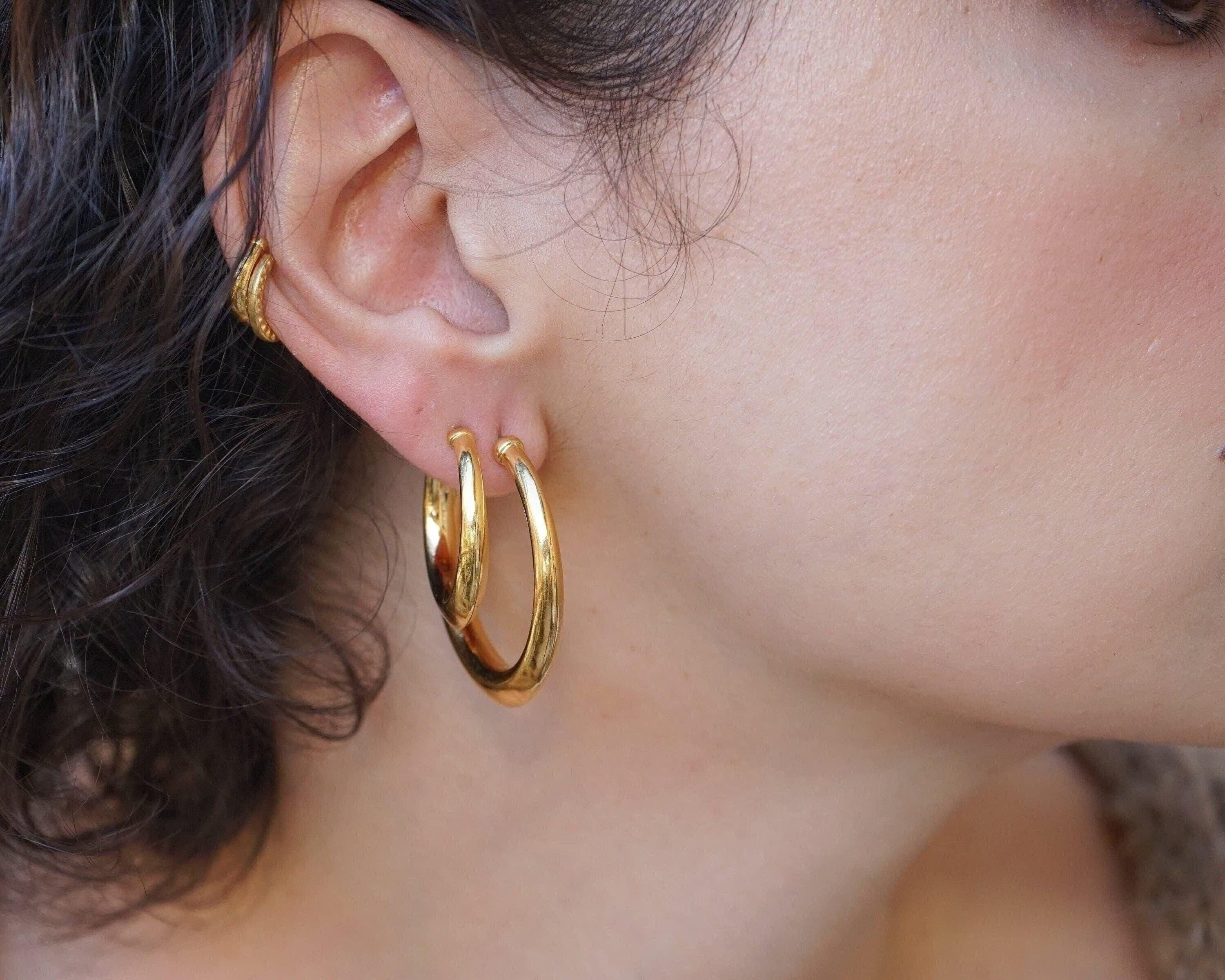 Gold Bold Narrow Hoop Earrings