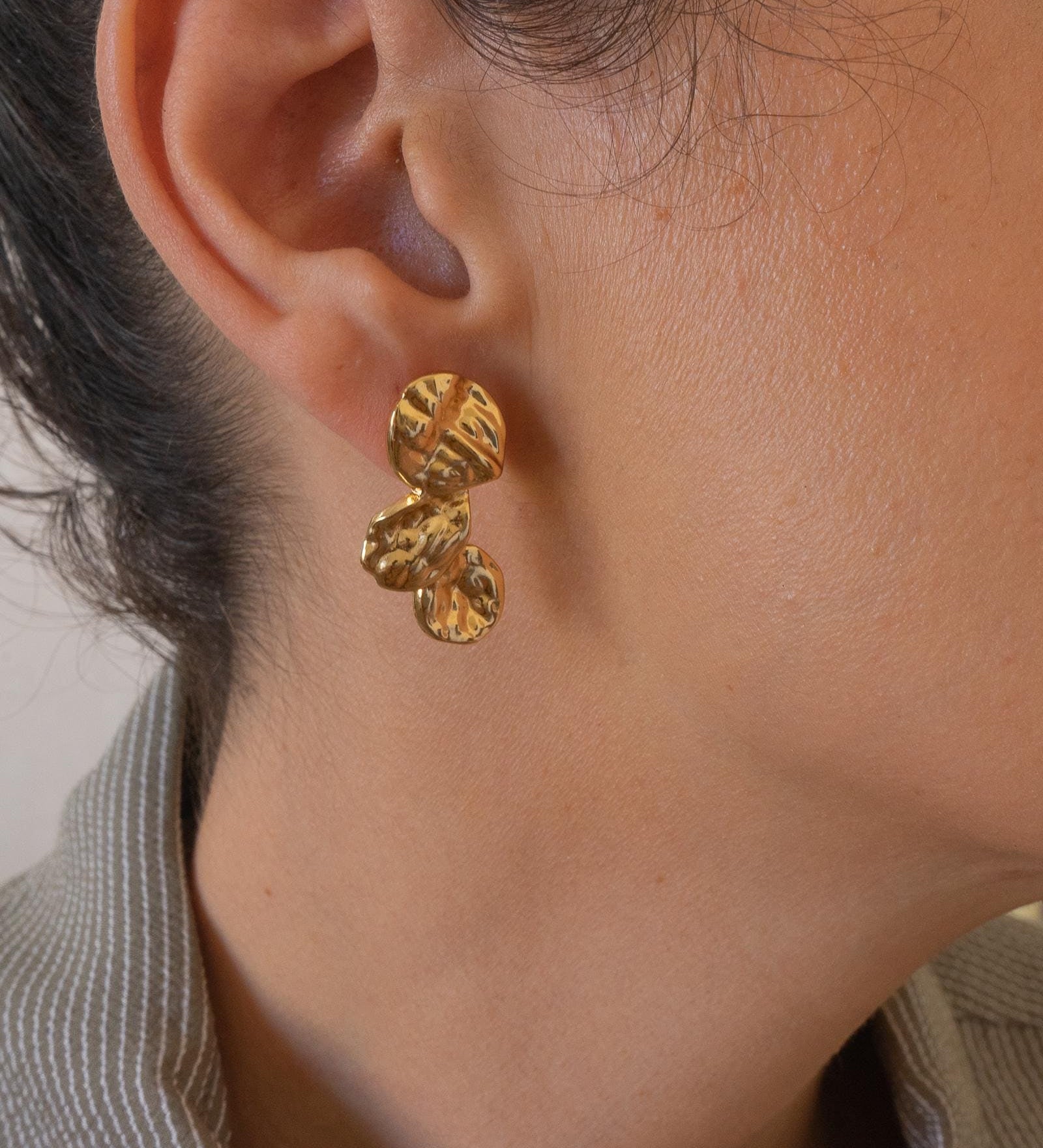 Gold Asymmetric Hammered Stud Earrings