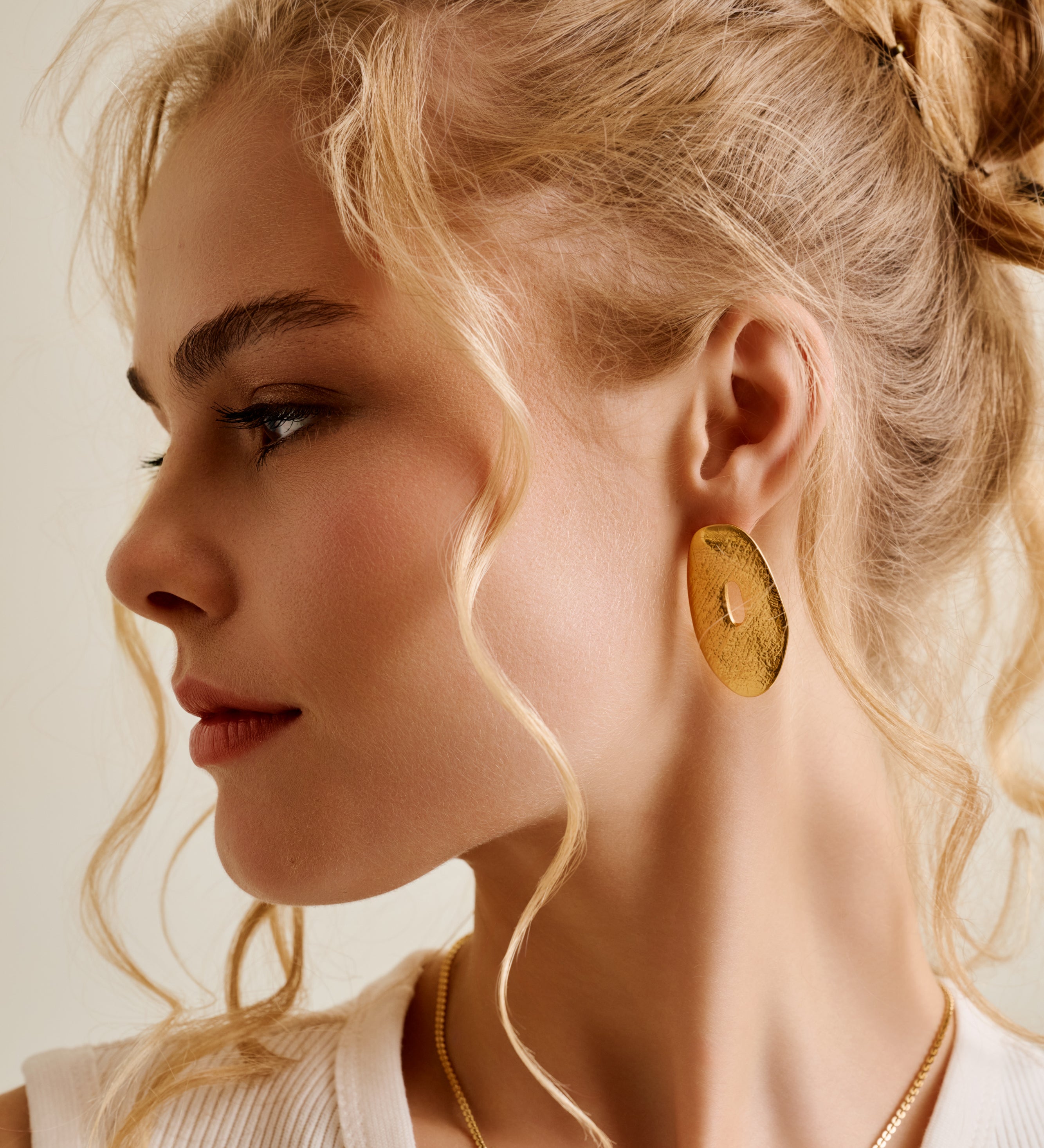 Long Gold Wavy Stud Earrings