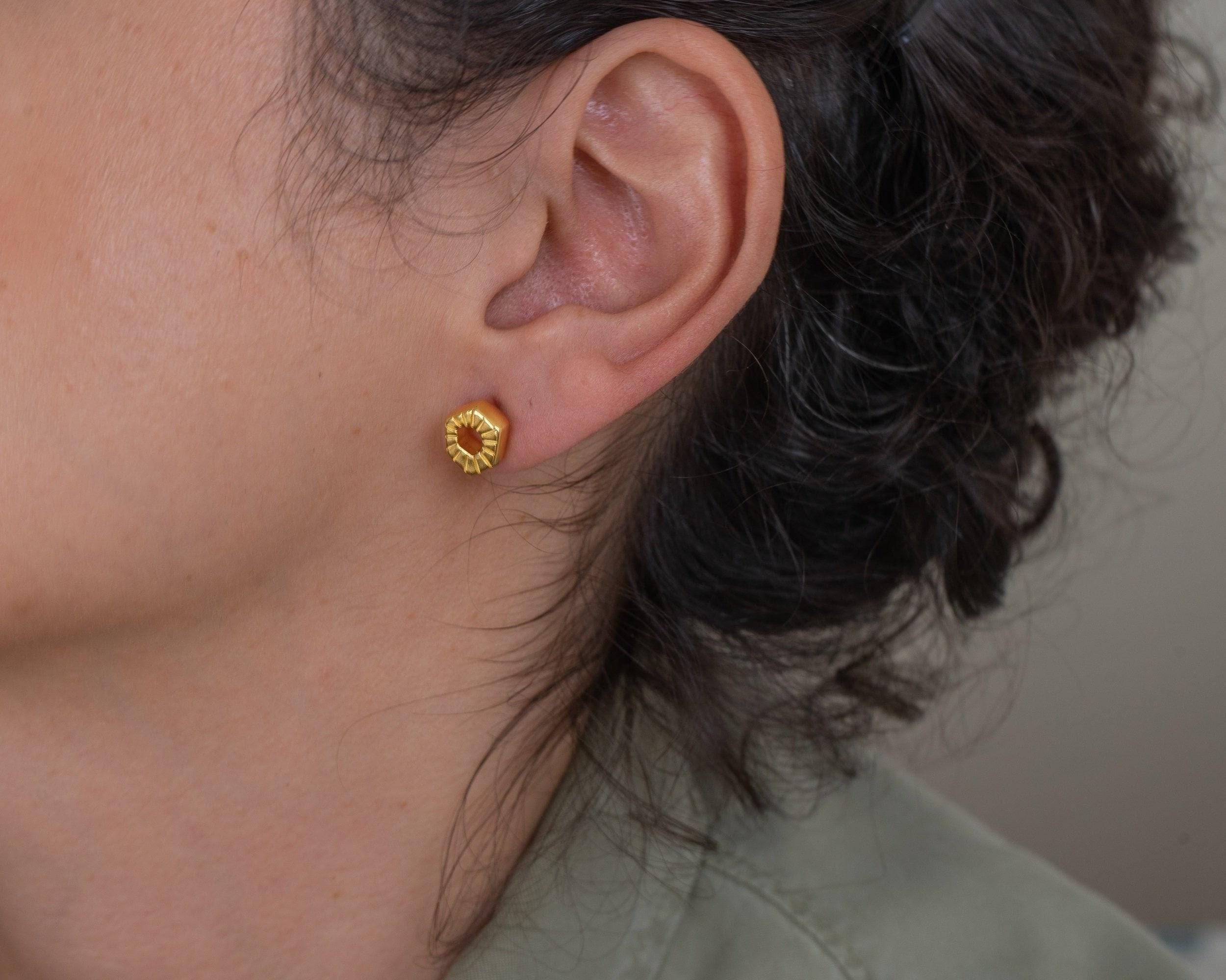 Sun Moon Stars Large Silver Disc Stud Earrings