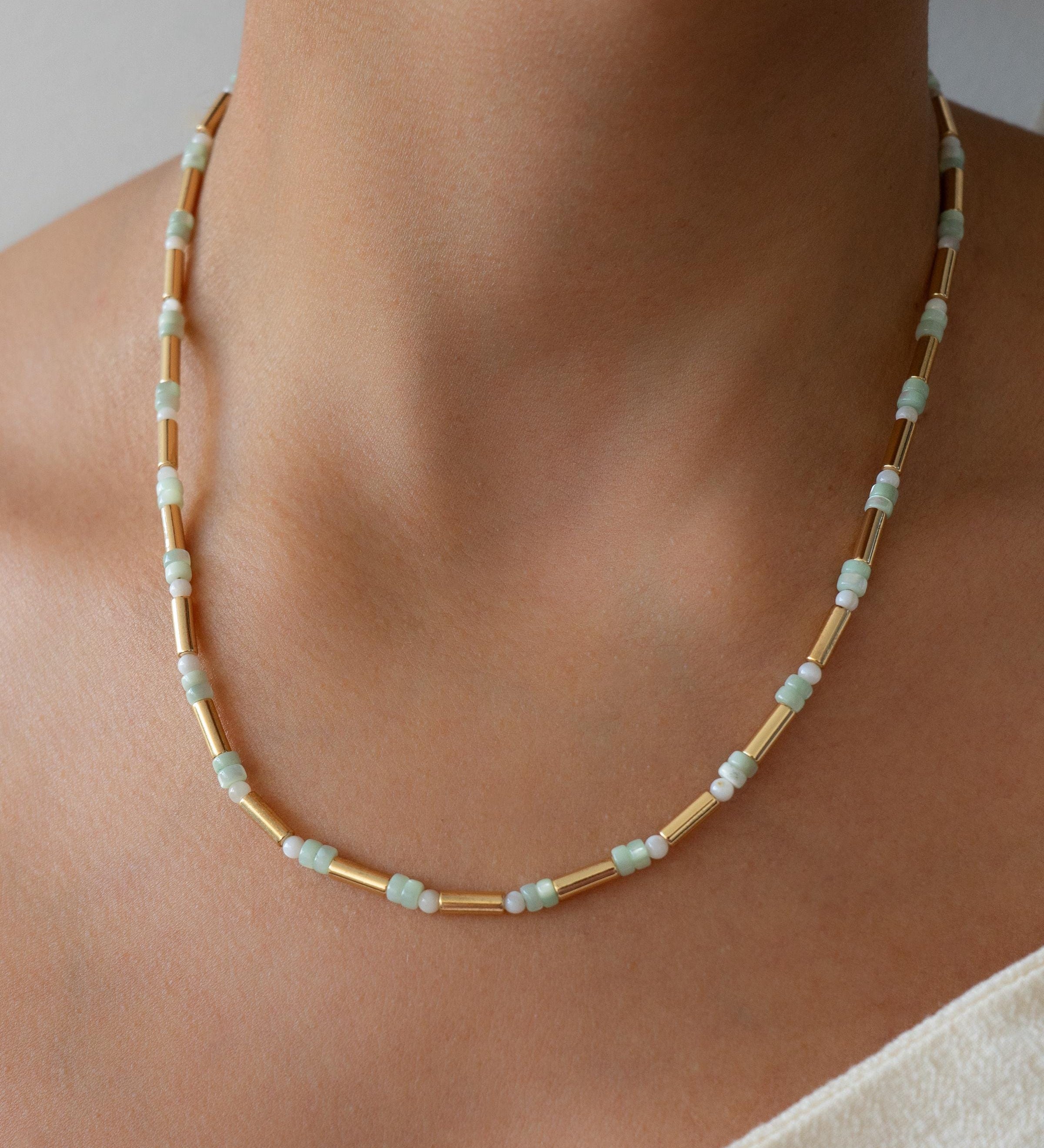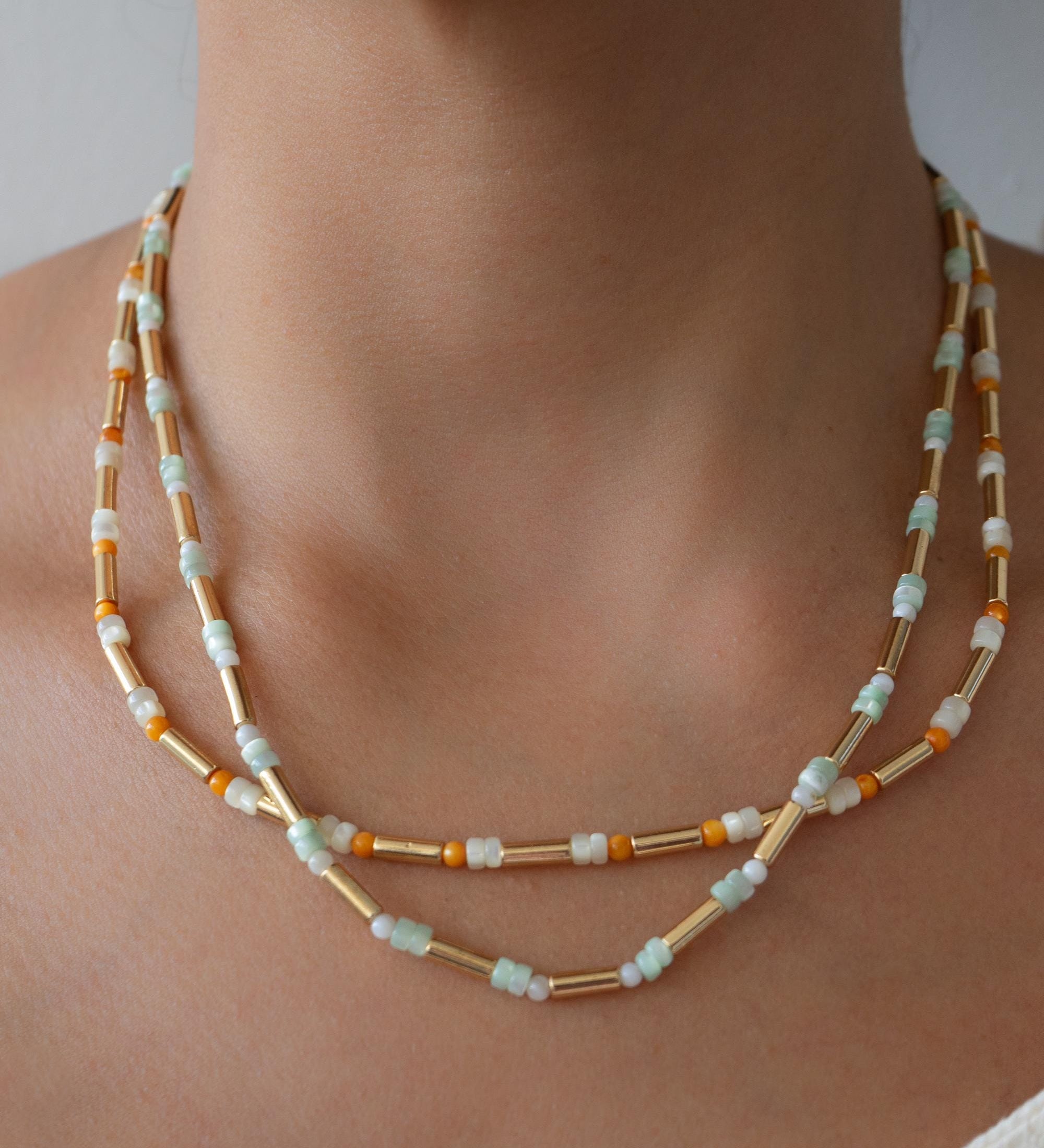 Χρυσό Κολιέ με Μενταγιόν Ηλιοβασίλεμα και Καλοκαιρινά Στοιχεία