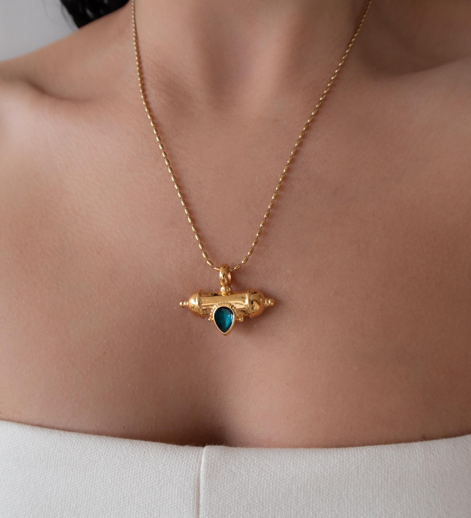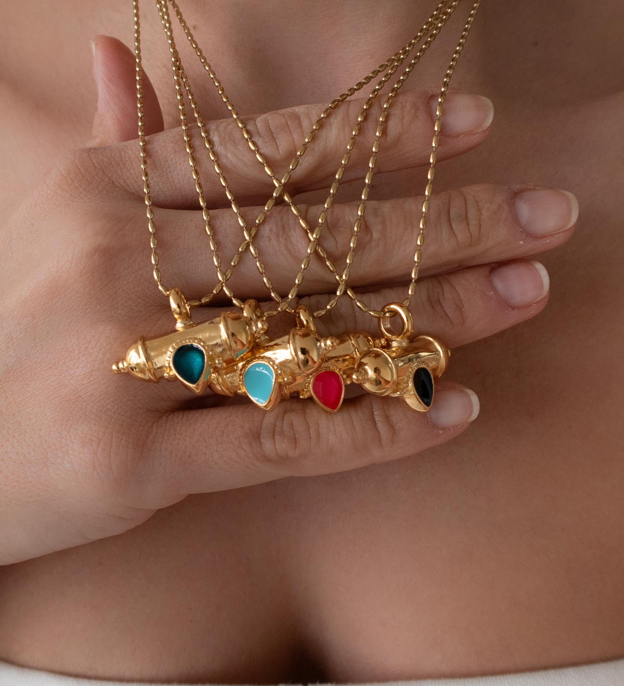 Χρυσό Κολιέ με Κρεμαστό Βαρελάκι και Σμάλτο