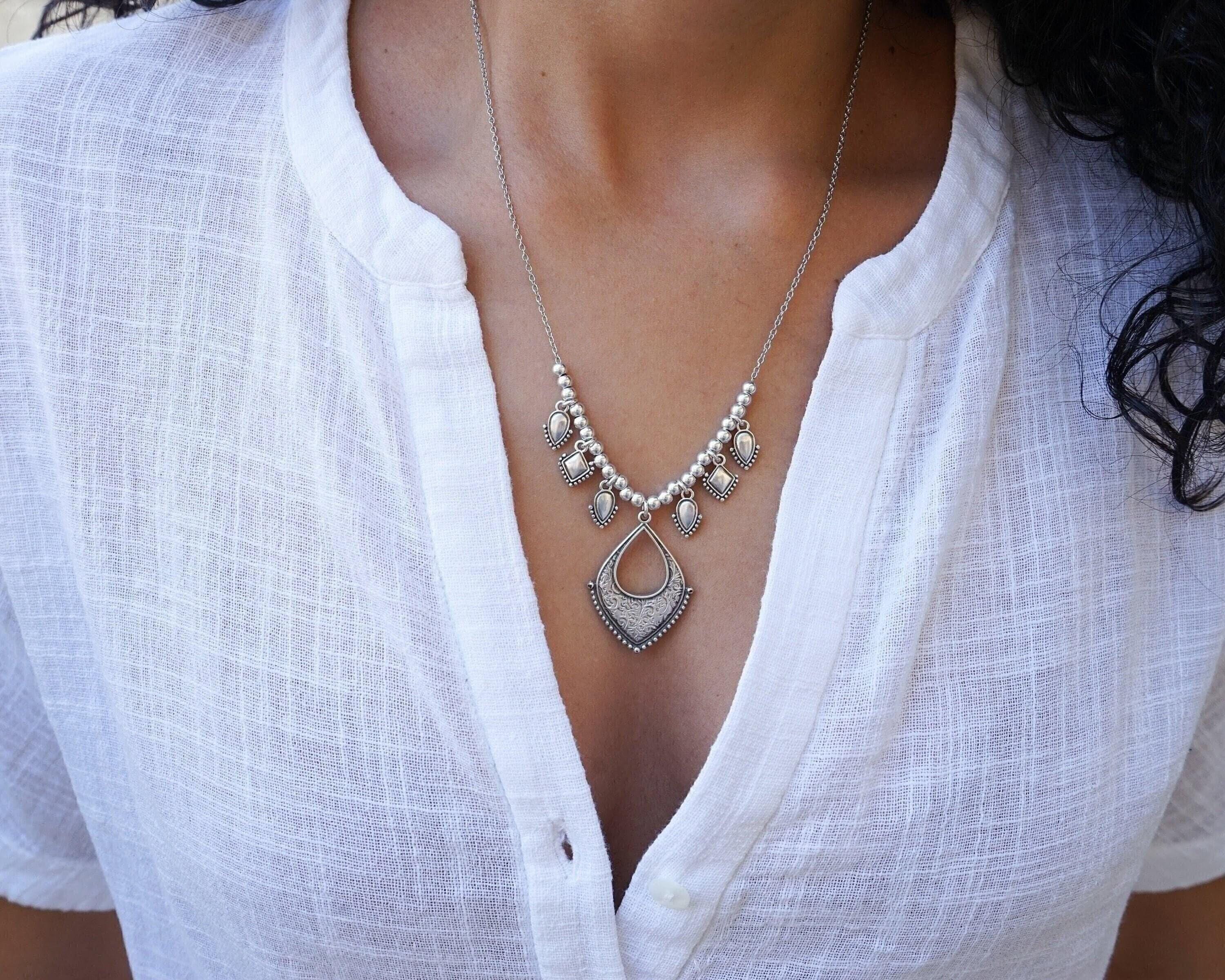 This necklace is simple yet a nice statement piece to use it alone or mix it with different jewelry. If you're looking for a delicate bohemian piece to enhance your gypsy look that's the perfect jewelry for you!