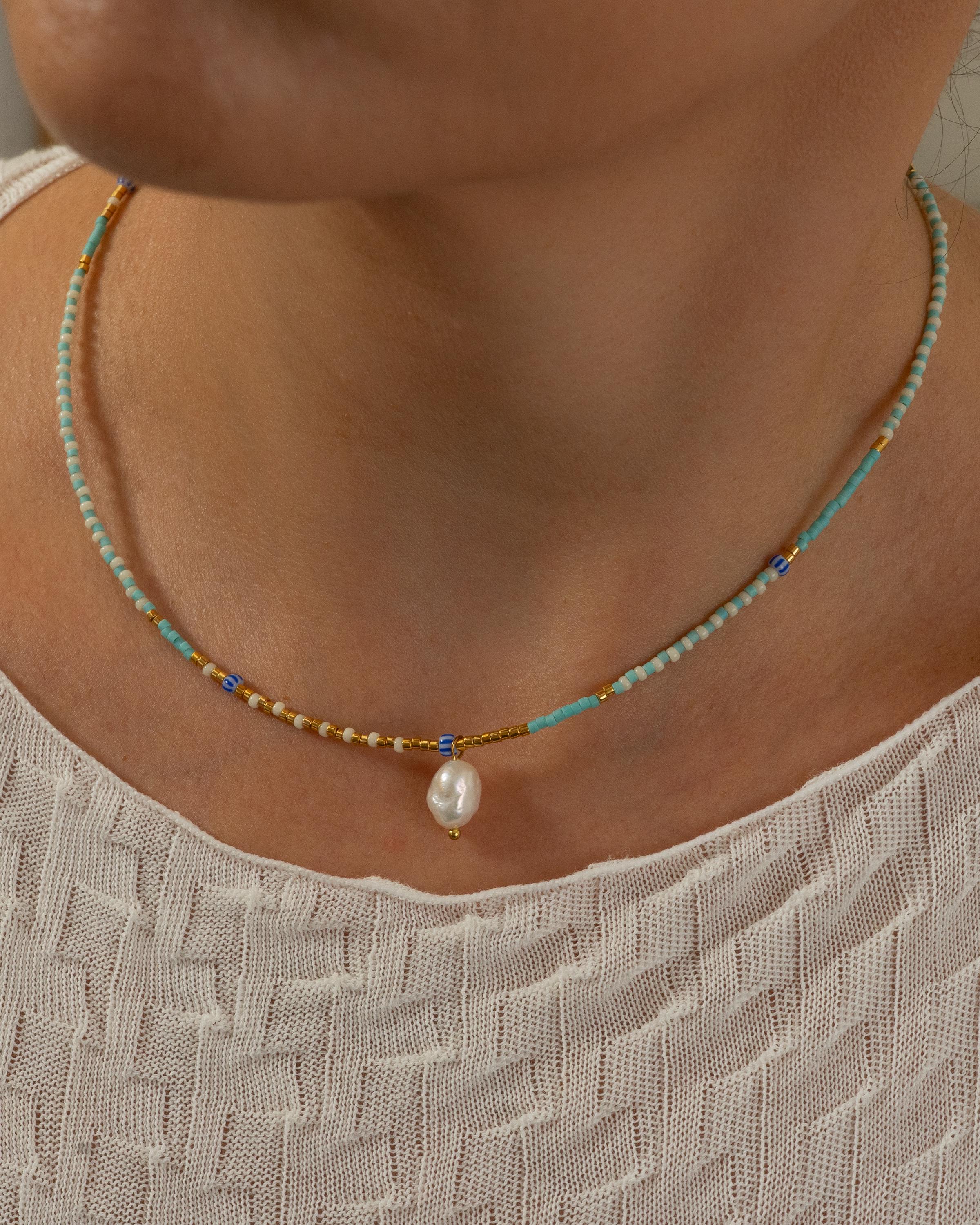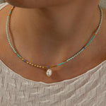 This colorful MIYUKI beaded necklace is your new everyday favorite. Featuring premium Japanese seed beads in a mix of vibrant hues, this handmade piece is finished with a single freshwater pearl charm and gold-colored stainless steel details. Designed for layering or wearing alone, the necklace adds a subtle pop of color to both casual and dressed-up looks.