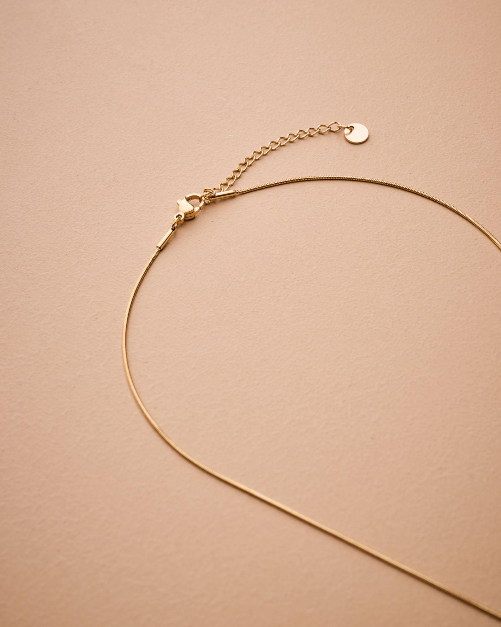 Crafted from durable stainless steel with a PVD gold finish, this necklace is designed to last — waterproof, hypoallergenic, and tarnish-resistant. Wear it alone for understated elegance, or layer it with other chains for a contemporary, stacked style.