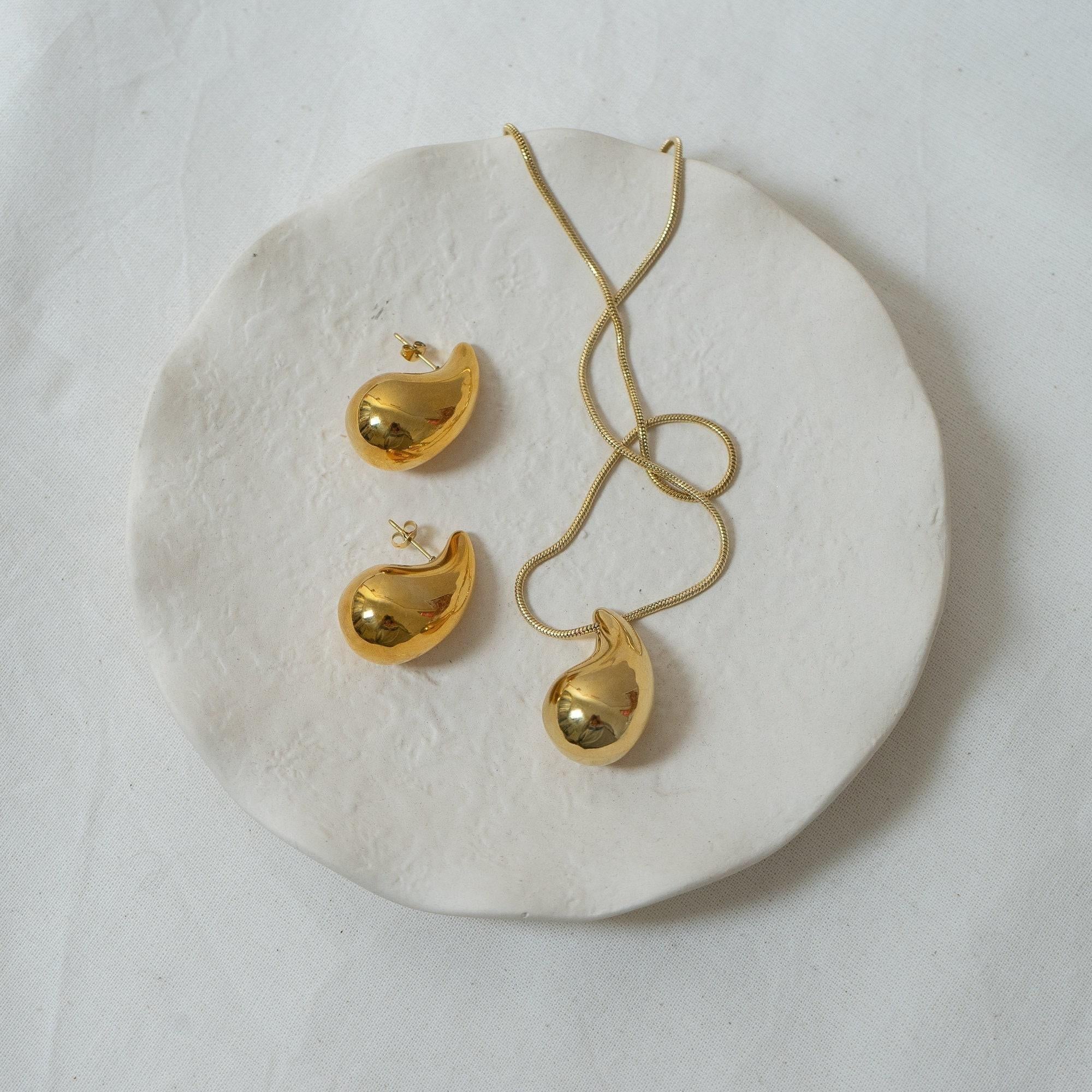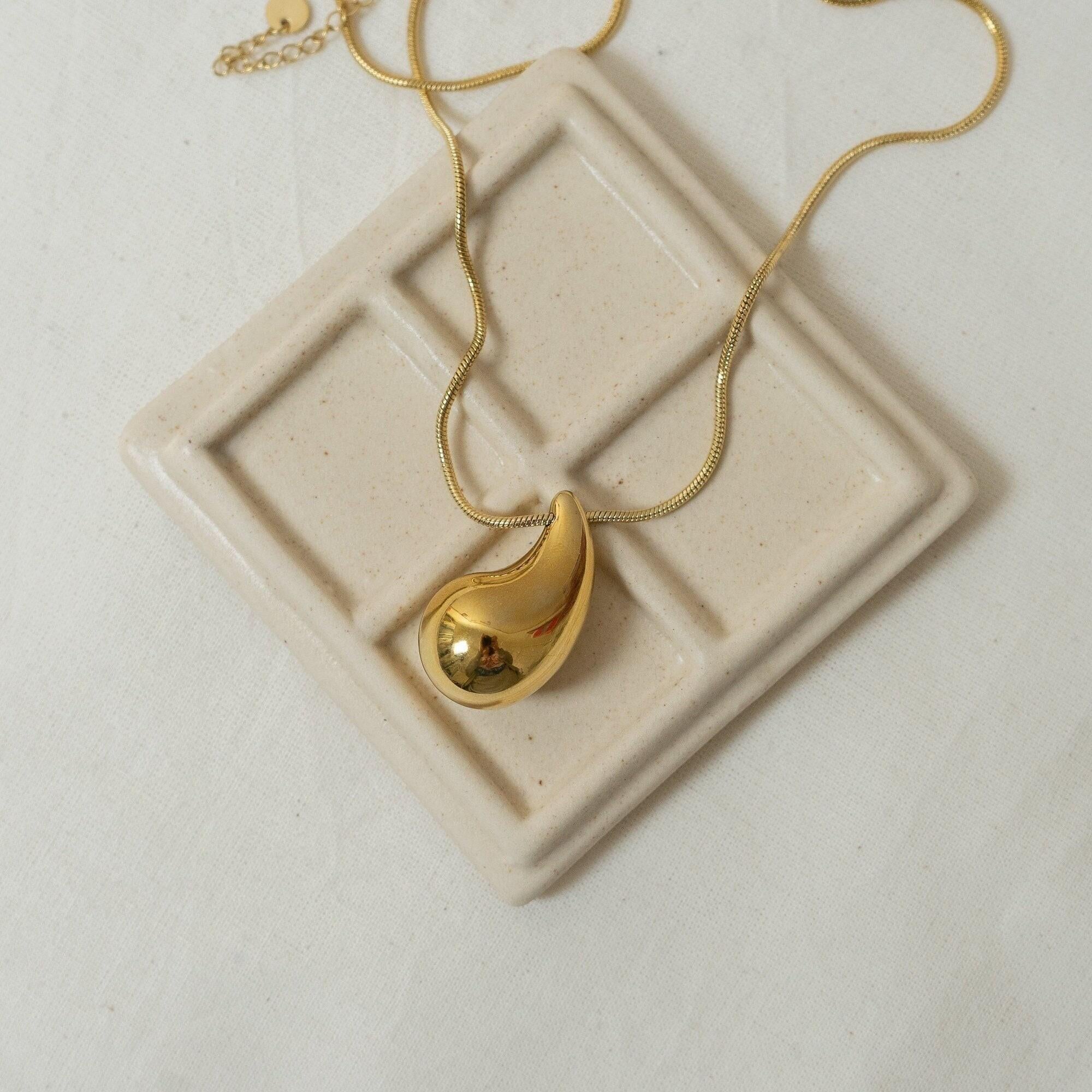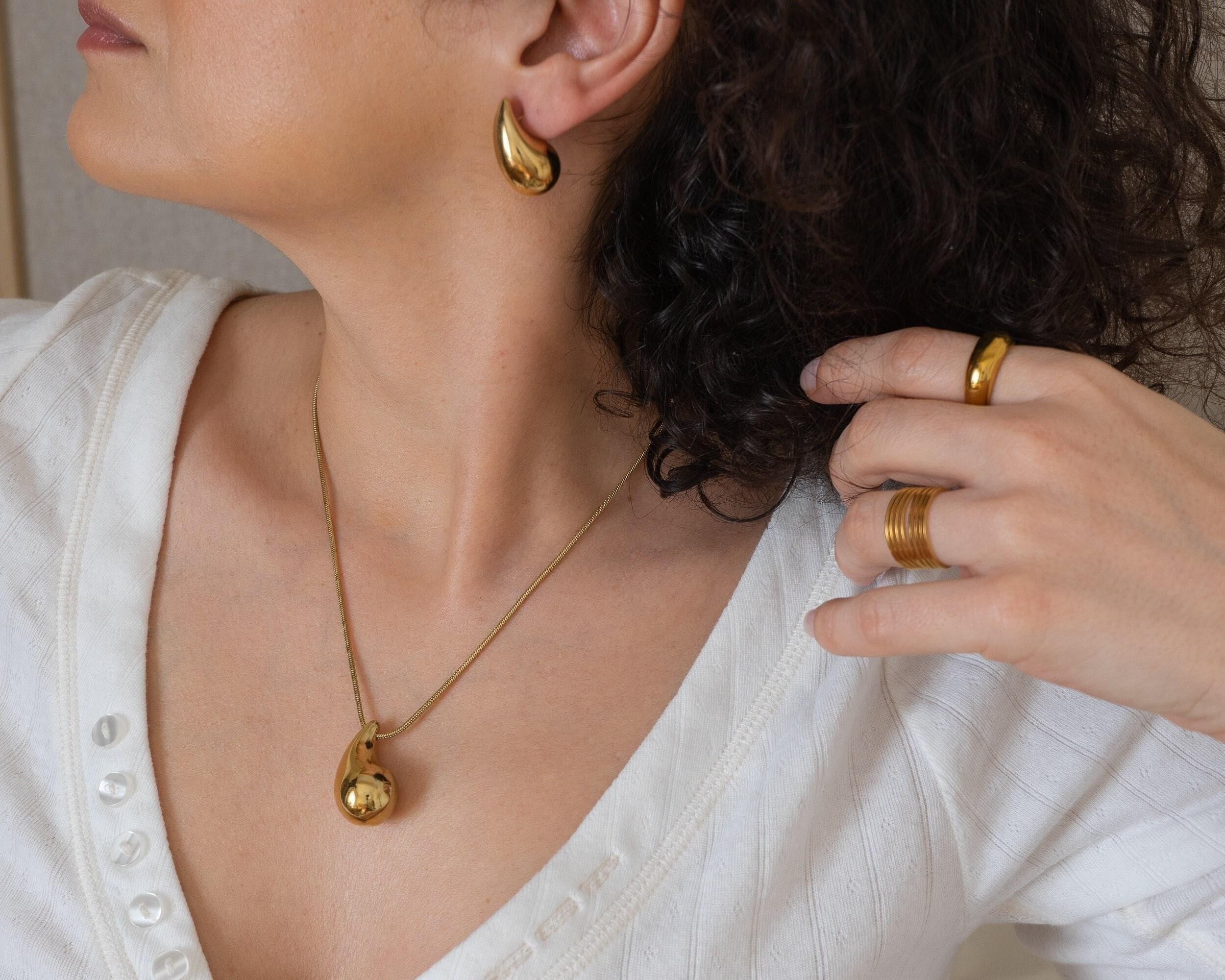 Elevate your accessory game with the Gold Bold Drop Necklace, the ideal companion to our Gold Bold Earrings. This statement piece is a must-have for the season, designed to complement your fresh and modern aesthetic effortlessly. The Gold Bold Drop Necklace features a stunning drop pendant that adds an elegant touch to your outfit, whether you're dressing up for a night out or adding flair to your everyday look.