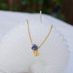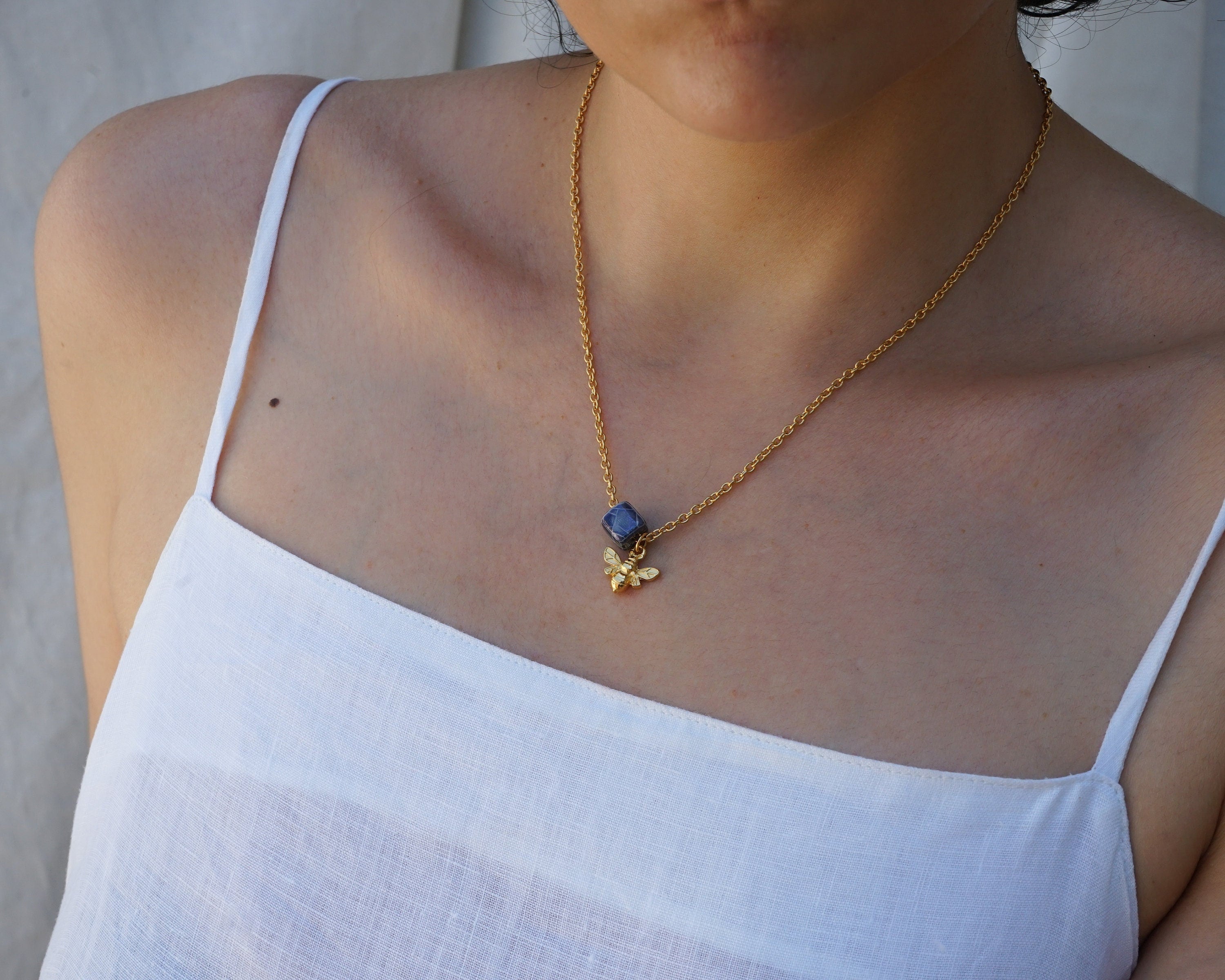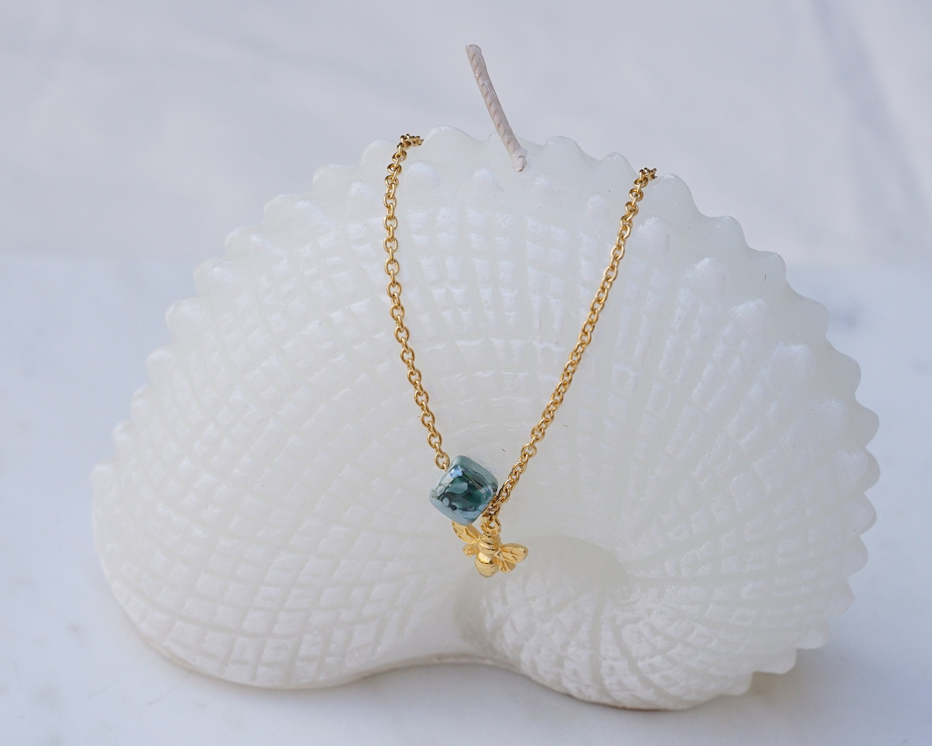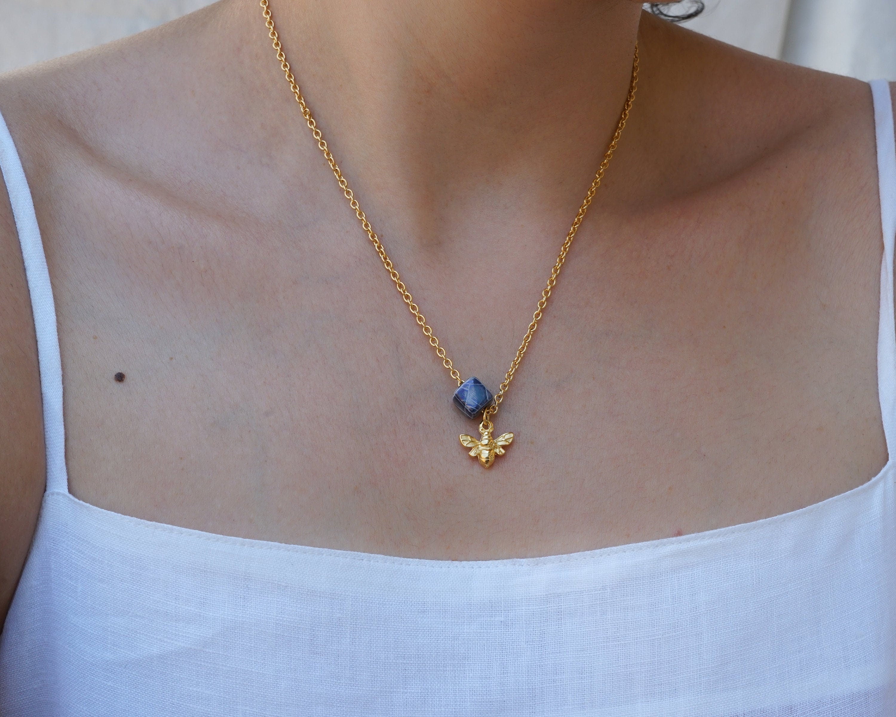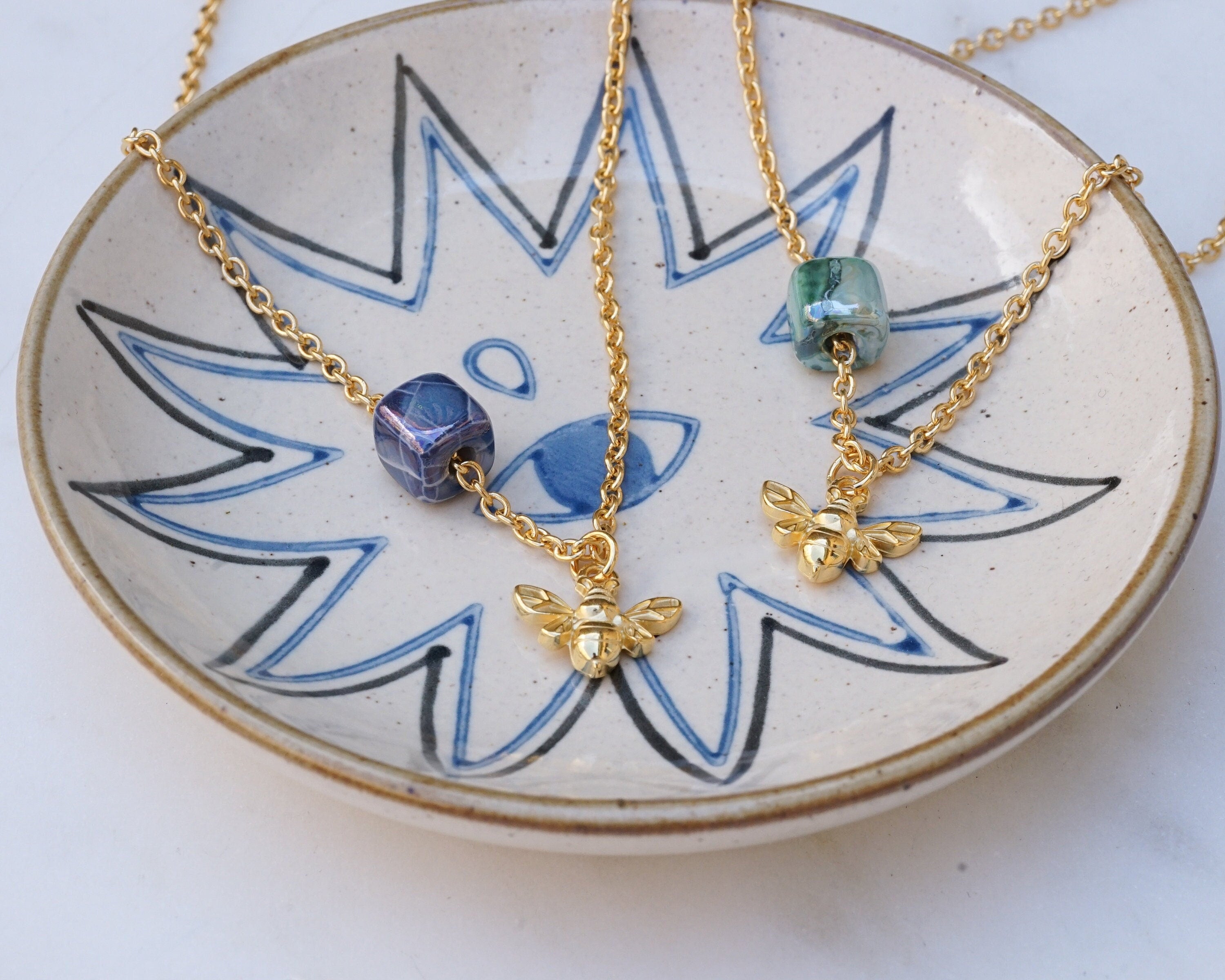 Gold Dainty Bee Necklace with Enamel Glazed Ceramic Cube