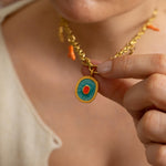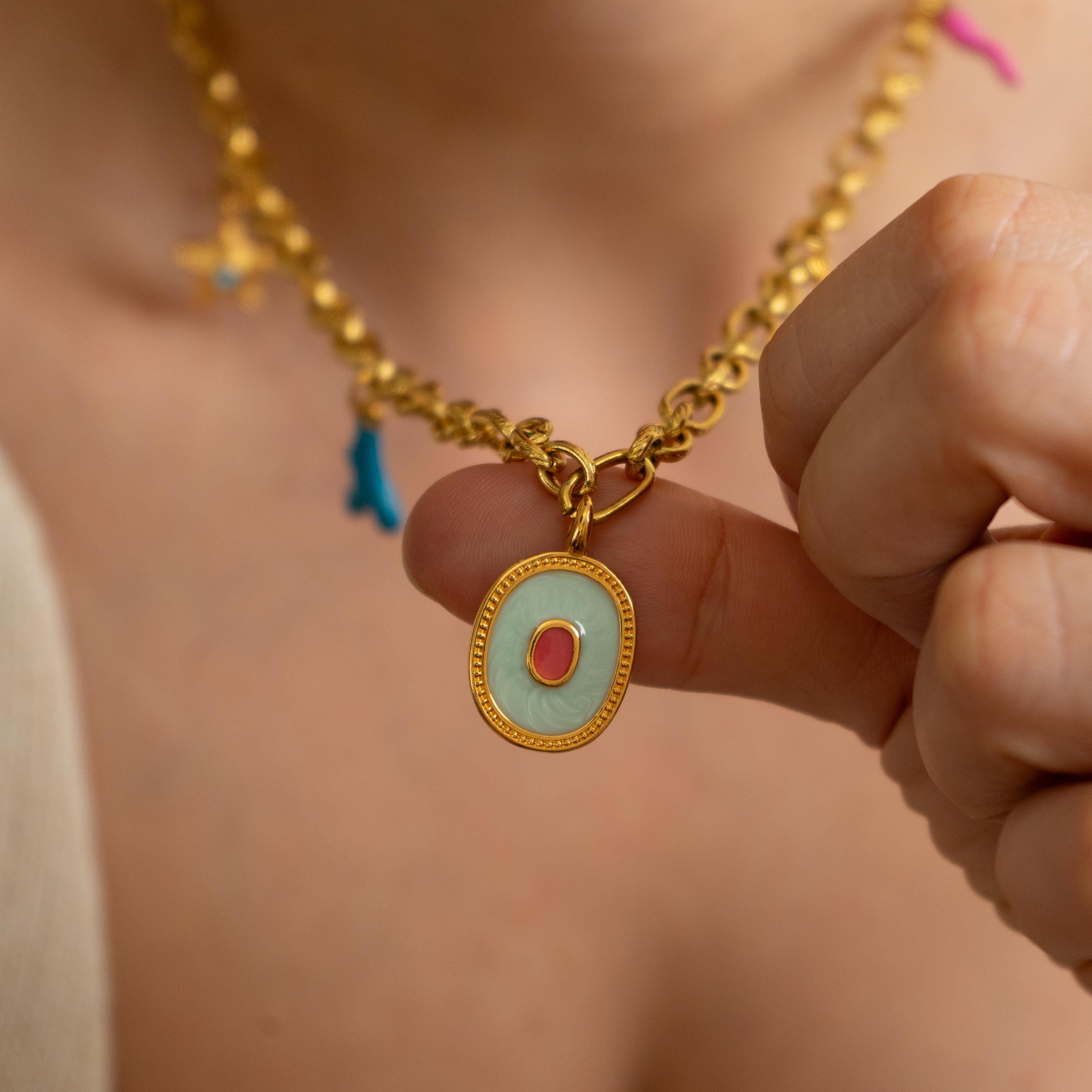 Soak up the sun with this charm-loaded evil eye necklace made for summer. Featuring bold enamel details and seaside motifs, this necklace is your go-to accessory for beach days, vacations, festivals, and every sun-drenched moment in between.