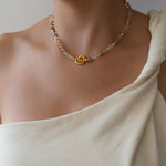 Finished with a stainless steel adjustable chain, this necklace is easy to style alone or layered with minimal chains. Its neutral palette and organic form make it a timeless addition to an everyday jewelry collection focused on balance, versatility, and quiet detail.