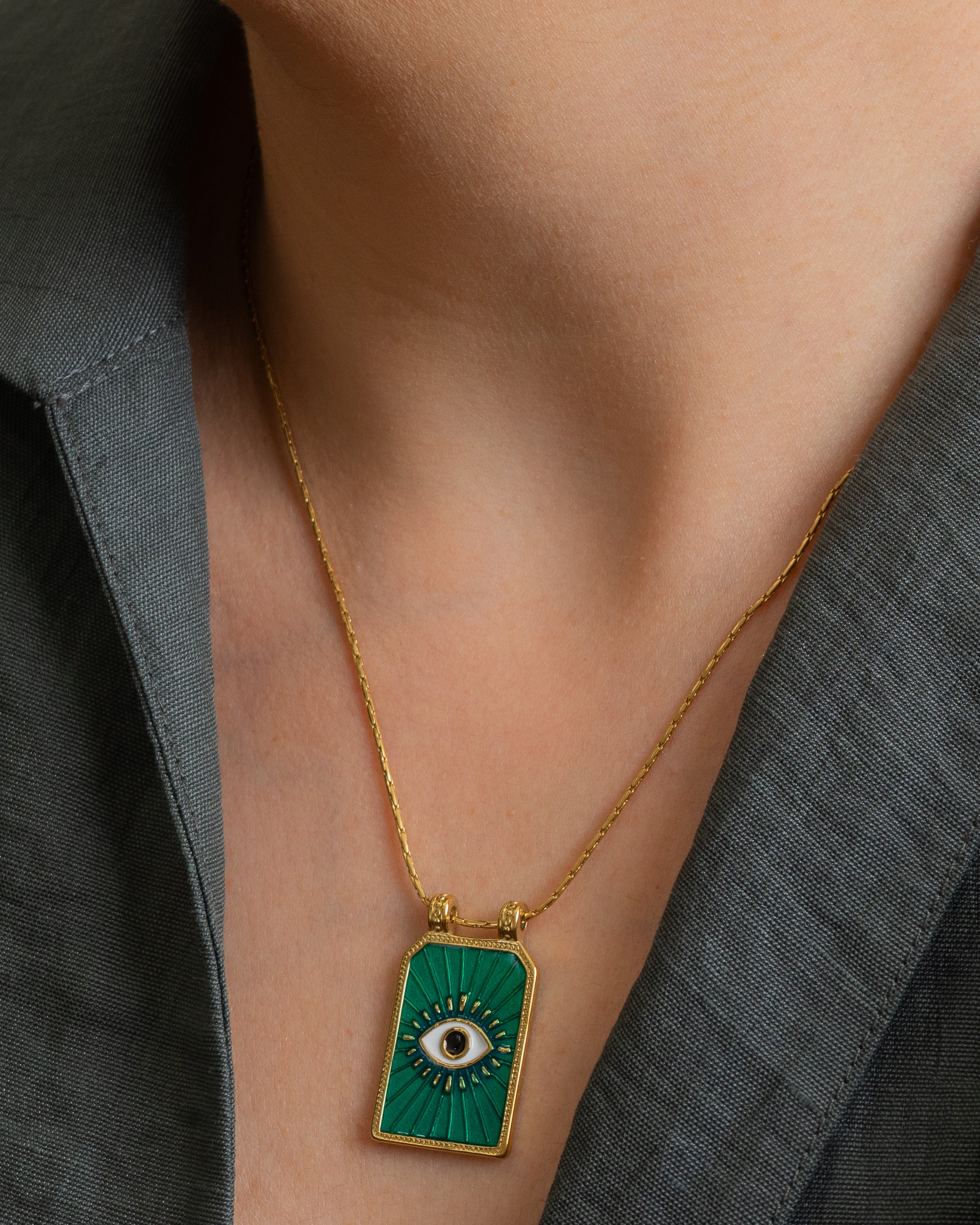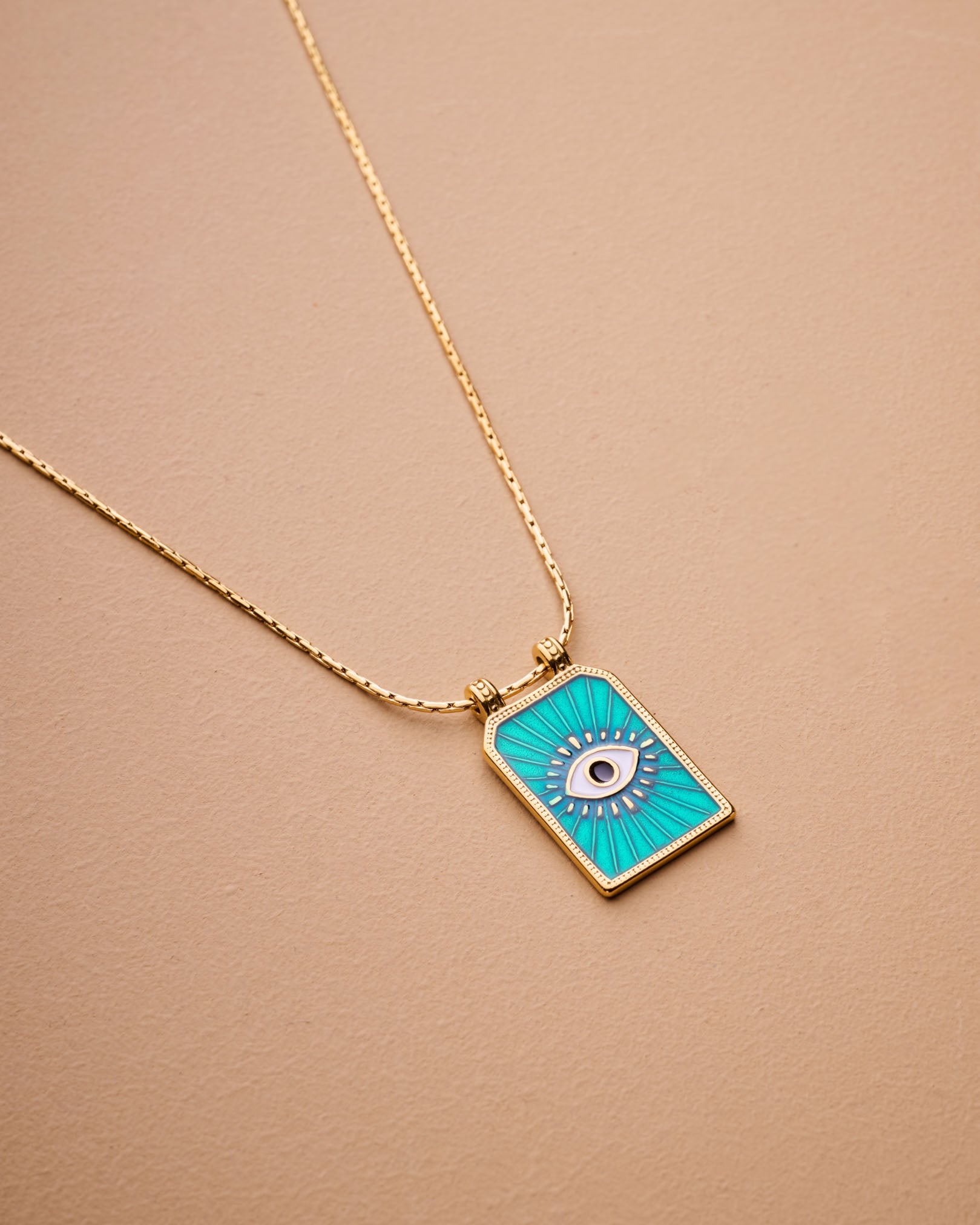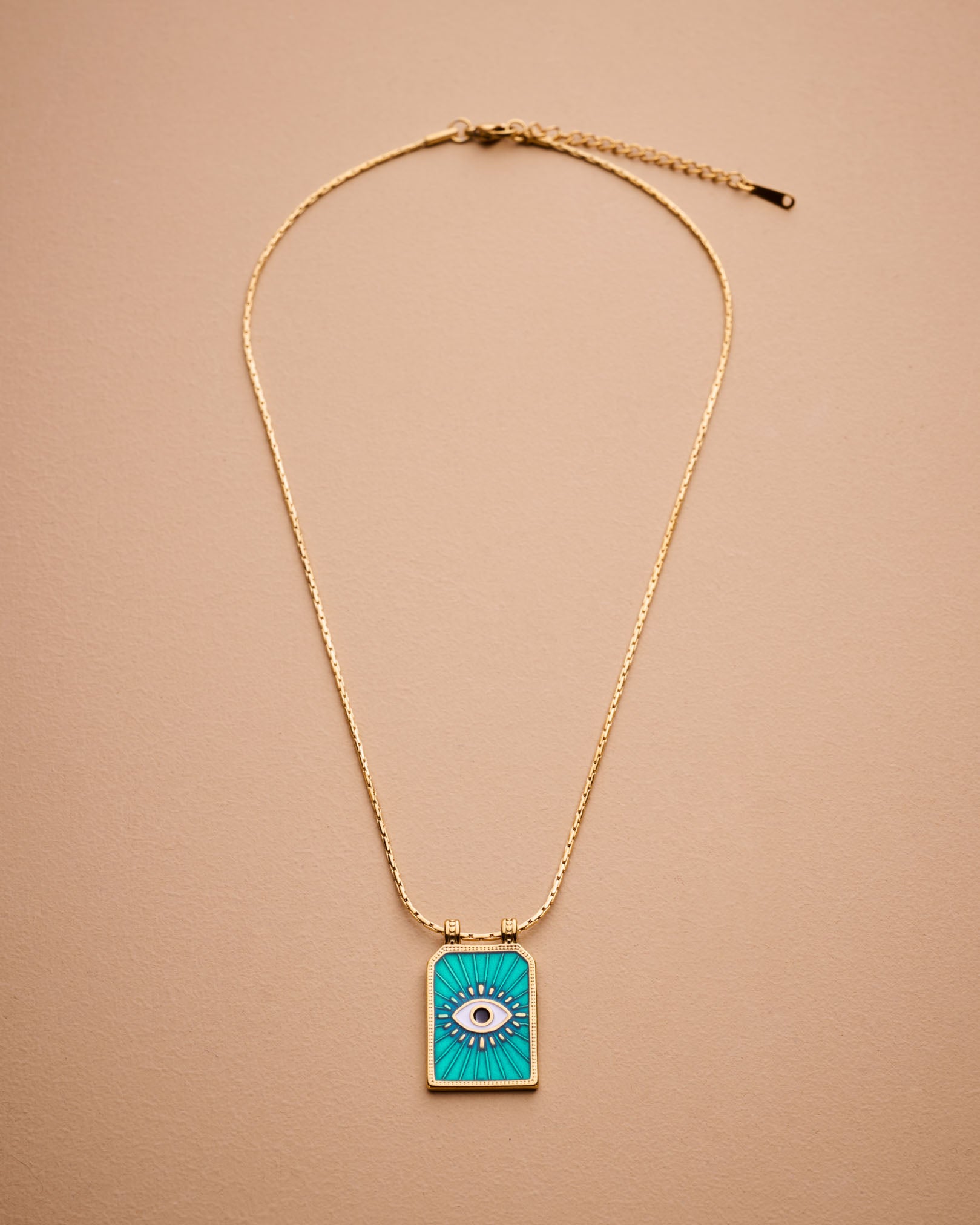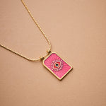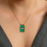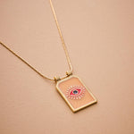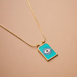 Gold rectangle EYE pendant necklace