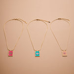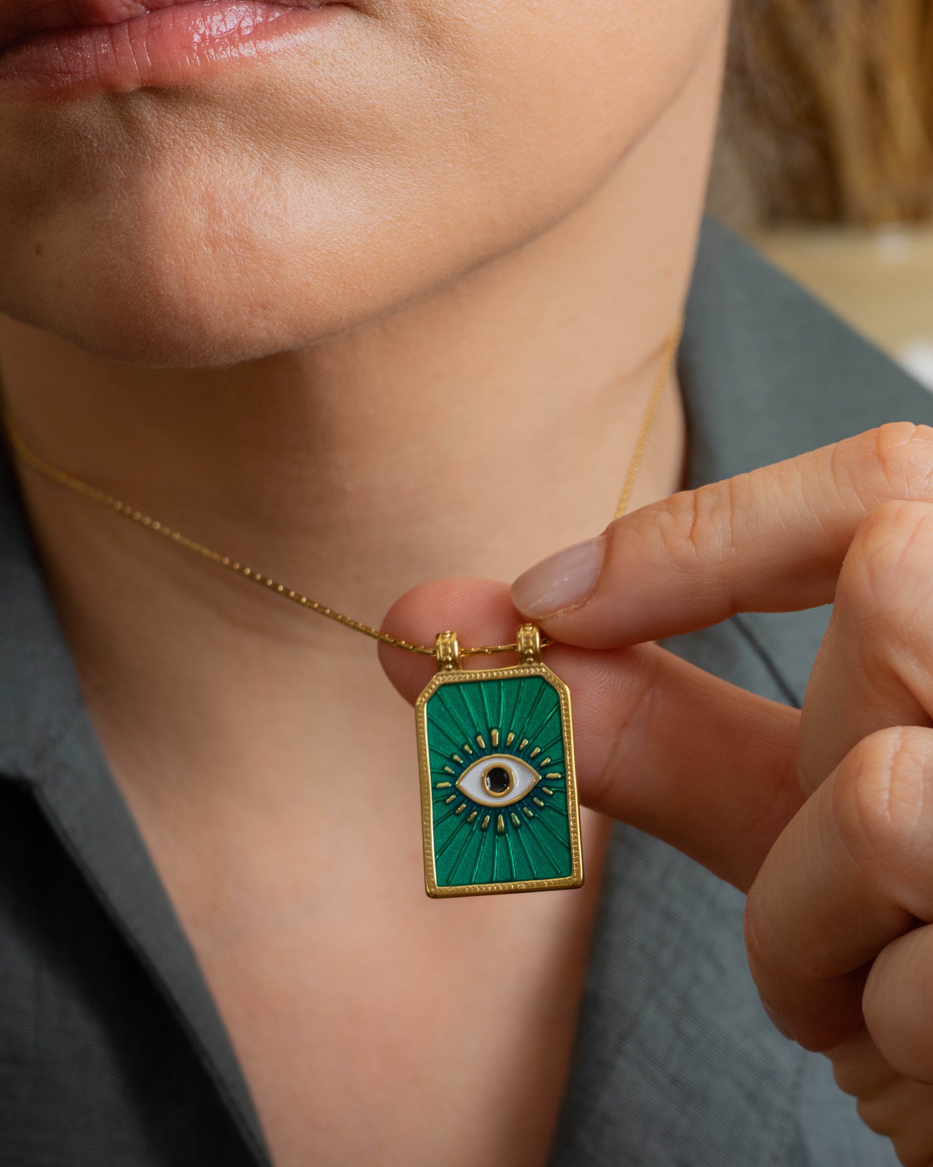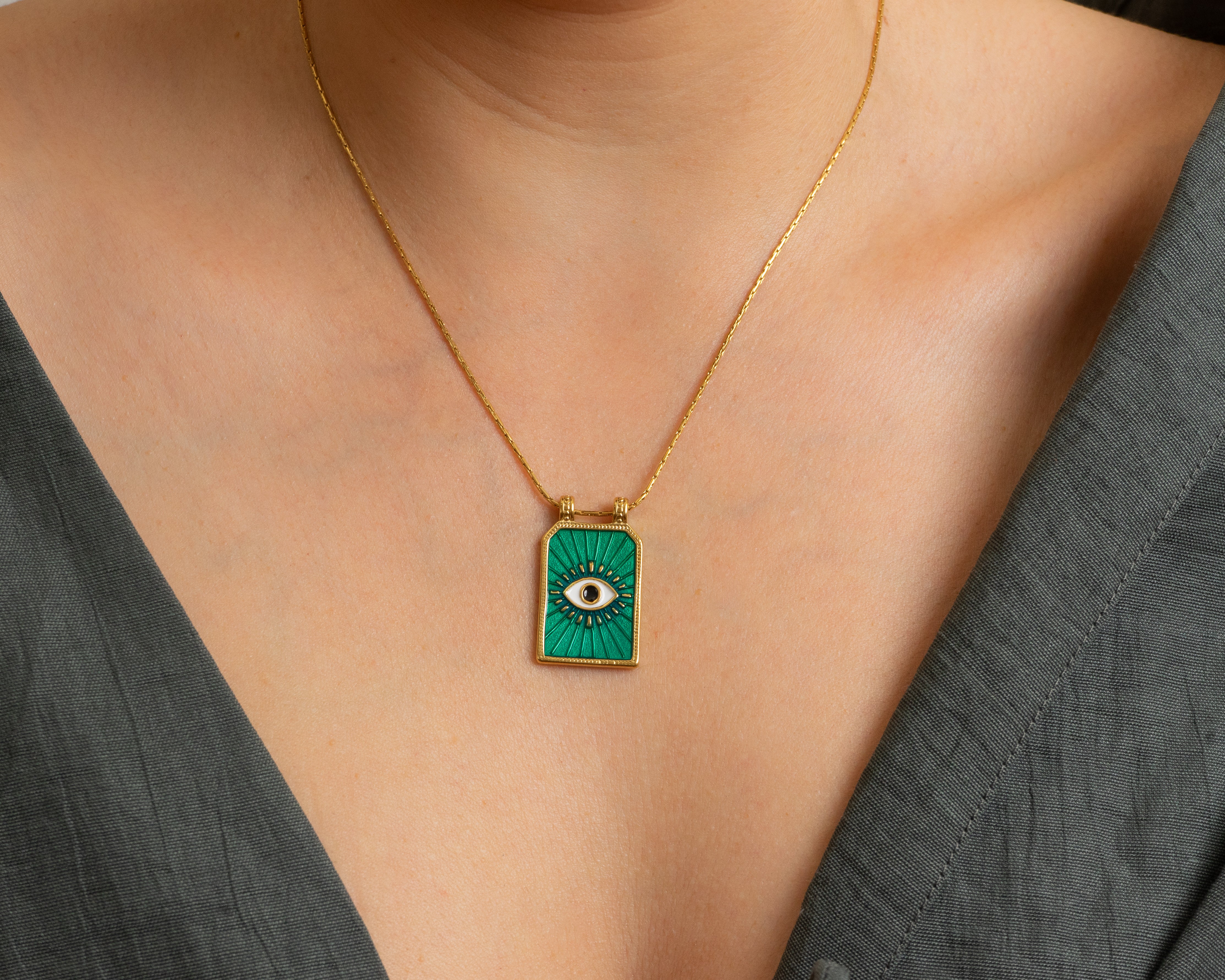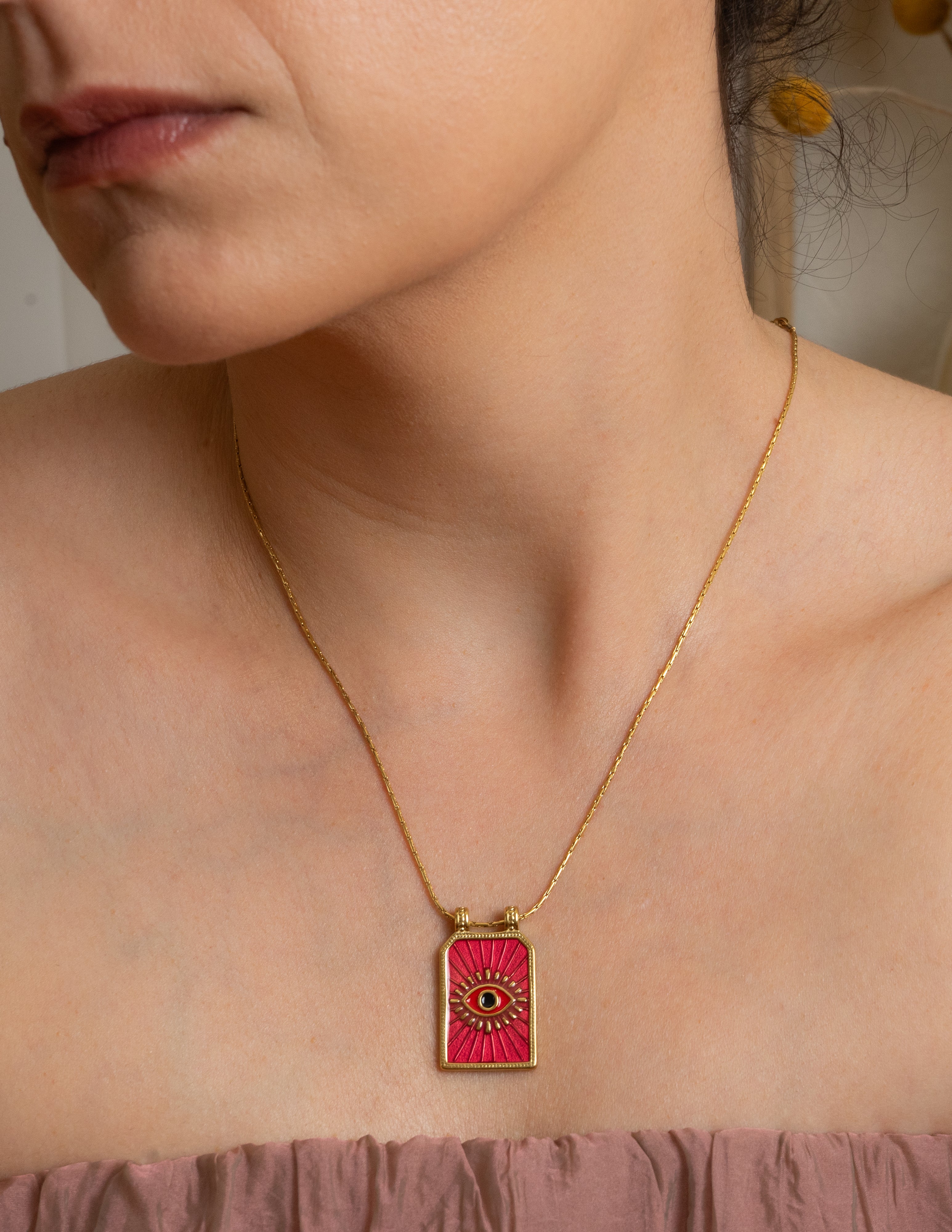 Gold rectangle EYE pendant necklace