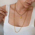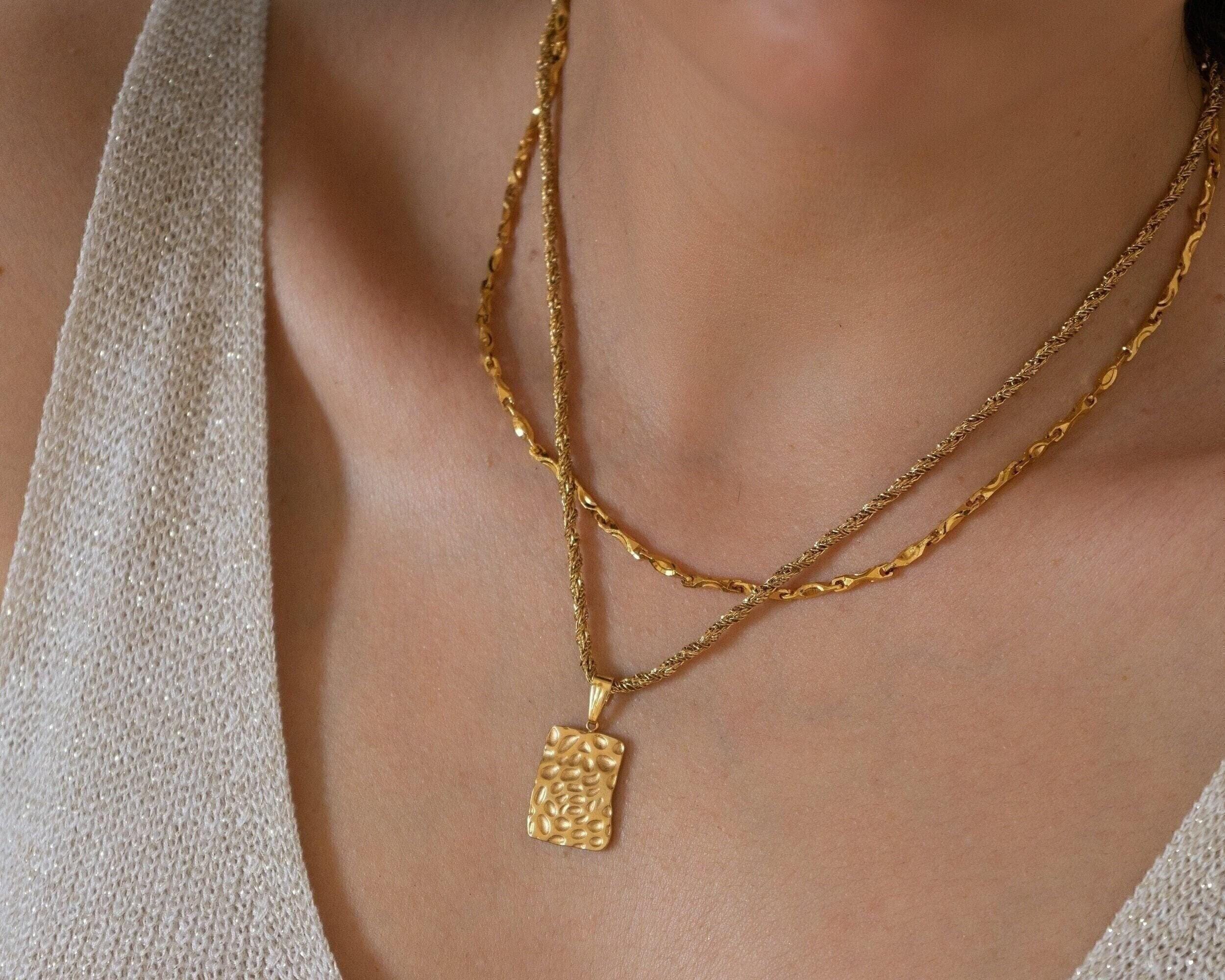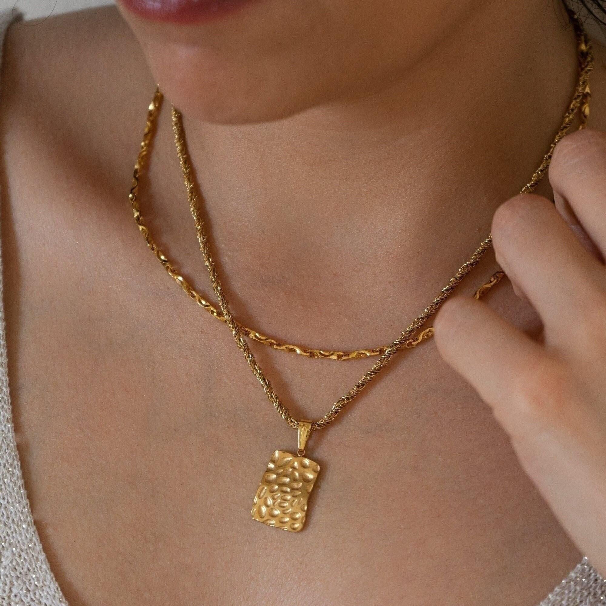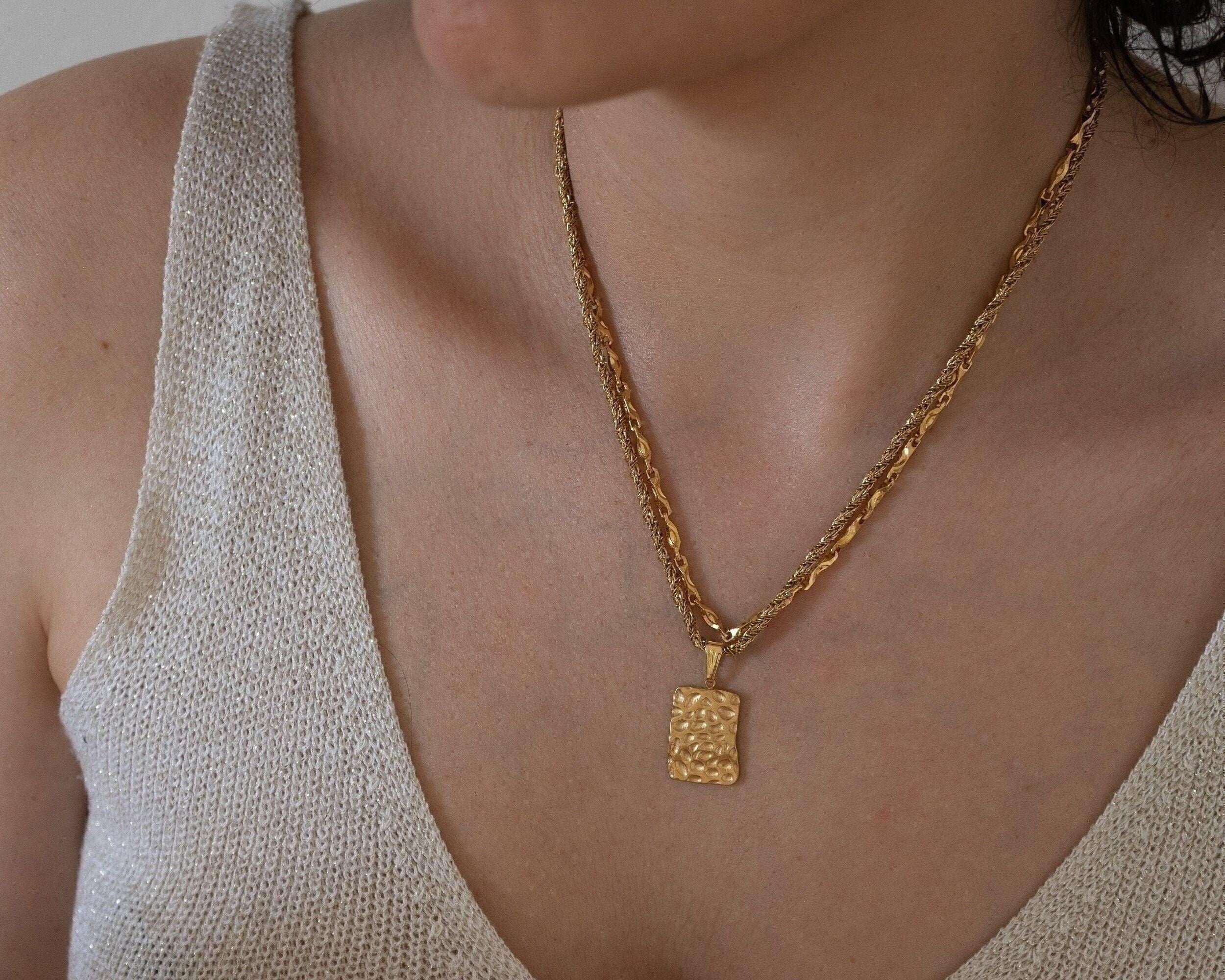 Gold Rectangle Hammered Pendant Necklace